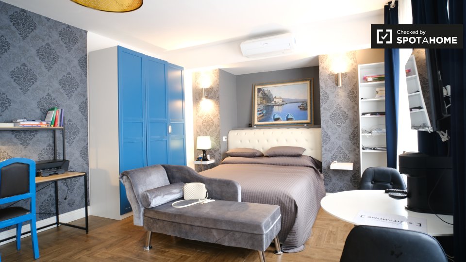 Scopri questo elegante monolocale completamente arredato disponibile in affitto a Val Melaina, Roma. L'immobile vanta eccellenti caratteristiche, tra cui un balcone e una cucina attrezzata con lavastoviglie e forno. Tutte le utenze (elettricità, acqua, gas e Wi-Fi) sono incluse nell'affitto. L'immobile accetta animali domestici, sebbene possano essere applicate restrizioni specifiche. È consentito fumare. L'appartamento è stato controllato personalmente da Spotahome per una maggiore affidabilità.
