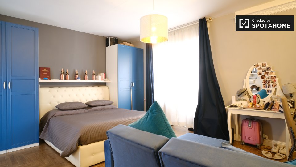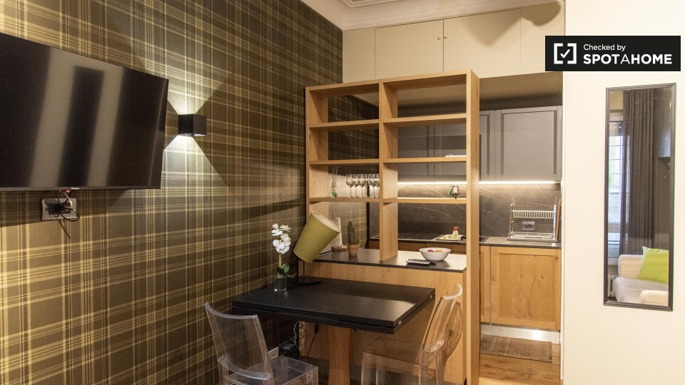 Questo monolocale ai Parioli, a Roma, offre uno spazio esterno completamente arredato per il vost...