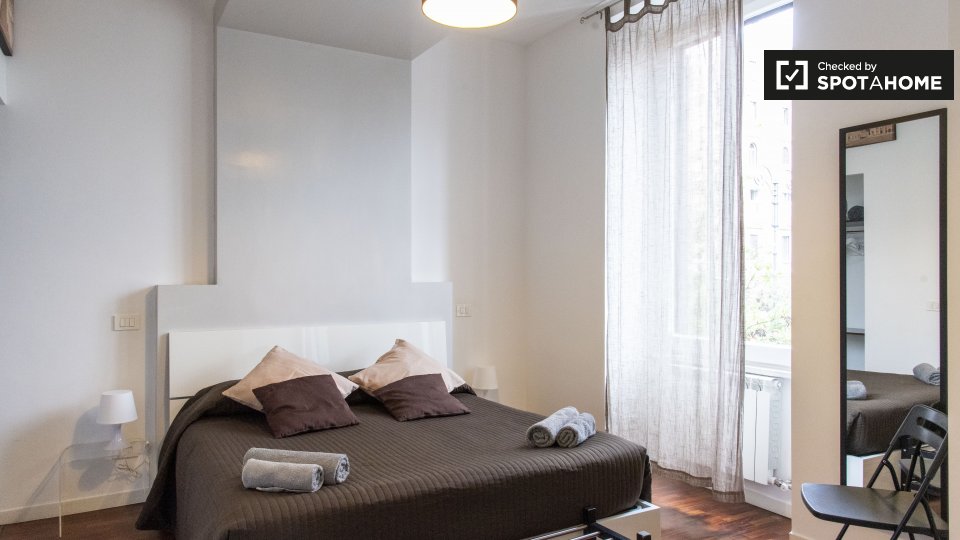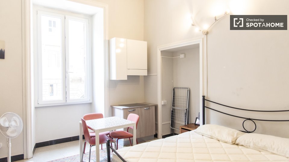 Situato nel quartiere Manzoni del Centro Storico di Roma, questo monolocale di 35 m² in affitto offre una casa tranquilla perfetta per 1 o 2 persone. L'appartamento interno ha soffitti alti, pavimenti in legno e un'unità AC. C'è un letto matrimoniale e divano, e un armadio a muro per la conservazione. Il bagno è pulito e moderno, e c'è un angolo cottura completamente attrezzato.