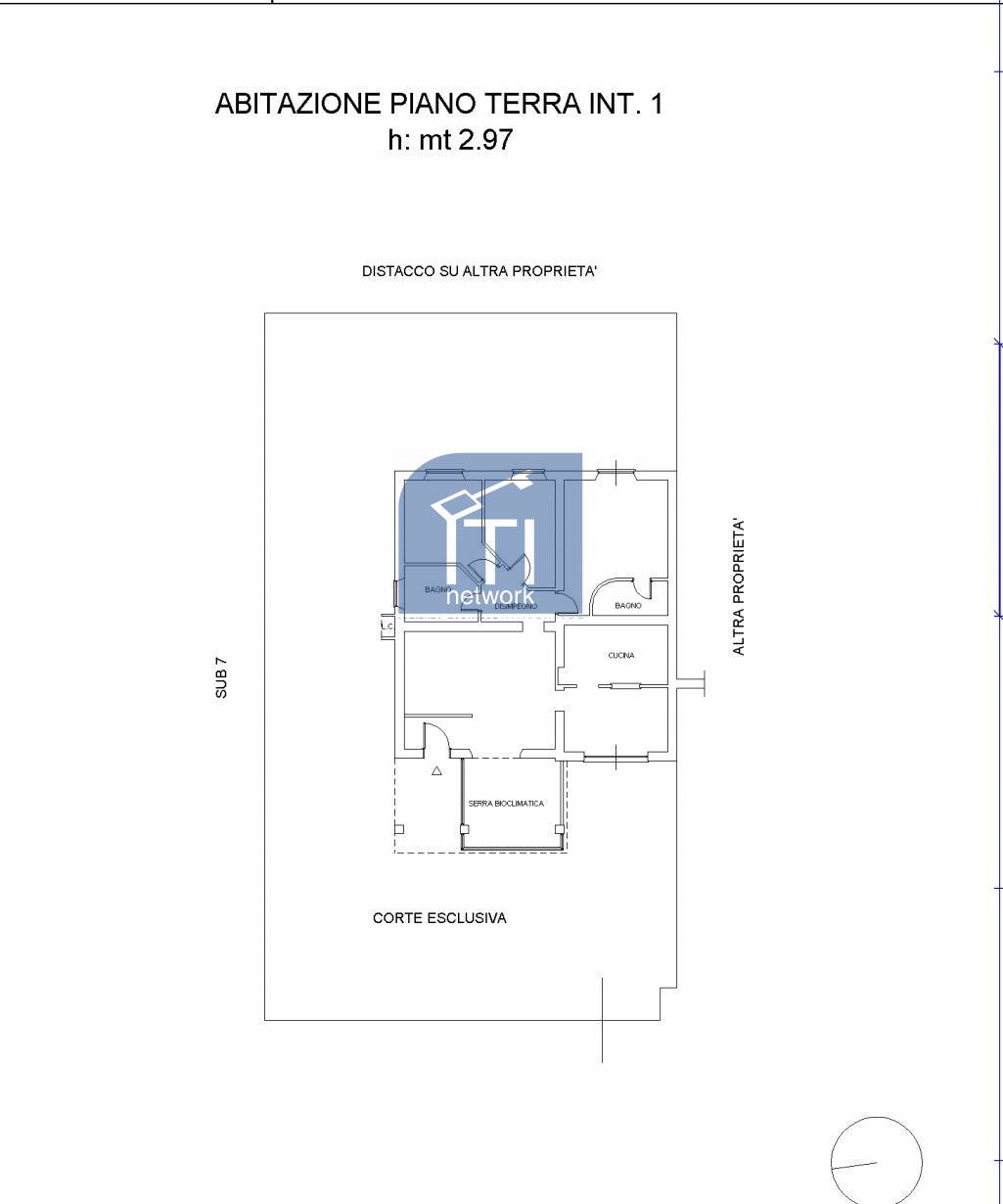 Anzio, in contesto residenziale, villa unico livello in trifamiliare composta da salone, cucina abitabile, camera matrimoniale con porta finestra che accede al giardino e bagno interno con doccia, due camere, un bagno con vasca idromassaggio e finestra e una serra bioclimatica.