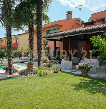 aria condizionata soffitta / mansarda cantina impianto elettrico presente e a norma impianto fotovoltaico ingresso indipendente camino arredata garage giardino cucina presente cucina abitabile stato di manutenzione ottimo adsl piscina antifurto taverna