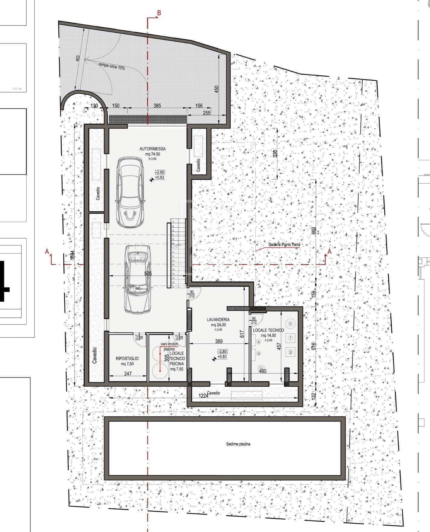 - piano interrato: zona lavanderia, locale tecnico, ripostiglio ed un generoso garage di circa 75 mq.