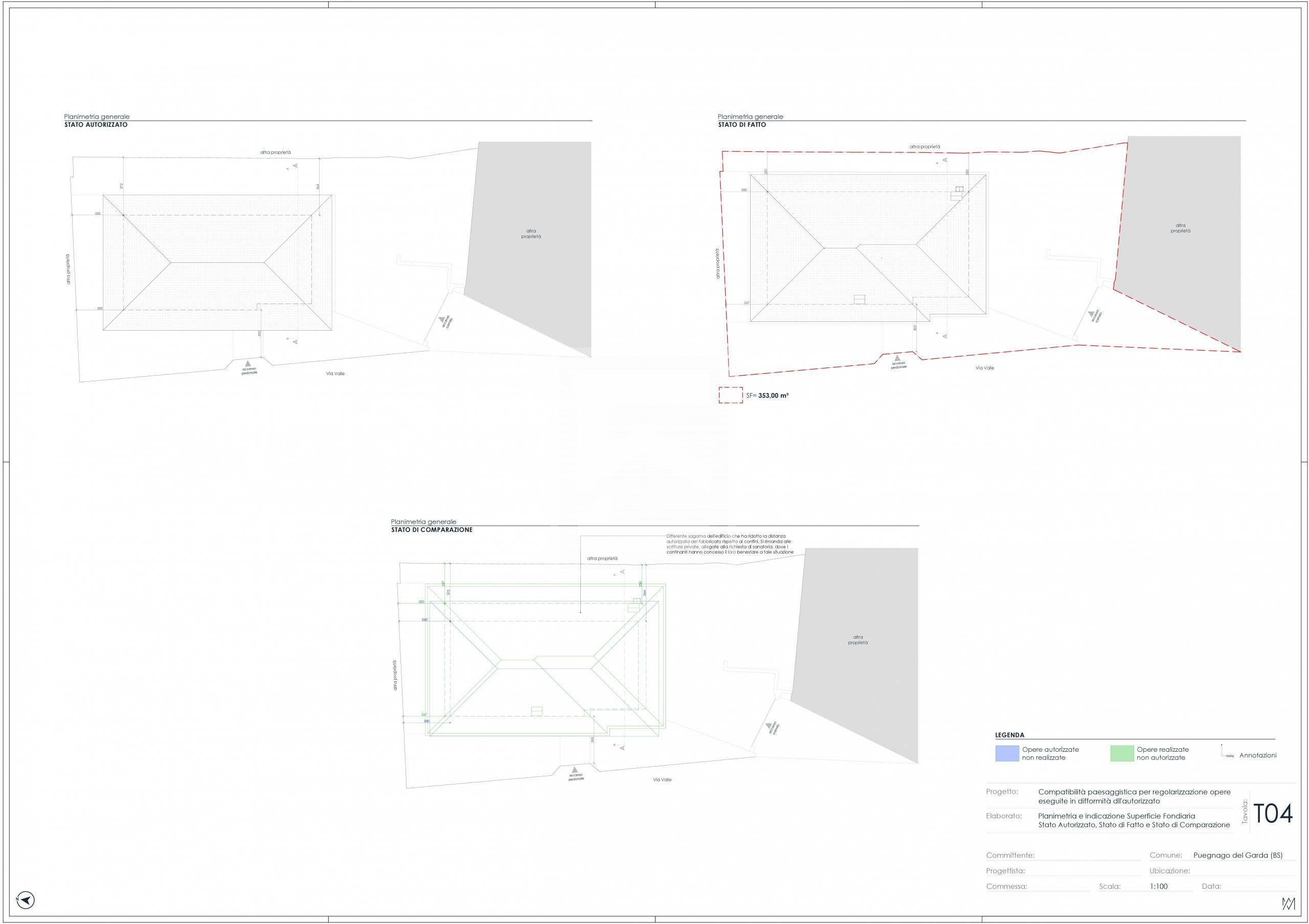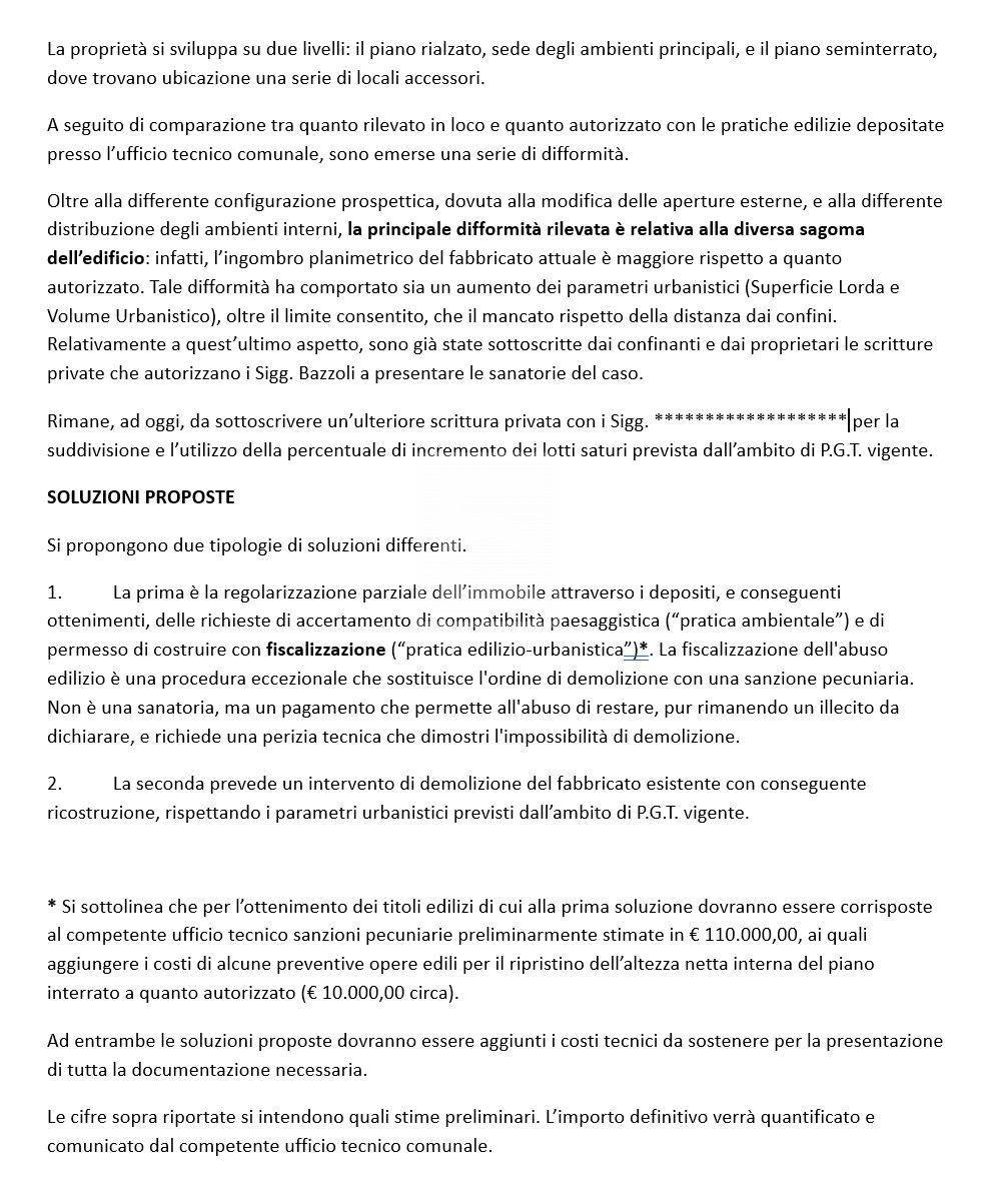 sanatoria dell'abuso circa distanze (accordi già sottoscritti tra vicini) e volume (accordo verbale trovato, si tratta di formalizzarlo) con pratica comunale con oneri preventivamente calcolati in 110.000€ + spese tecniche