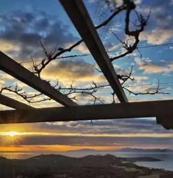Il primo piano ospita un doppio salone con ampio camino e un piccolo angolo cottura/zona bar (ideale per preparare piccole pietanze, aperitivi, tisane o tè), due camere matrimoniali, ciascuna con studio e bagno privato, e un locale ripostiglio. Questo piano si apre su un’ampia terrazza angolare che offre una vista panoramica dalla collina fino al mare.