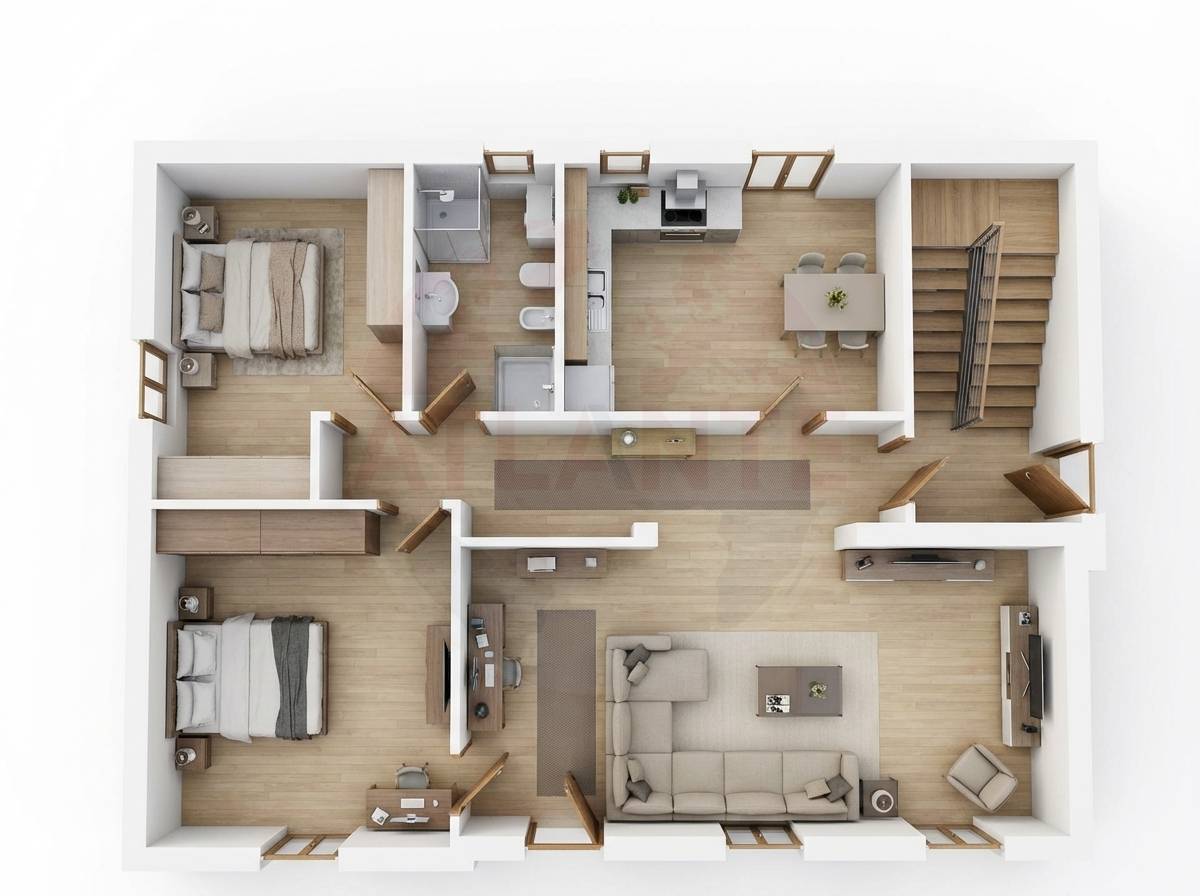 N.B. Le immagini delle stanze arredate, sono a puro scopo illustrativo e sono destinate a proporre ipotesi d'arredo e utilizzo degli spazi.