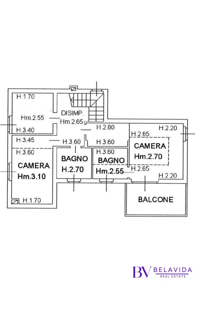 Al primo piano vi è la zona composta da tre camere da letto, di cui una con bagno en suite e accesso al terrazzo privato, bagno.