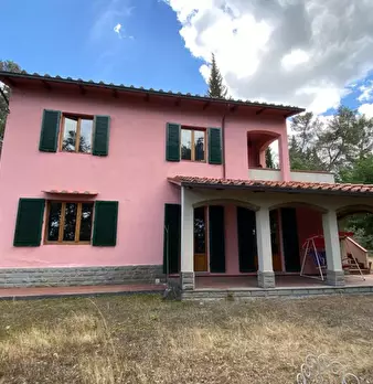 MONTE SAN SAVINO (AR), alla quota di 290 m s.l.m. ed alla prima periferia del paese (l'indirizzo indicato in pubblicità è solo indicativo), vendesi villa in posizione panoramica, soleggiata e con grande giardino di pertinenza (circa 5.334 mq), parte a prato con varie alberature, anche da frutto e parte costituito da un boschetto, all'interno è presente un pozzo artesiano. L'immobile sue due livelli fuori terra ed uno seminterrato, dispone di un appartamento per piano con scala privata per l'accesso al piano primo e di locali per rimessa, cantina, lavanderia etc al piano seminterrato. La superficie complessiva commerciale dell'immobile è di circa mq 387 mq, (in considerazione oltre all'incidenza del giardino, di un appartamento al piano terra di mq 123 circa, di un appartamento al piano primo di mq 135 circa oltre balconi e di un locale al piano seminterrato - altezza 2,20 metri - di circa mq 150, di cui circa 90/100 mq si possono anche utilizzare come autorimessa).