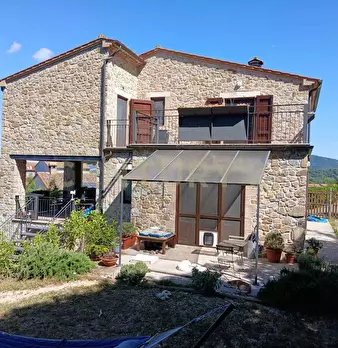 Nella zona residenziale di Sarteano si trova questa splendida villa in pietra con un panorama mer...