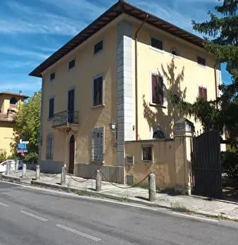 Proprietà costituta da due edifici d’epoca (inizio del secolo scorso) tra loro collegati da un piccolo loggiato: una villa che si sviluppa su tre piani (circa 450 mq. complessivi), un fabbricato ad un piano (150 mq. circa) destinato a locali di sgombero, piccola taverna e garage. I due edifici si affacciano su un parco ombreggiato da piante di alto fusto, completamente recintato, della superficie di 1.400 mq. circa.
