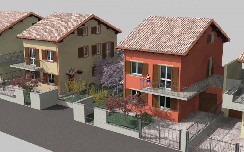 PIANO PRIMO: porticato d'ingresso, soggiorno, cucina abitabile, disimpegno zona giorno/notte, bagno padronale, bagno di servizio, camera letto matrimoniale, DUE camere letto singole, ripostiglio, balconata.