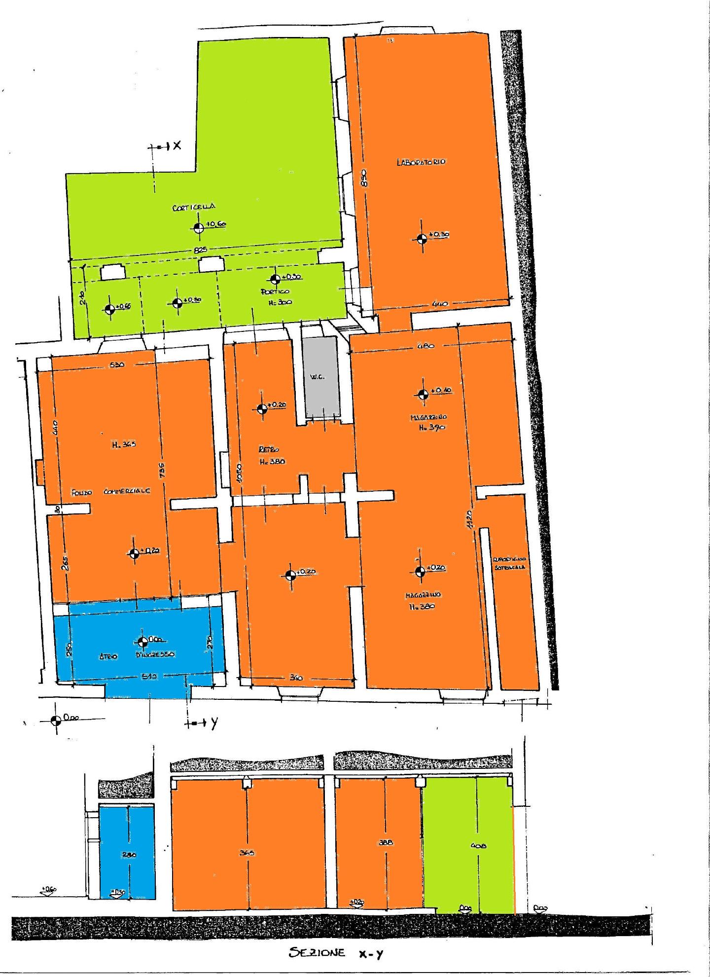 Lucca - Centro storico zona Piazza della Magione: Fondo commerciale di circa 180 mq e composto da atrio d'ingresso con vetrina e 7 vani, oltre ad un giardino/resede esterno di 38 mq ed un portico di 18 mq. Il fondo si sviluppa sui due lati dell...
