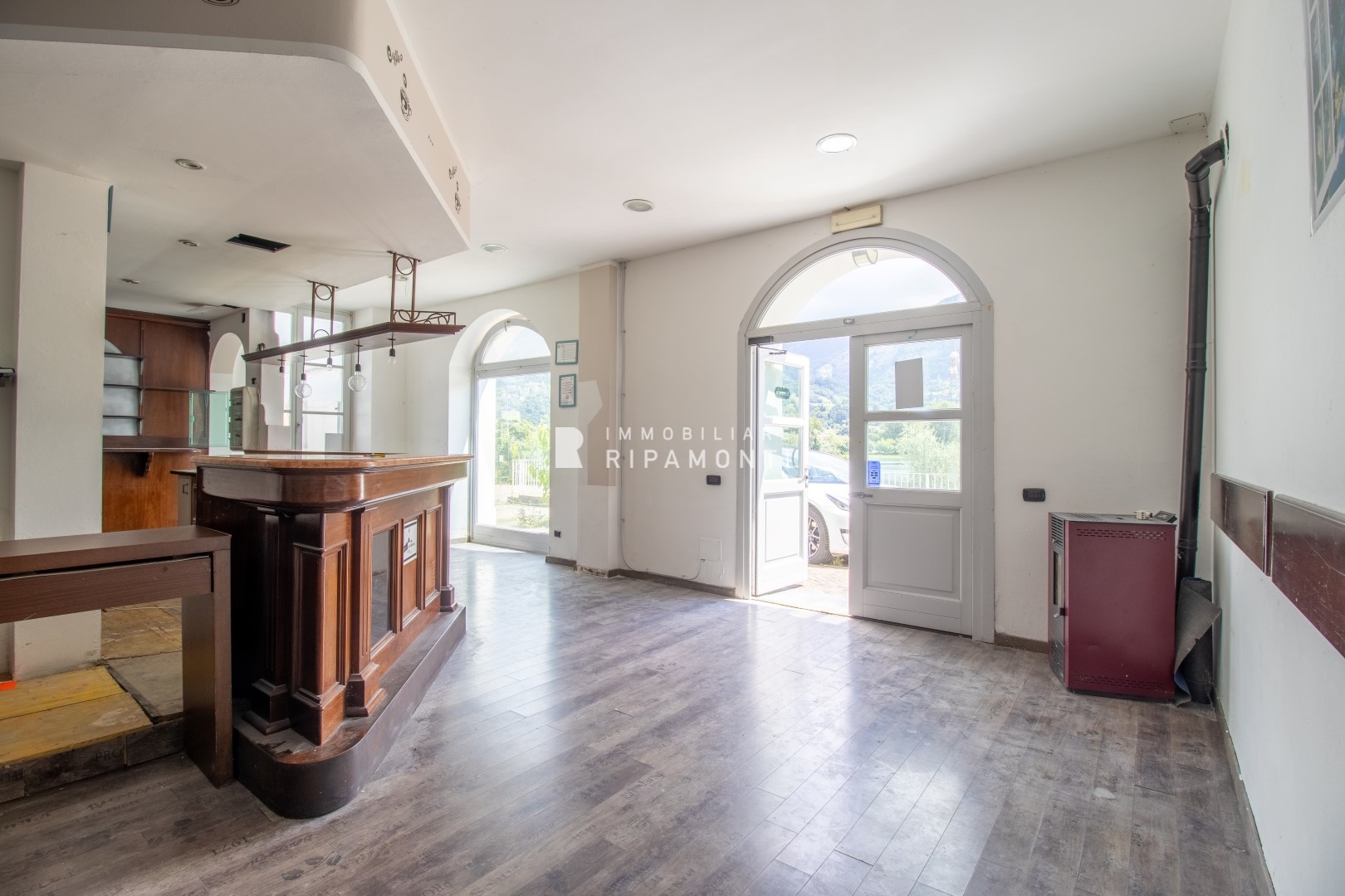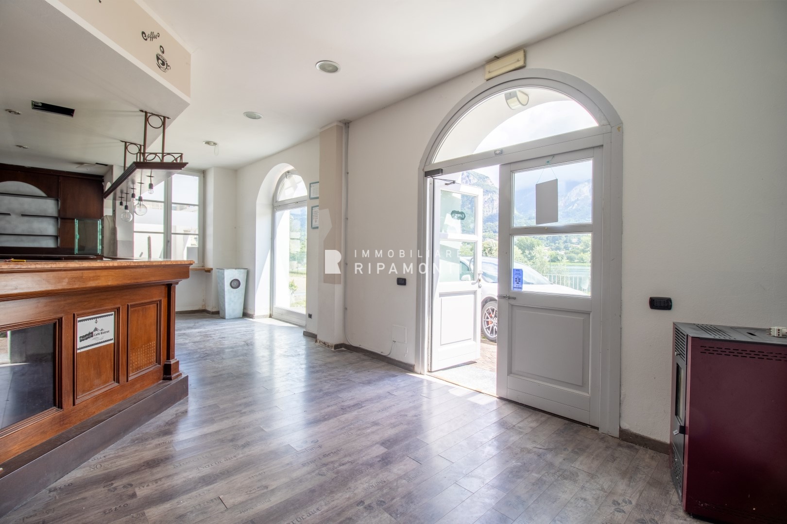 Locale commerciale a Olginate. \nAffacciato sul lago di Olginate, a due passi dal centro cittadino, ideale per attività di bar, pizzeria, gelateria ed attività equivalenti.\nLocale open space con cucina e accessori, beneficia di un'area esterna af...