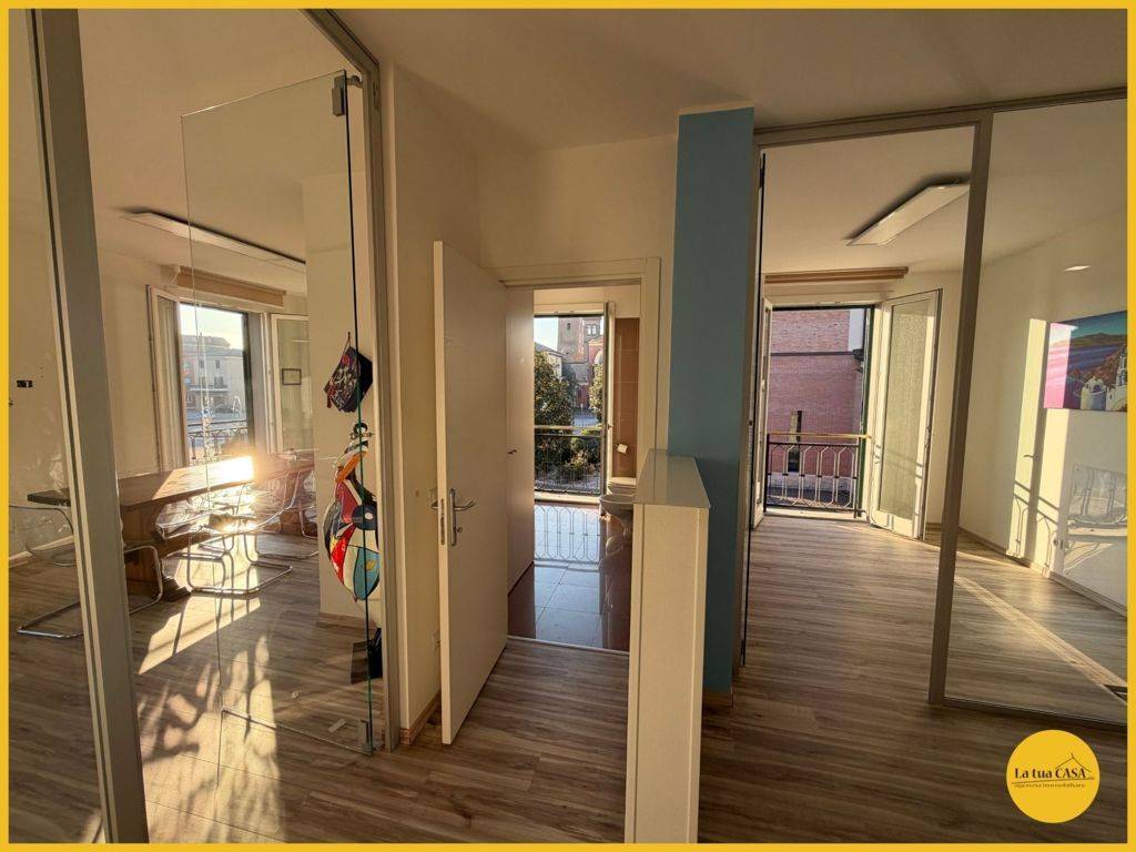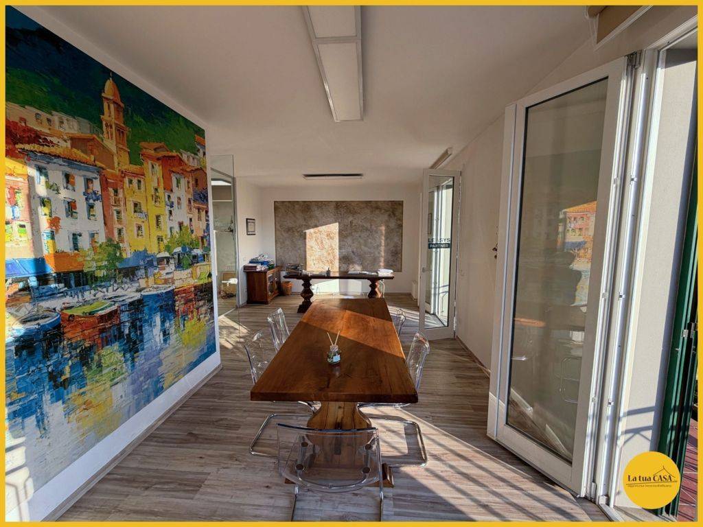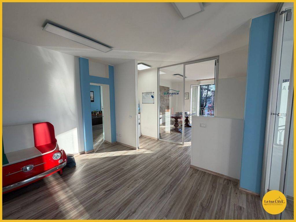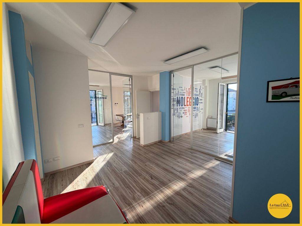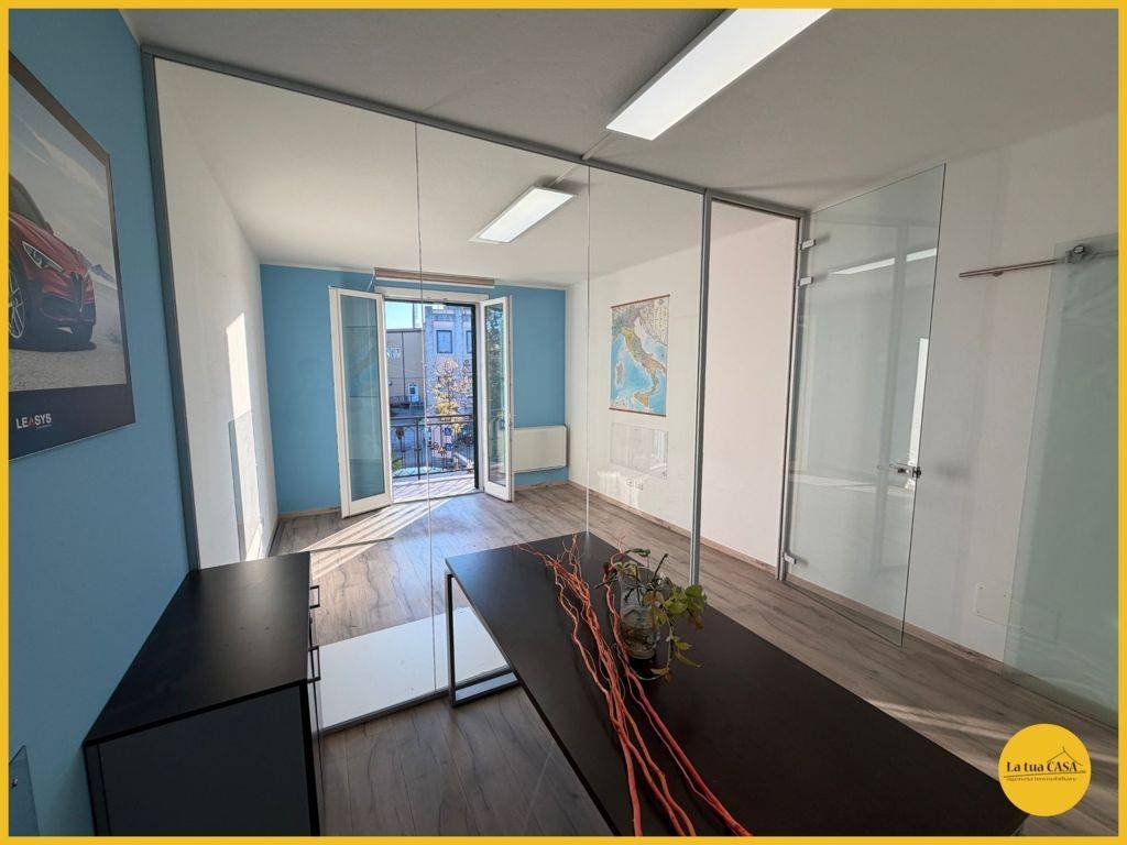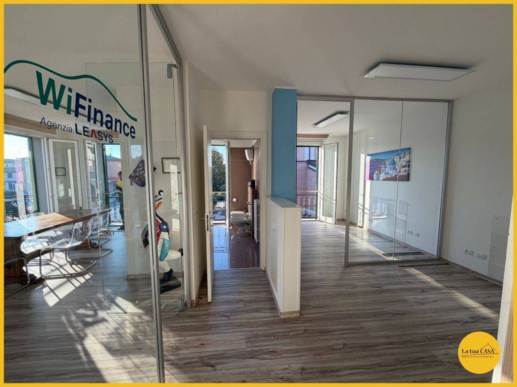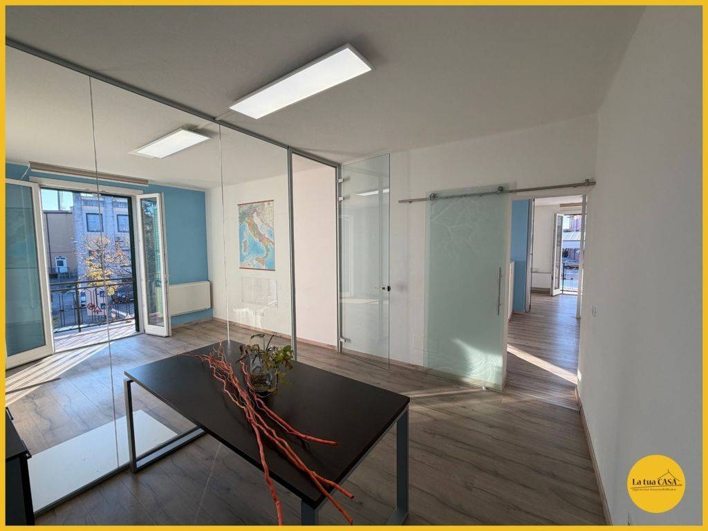 In palazzina prestigiosa, con vista unica, proponiamo lussuoso ufficio posto al piano primo dotato di ascensore composto da: Ingresso, sala d'attesa, ampia zona riunioni, bagno con box doccia, quattro uffici divisi e balcone con vista sul campanil...