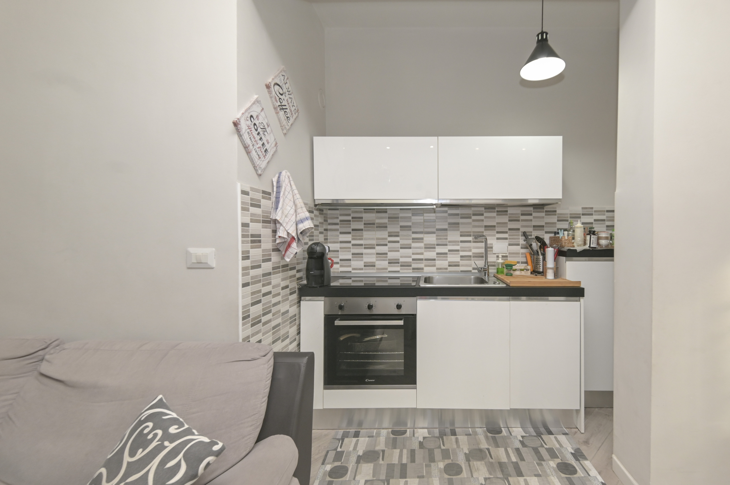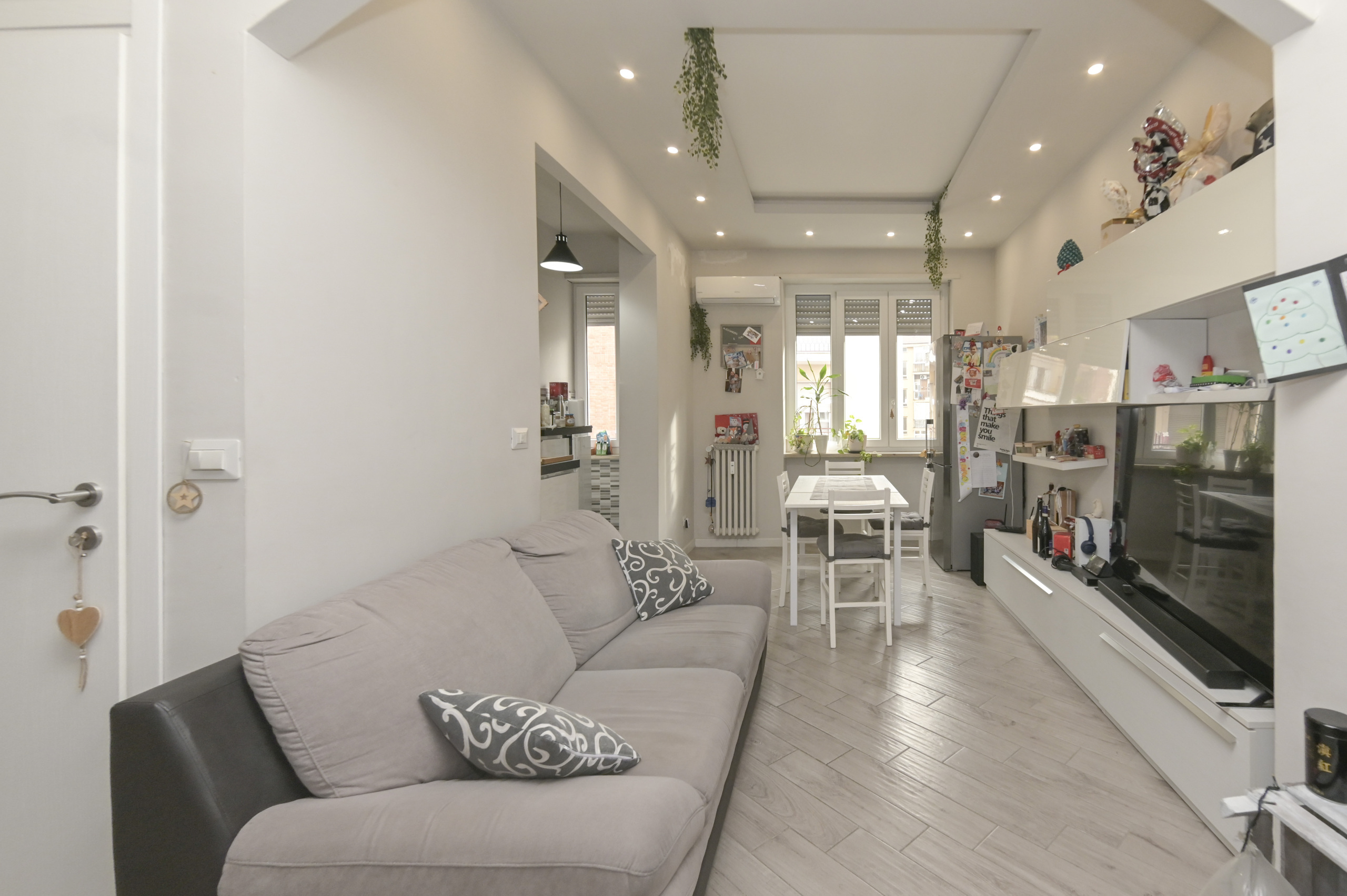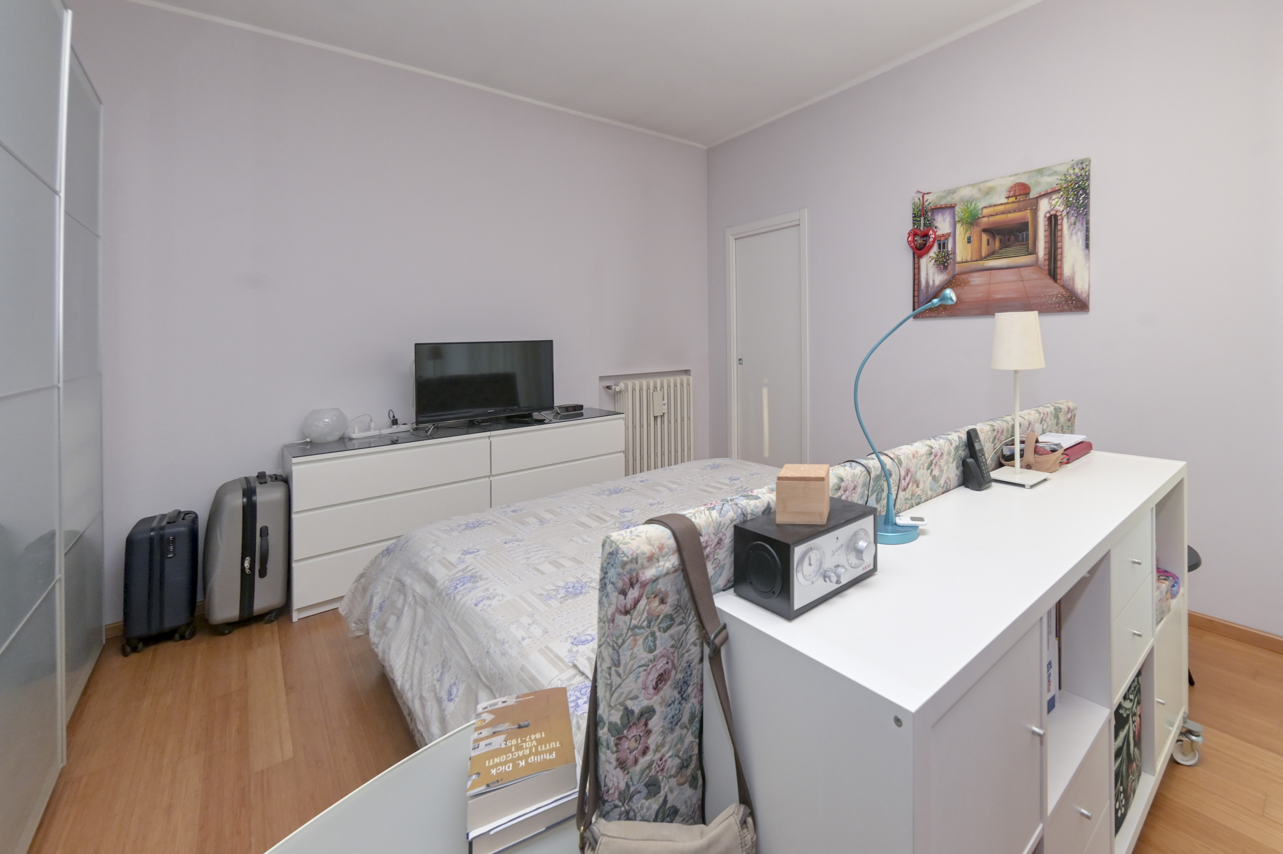 Su via tranquilla ma comoda al centro proponiamo un bilocale completamente ristutturato sito al terzo piano con ascensore. Internamente la casa ha un bel living sul tinello, un cucinino con cucina attrezzata su misura, un disimpegno che porta al r...