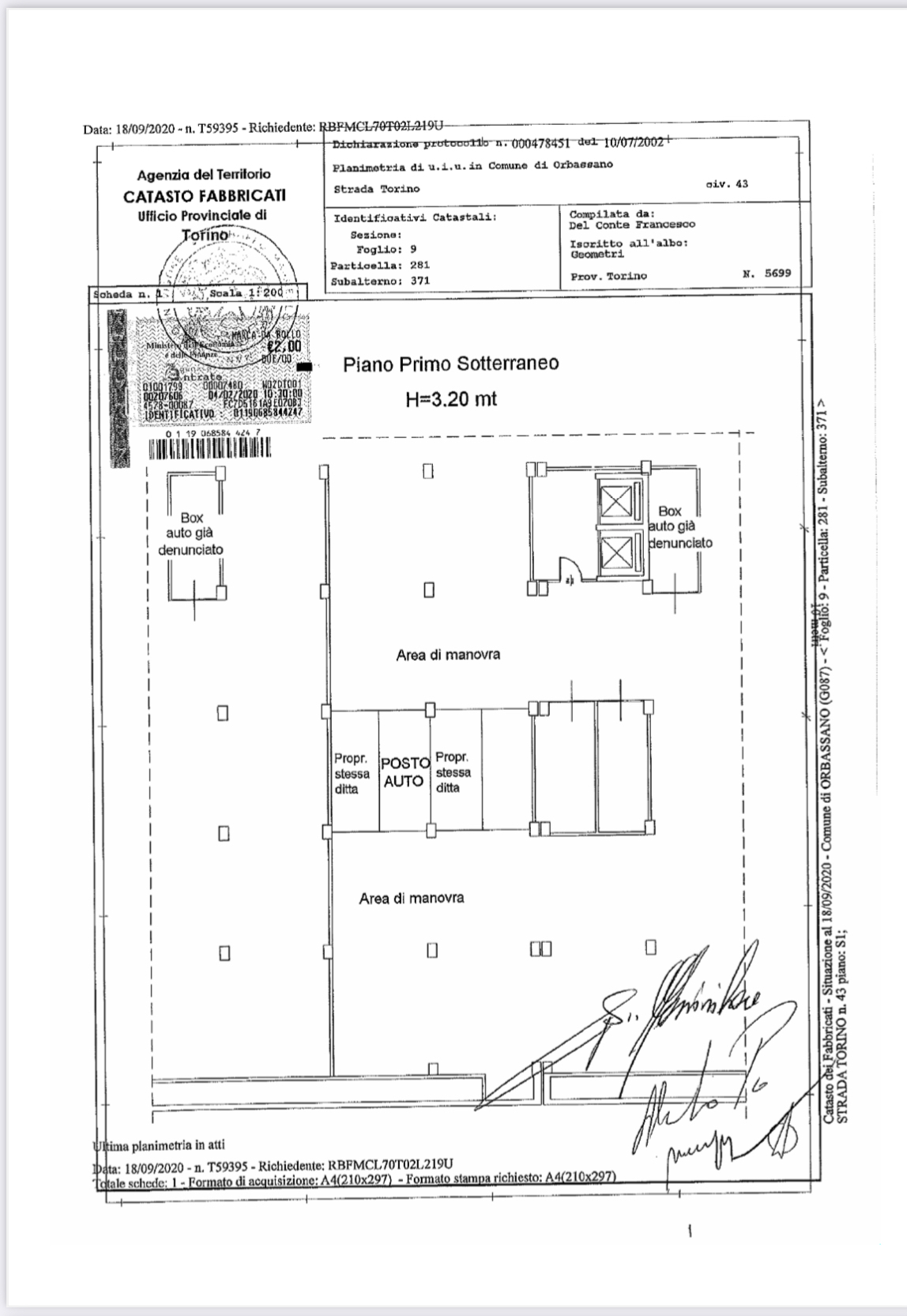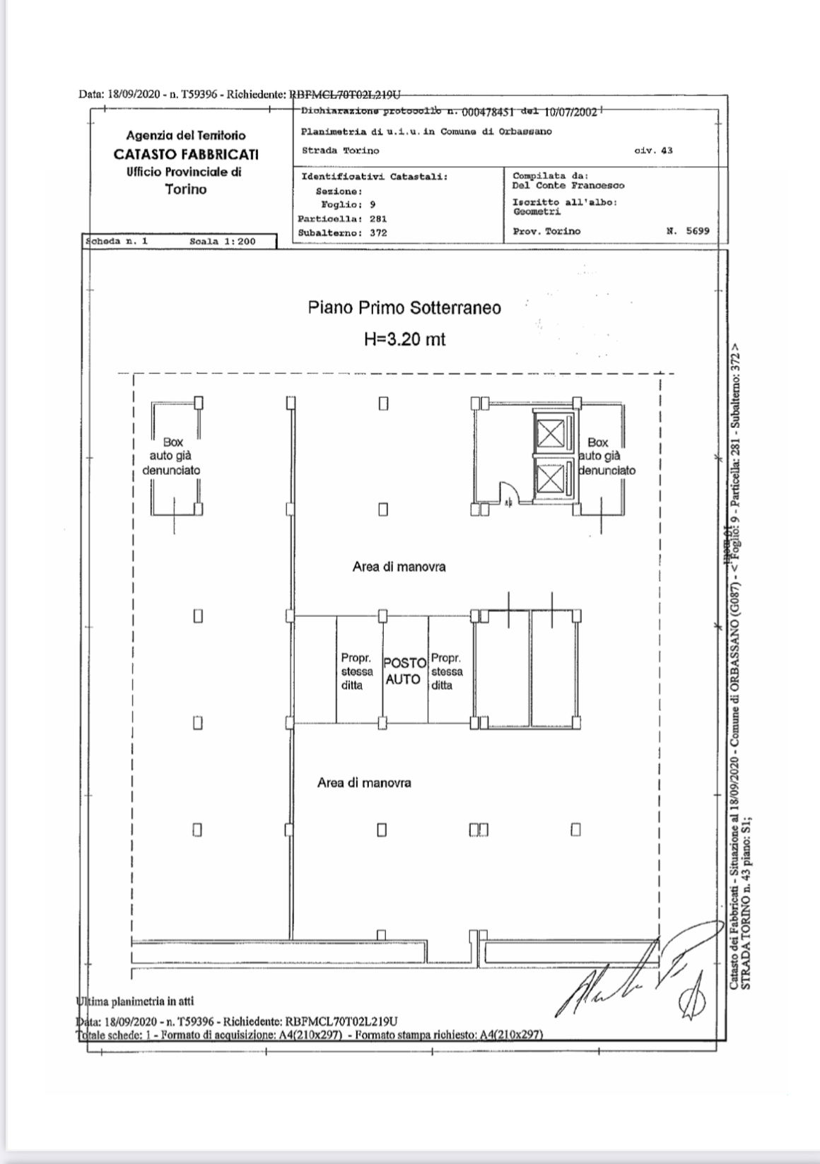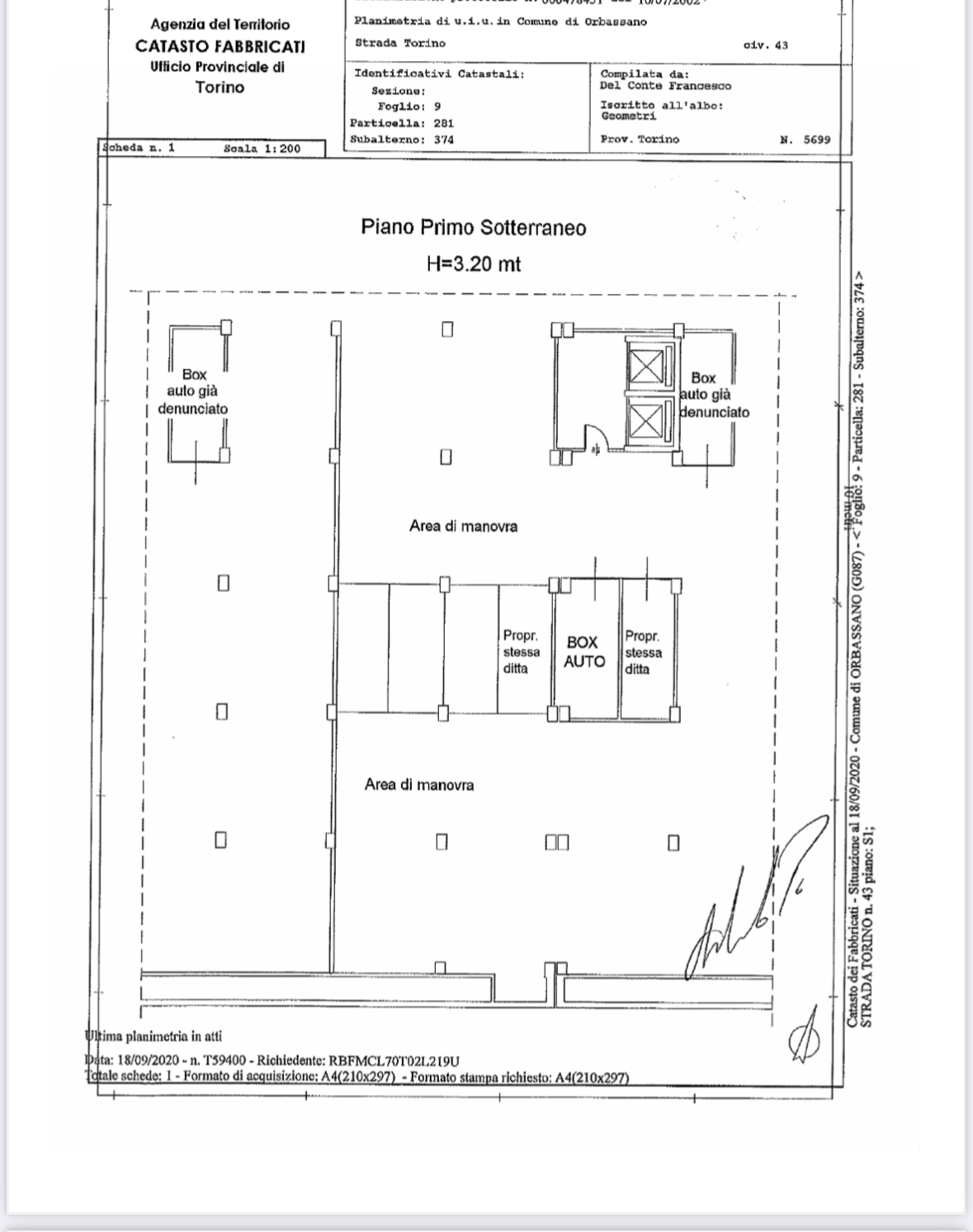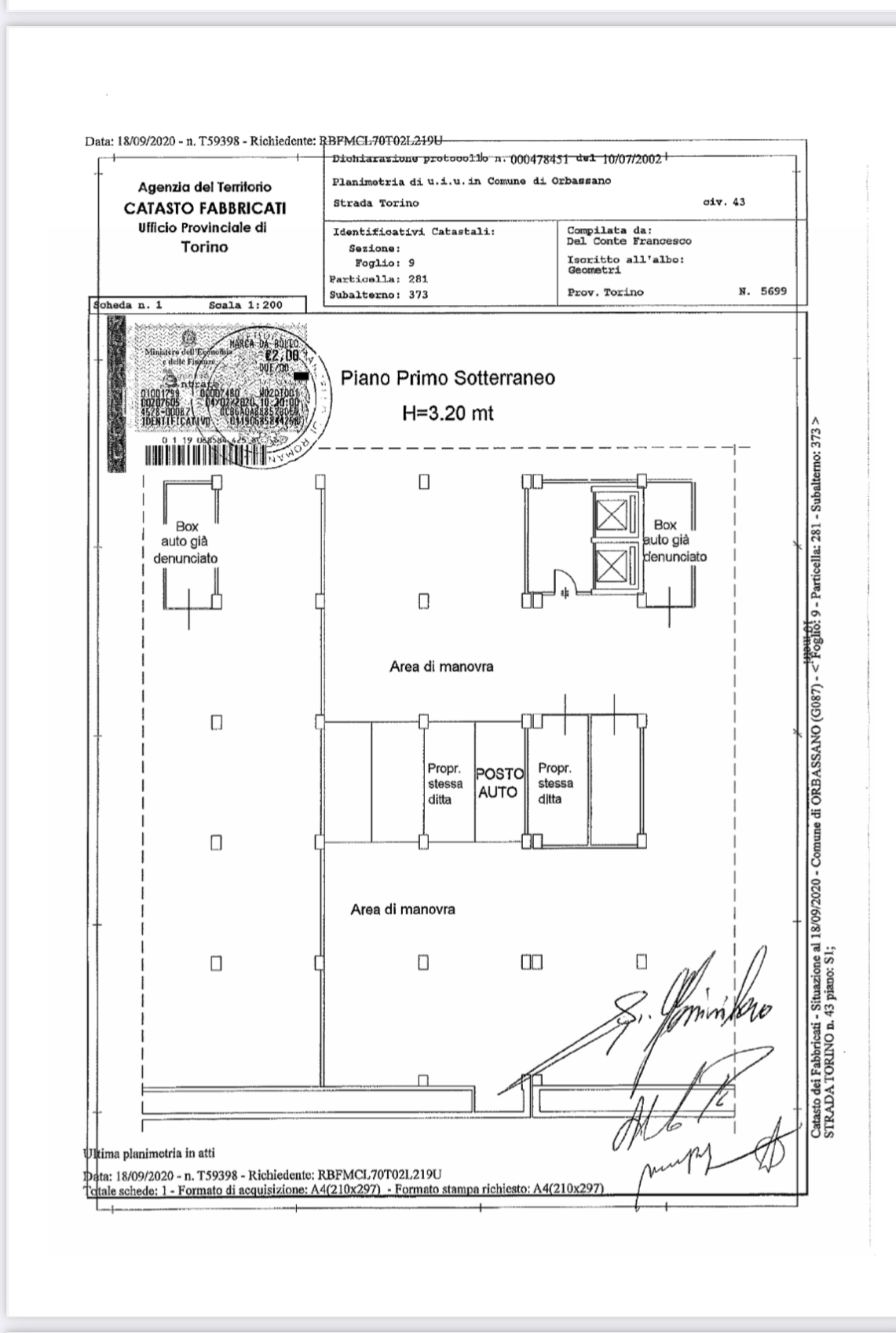 In corso Trapani 98 proponiamo Box Auto coperto al secondo piano interrato di 25,60 mq. Uscita pedonale con ascensore.Larghezza ingresso 2,17 metri. Altezza 2,6 m ; Larghezza interna 4,6 m ; Lunghezza 5 metri.