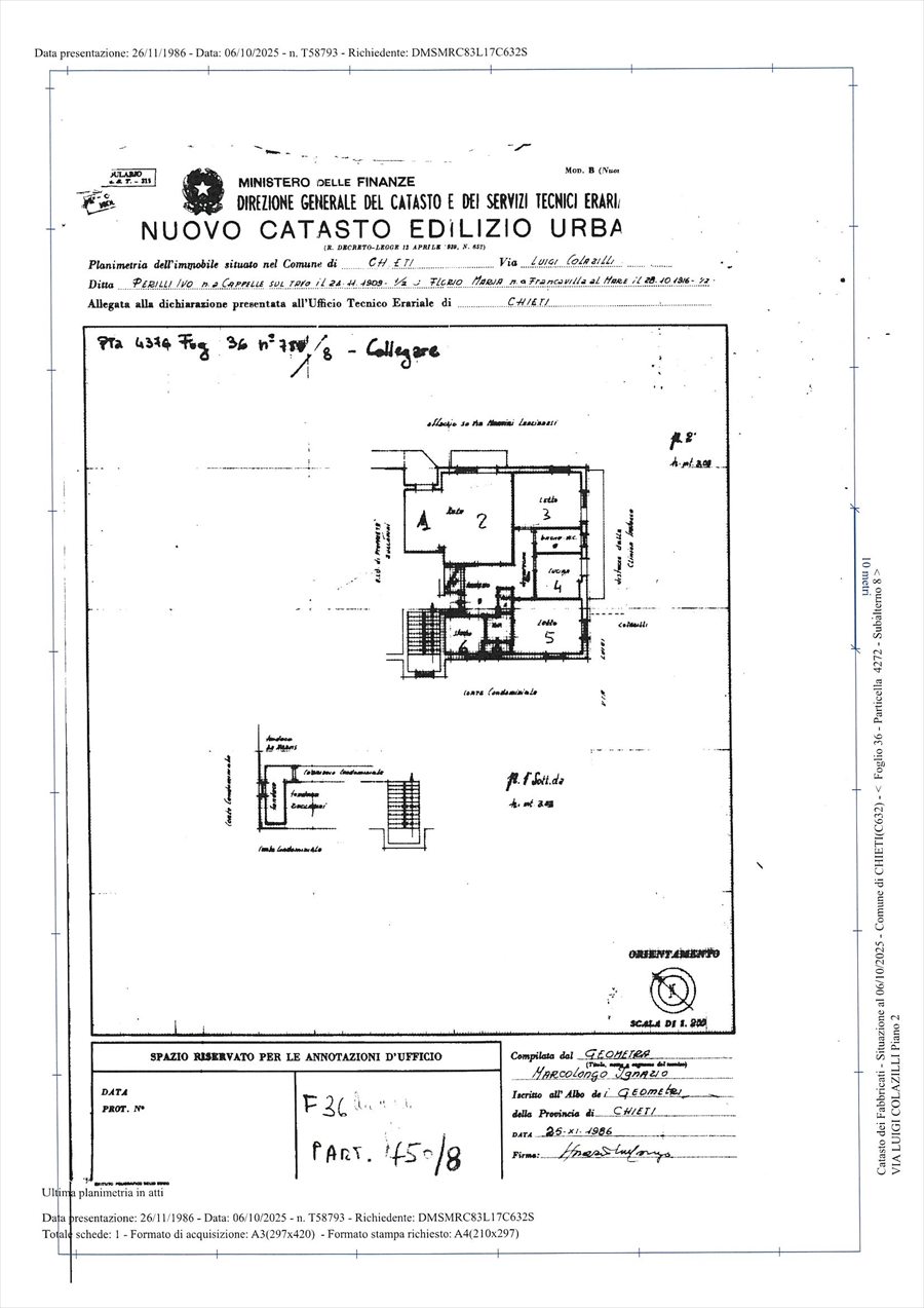 CHIETI Via Colazilli Appartamento 4^ Piano 100 mq. circa composto da Ingresso Cucina Sala 3 Camere 2 Bagni. GARAGE E CANTINA