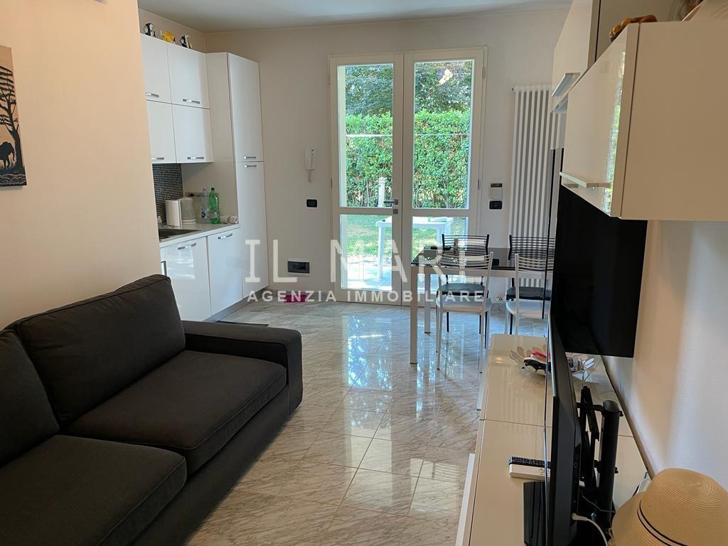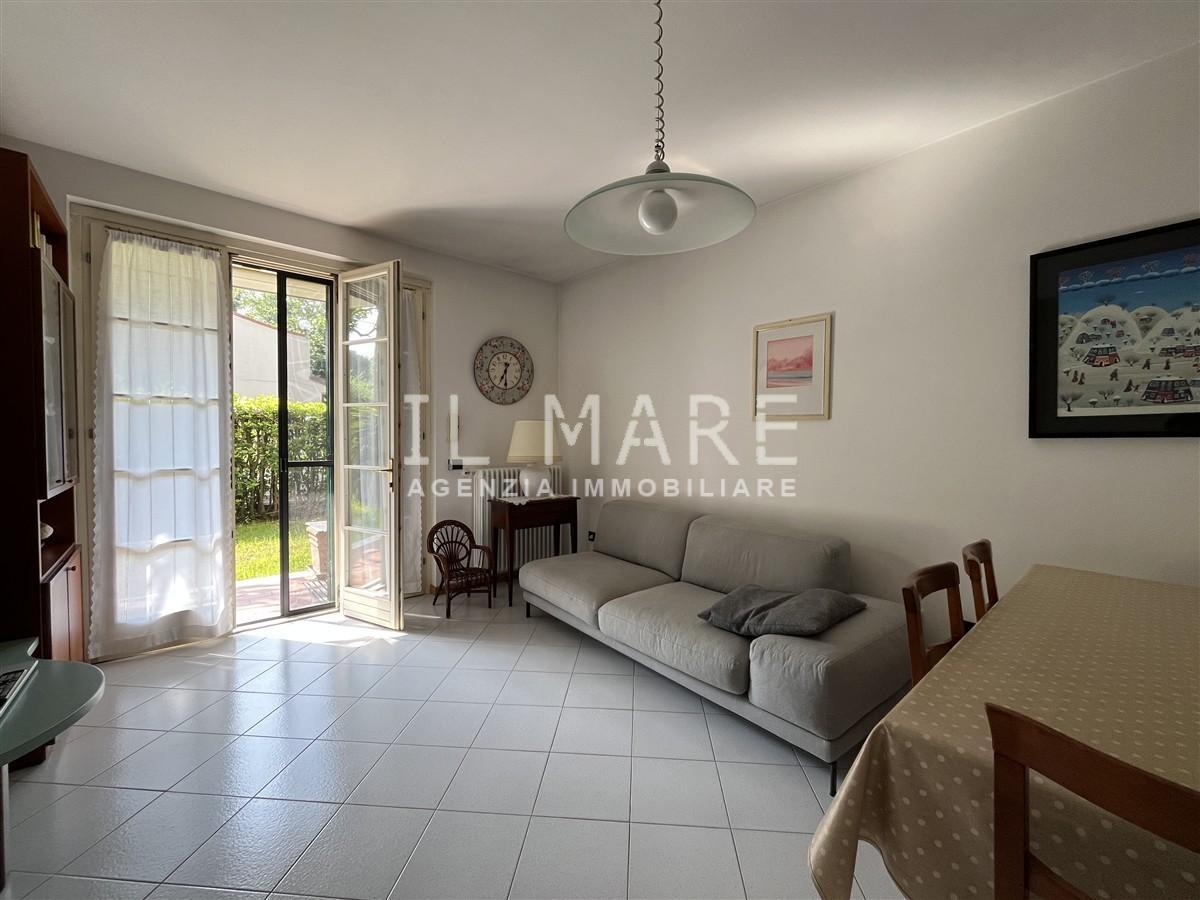 Ronchi: a solo 100 mt. dal mare, in piacevole contesto condominiale dei primi anni 2000, disponibile alla vendita appartamento al piano terra con ampio giardino privato. Si compone di soggiorno con angolo cottura, due camere da letto, bagno finest...