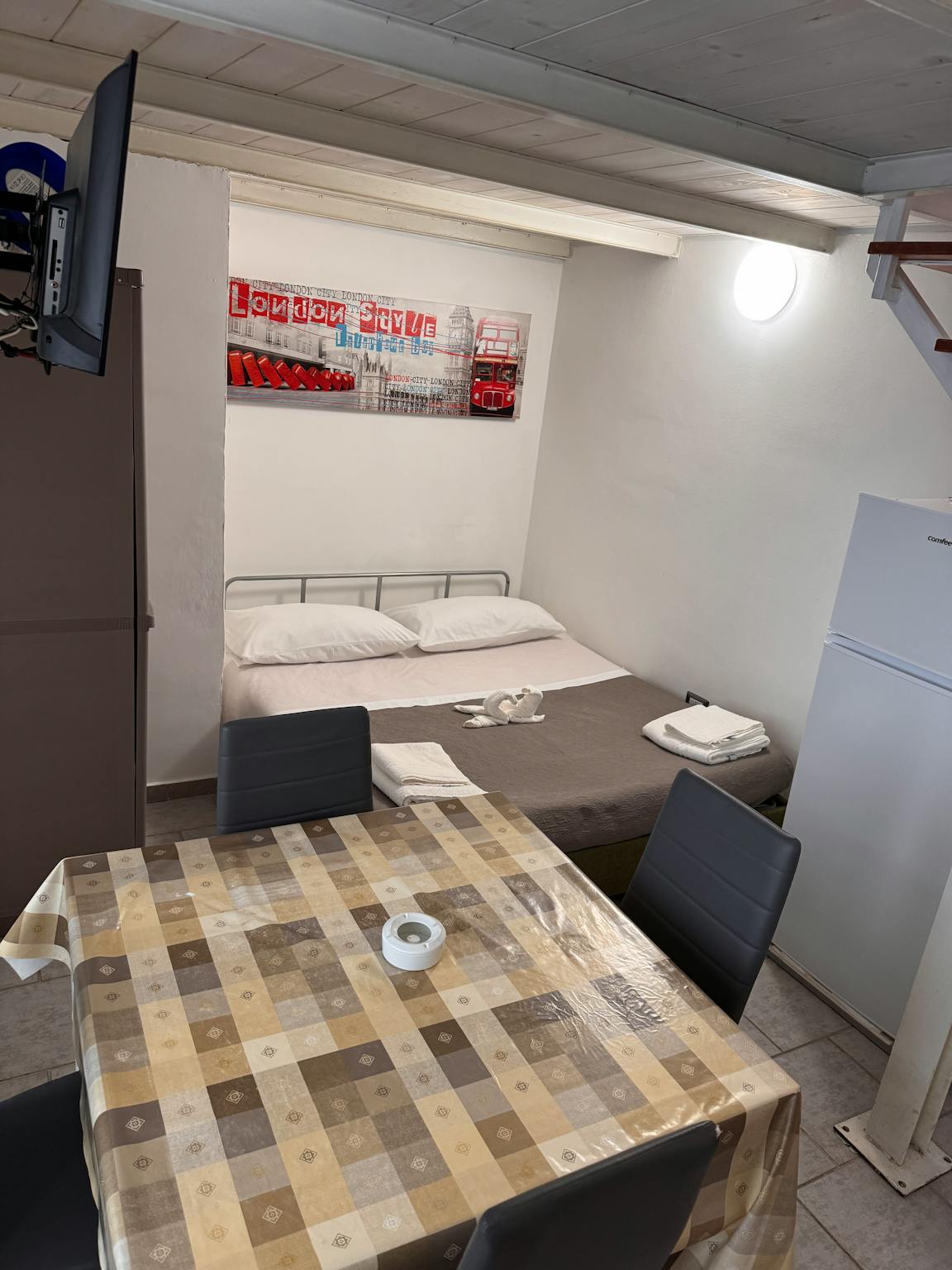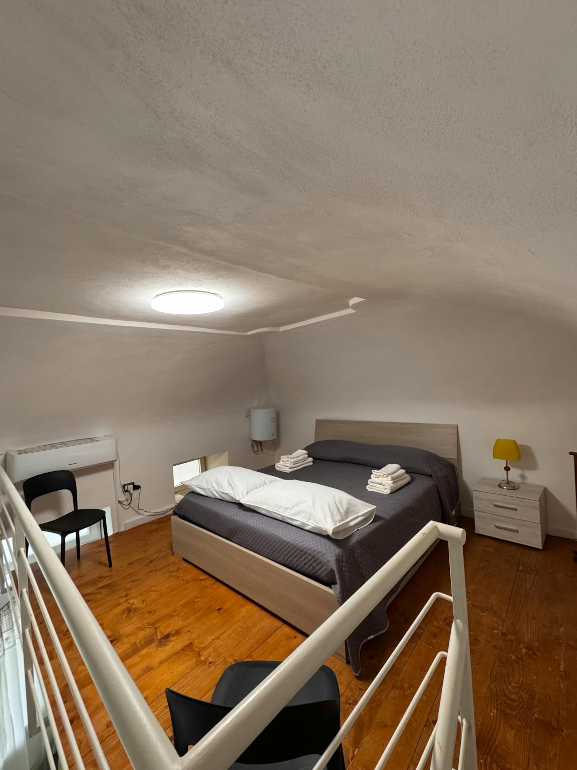 Soppalco con letto matrimoniale e divano letto apribile con secondo letto matrimoniale