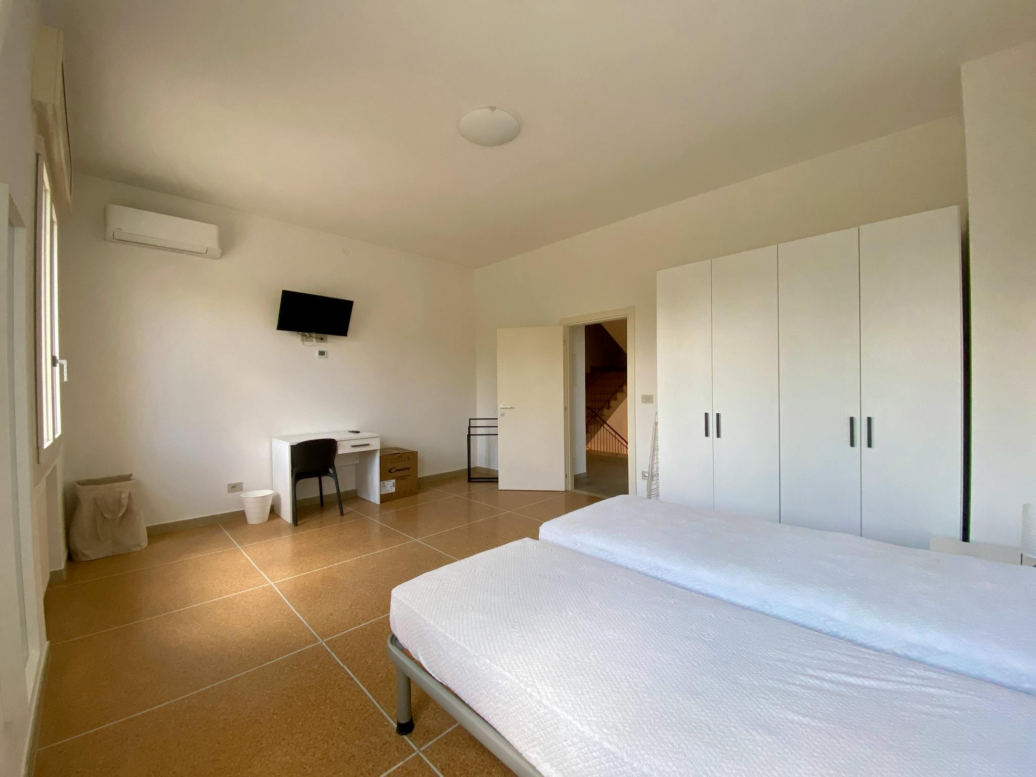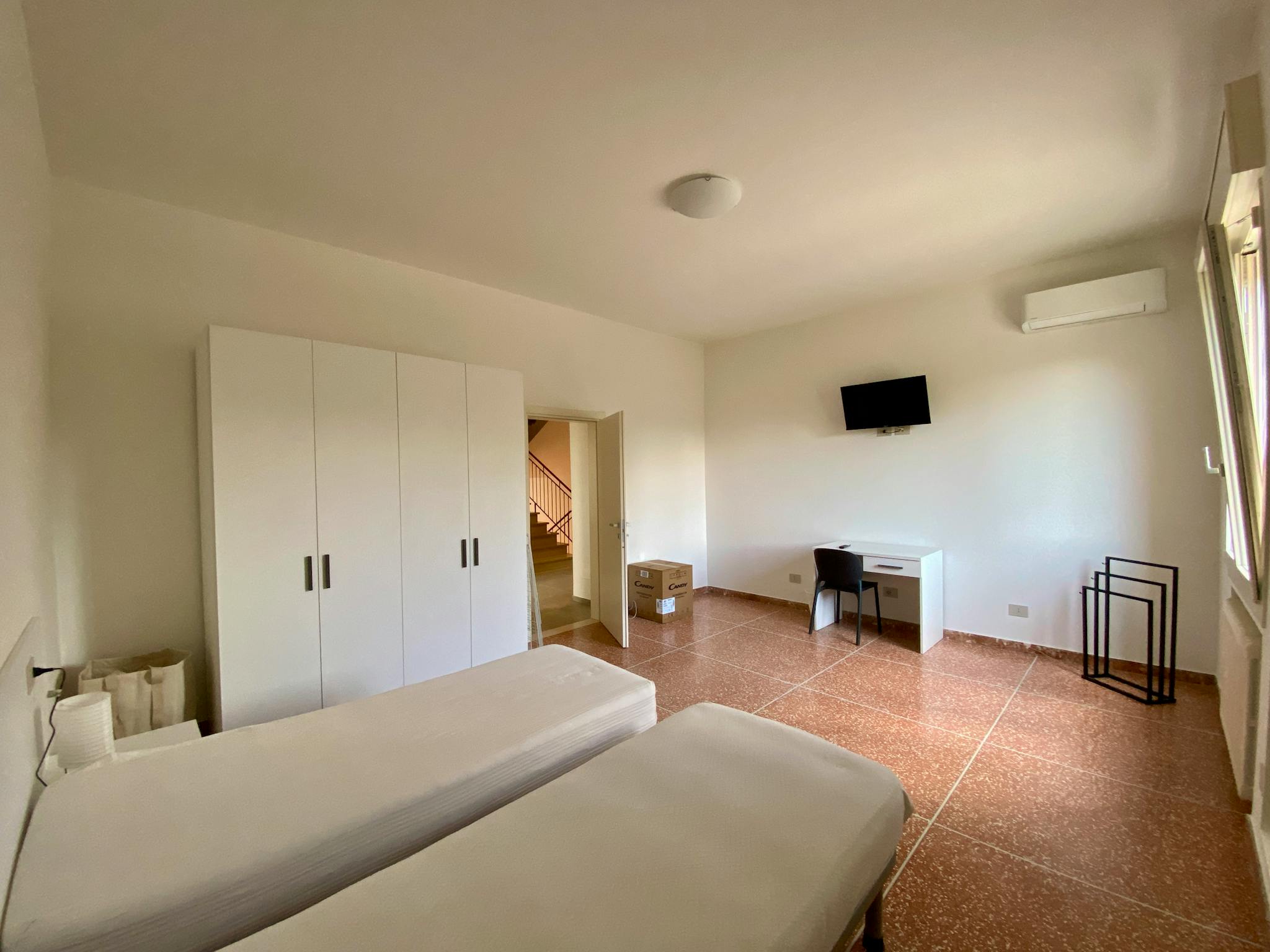 ROOM NUMBER 2. This room is spacious and bright and is located on the first floor of a completely renovated detached house, with a large private garden, porch, and parking spaces. The room has two single beds, TV, desk, wardrobe, Wi-Fi connection...