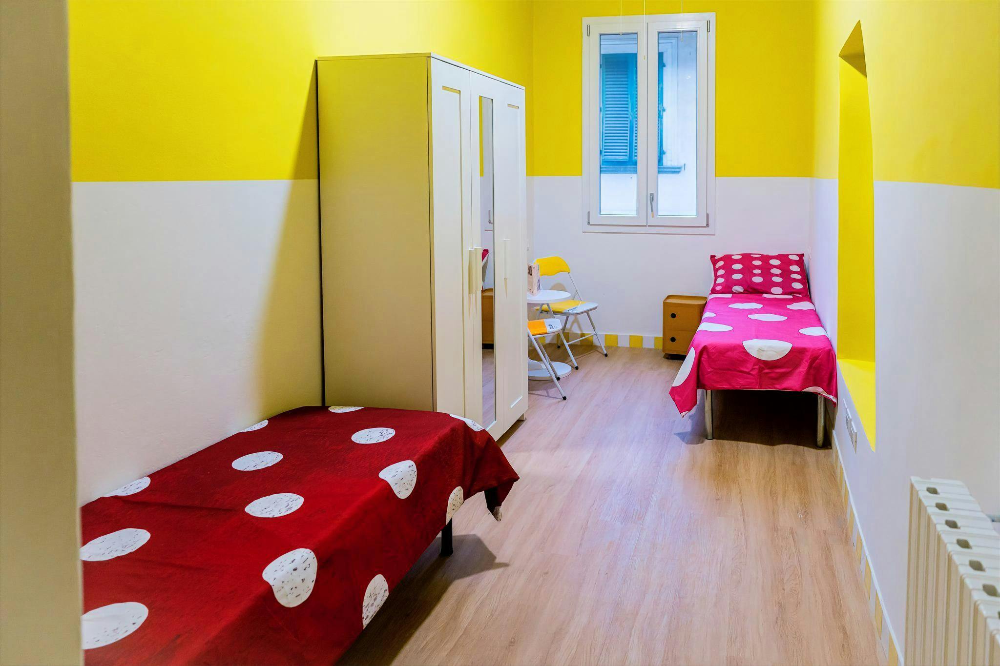 Shared twin room in the heart of Florence (shared with 1 tenant) with insuite private bathroom. Pls READ CAREFULLY cost details: monthly total amount for rent and utilities is 670 euro per person including condominium fee, garbage tax, heating ma...