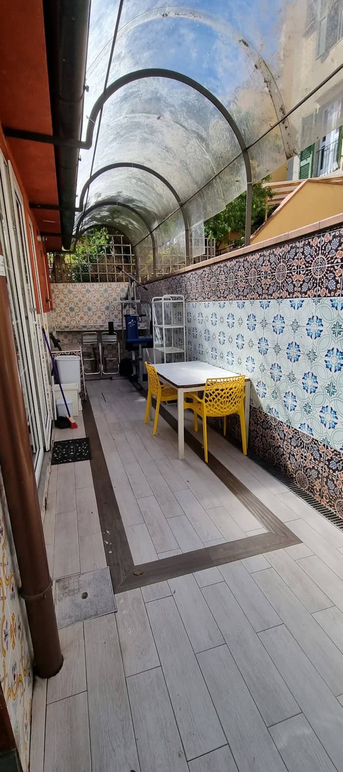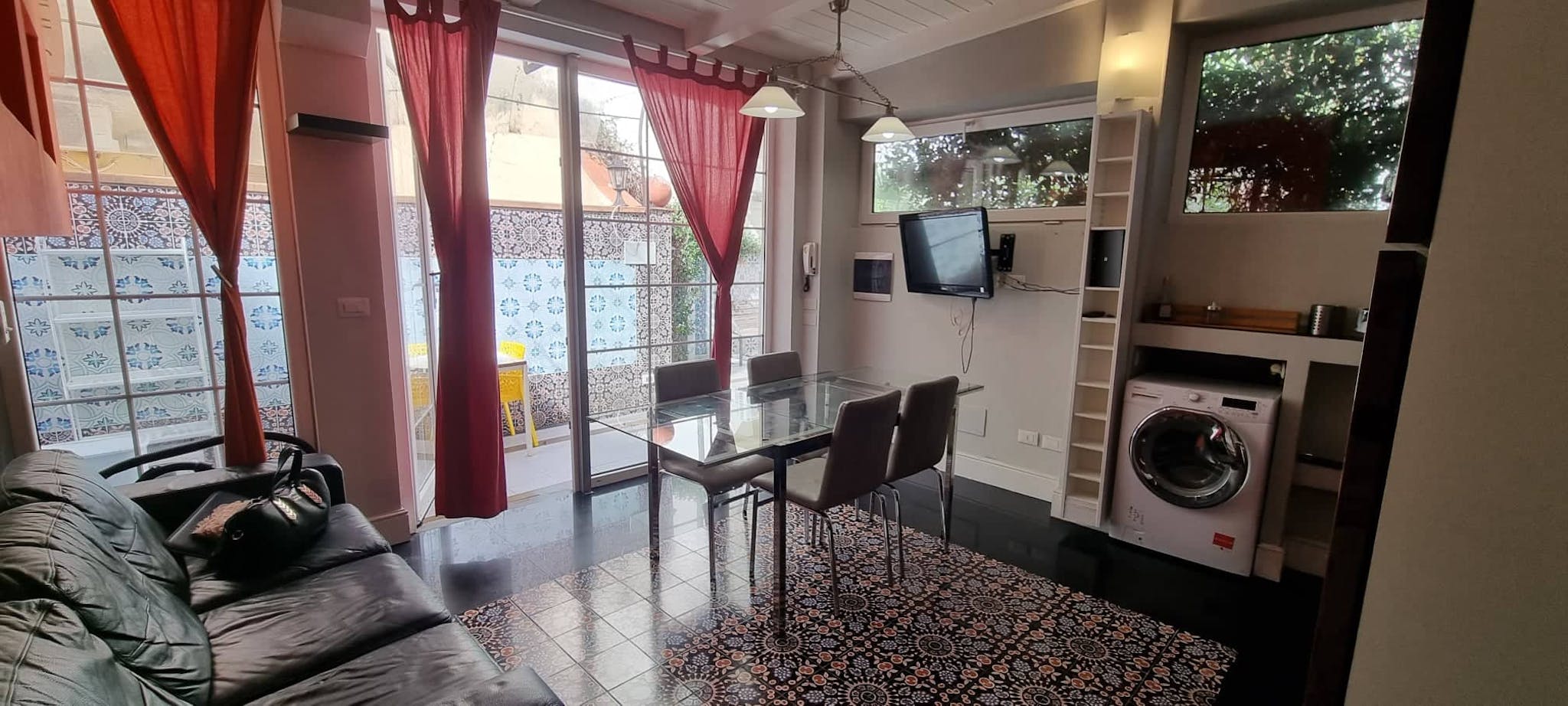 appartamento con ingresso autonomo , giardino ,zona pranzo esterna , ingresso soggiorno ampio con cucina sulla destra ujna camera singola con bagno interno , una camera doppia grande con bagno interno e questa camera singola che ha il bagno condiv...