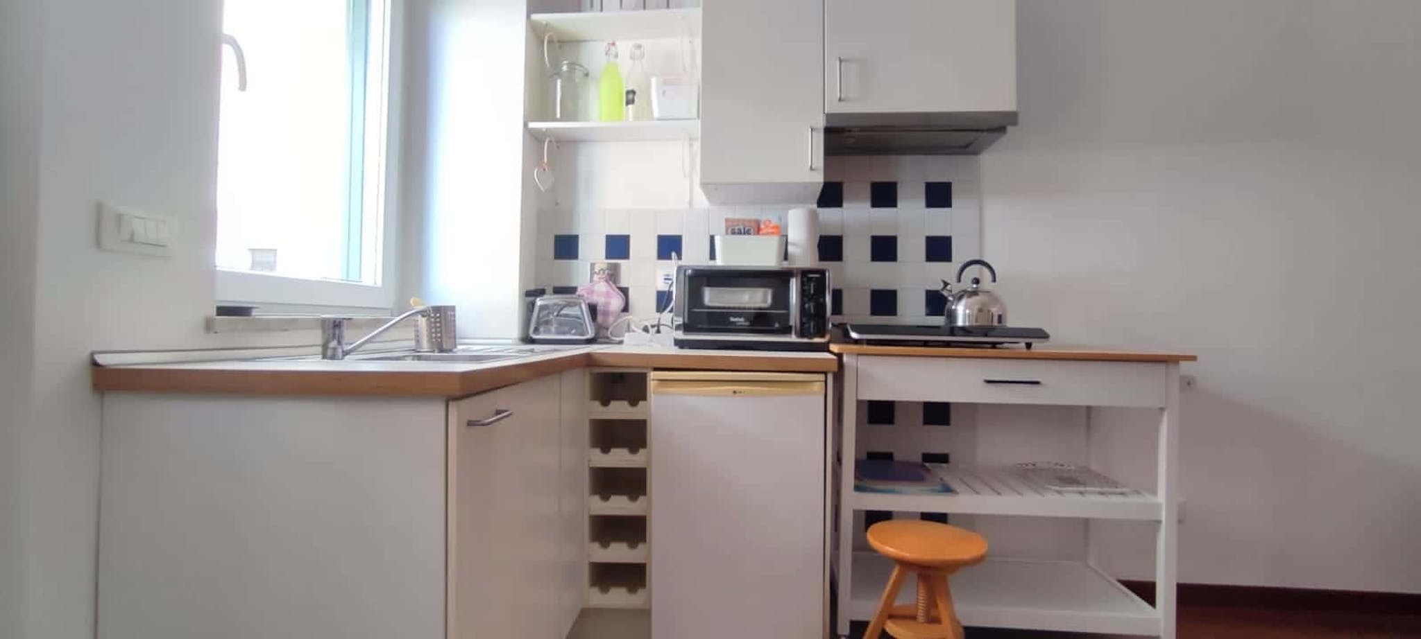 ????Welcome to Rome! Bright and well-organized two-room apartment on Via Travezzari, Rome. The apartment comprises a spacious bedroom, a modern bathroom, a versatile study/living room, and a fully equipped kitchen with everything you need. The p...