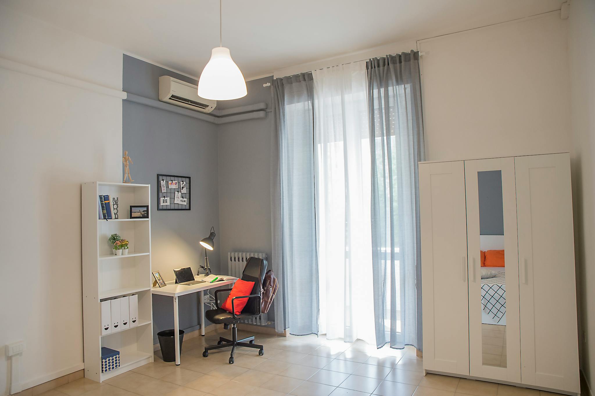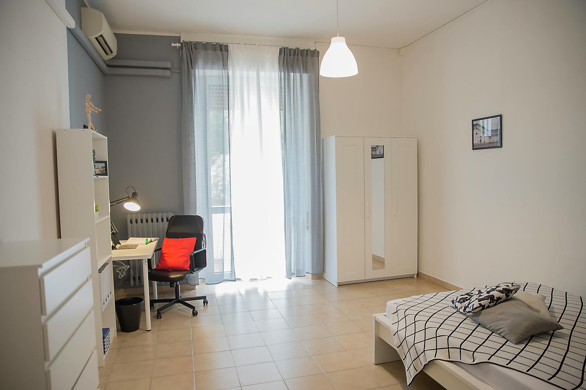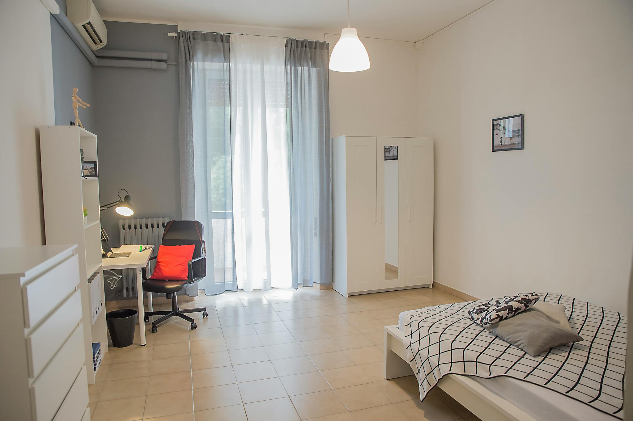 Amazing and Huge Single room with balcony ideal for young university students close to the center and Università degli studi "G.d'Annunzio" sede Pescara, Viale Pindaro, 42, 65127 Pescara PE. The room consists of a double bed, desk and chair, mir...