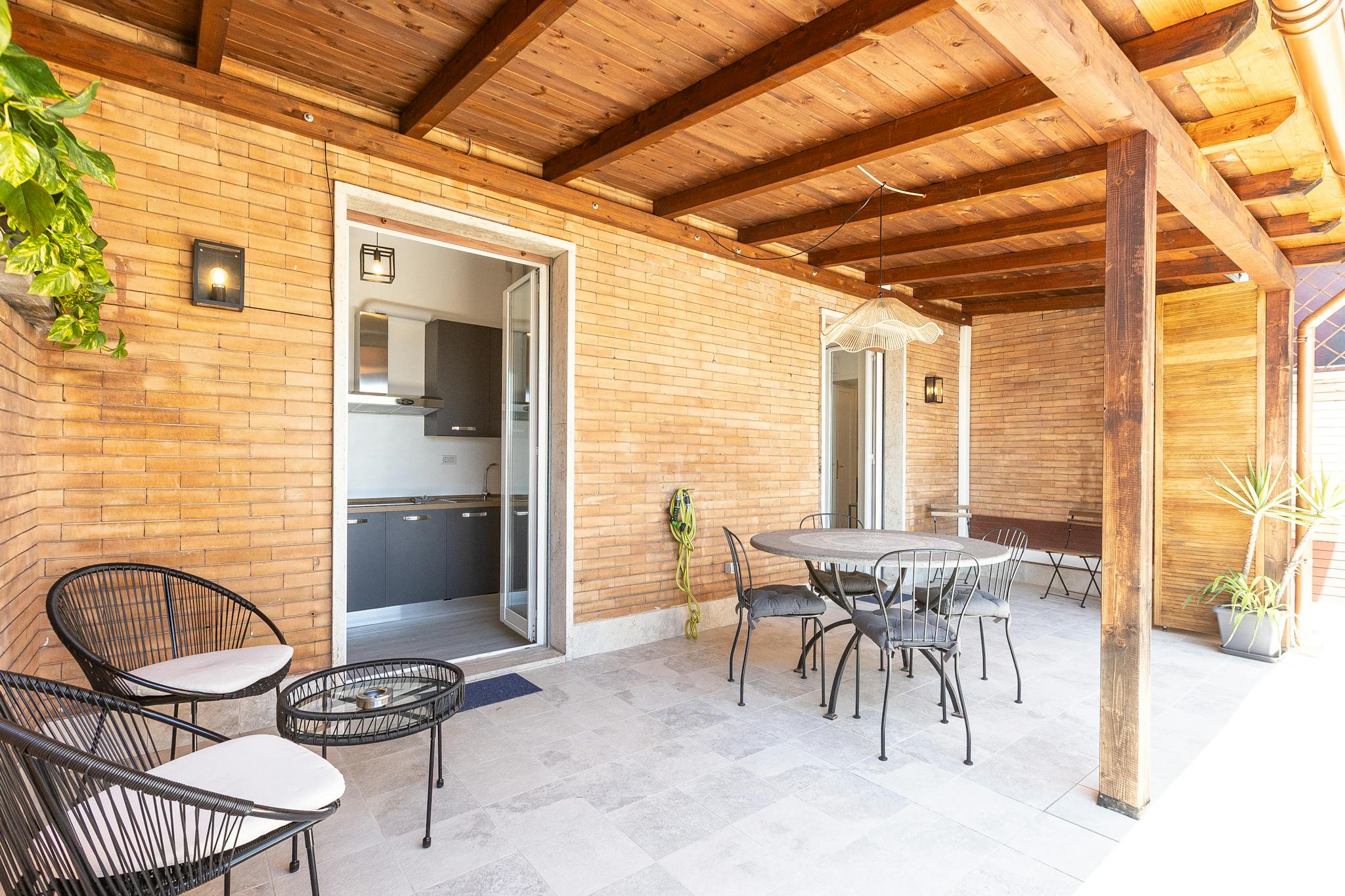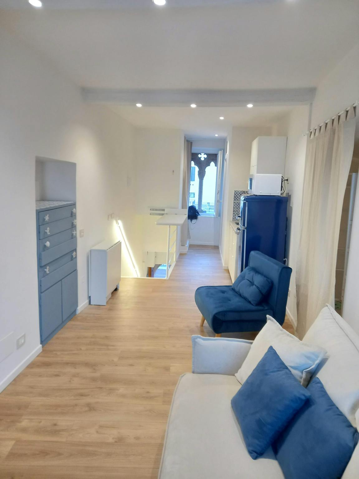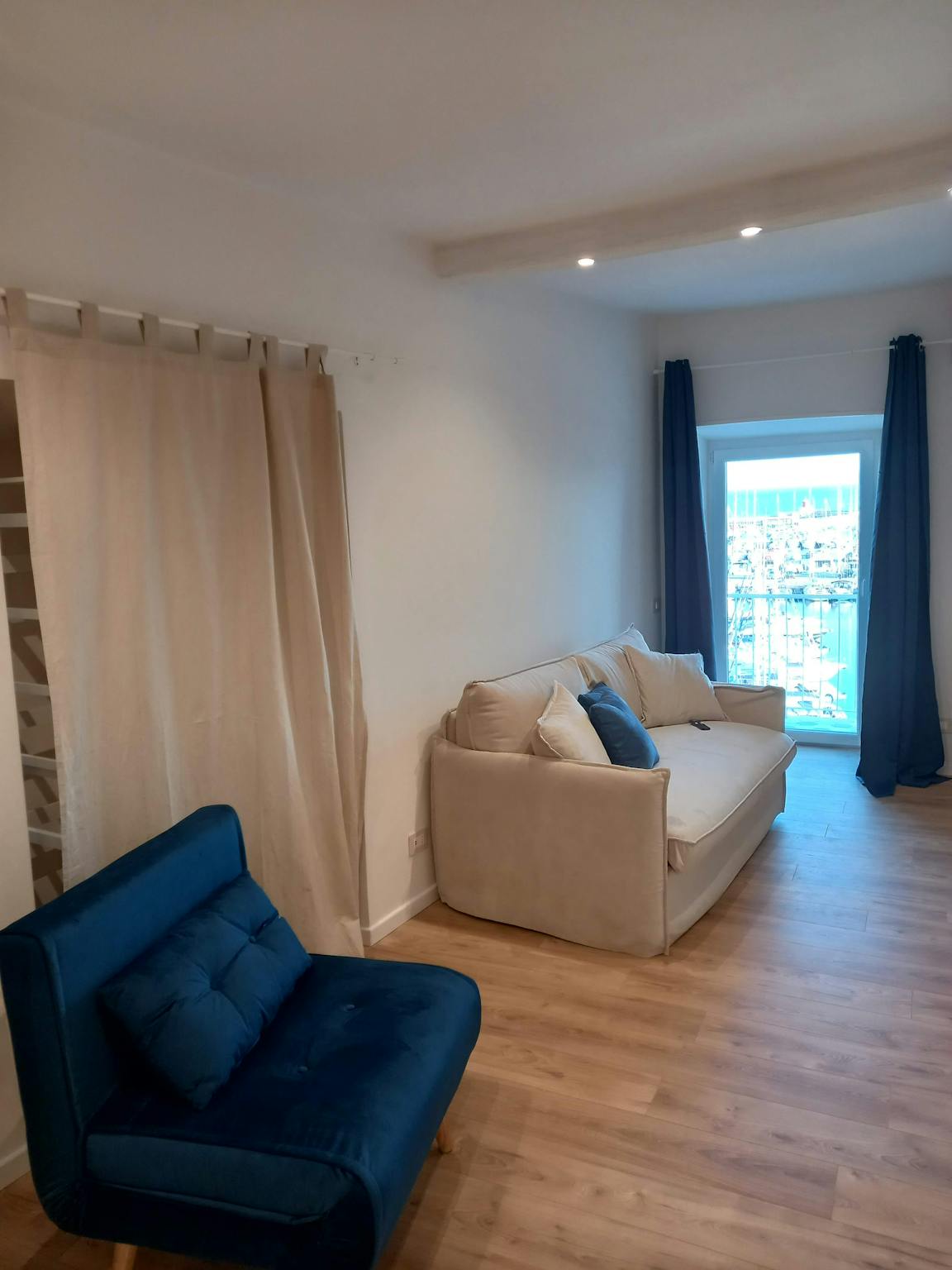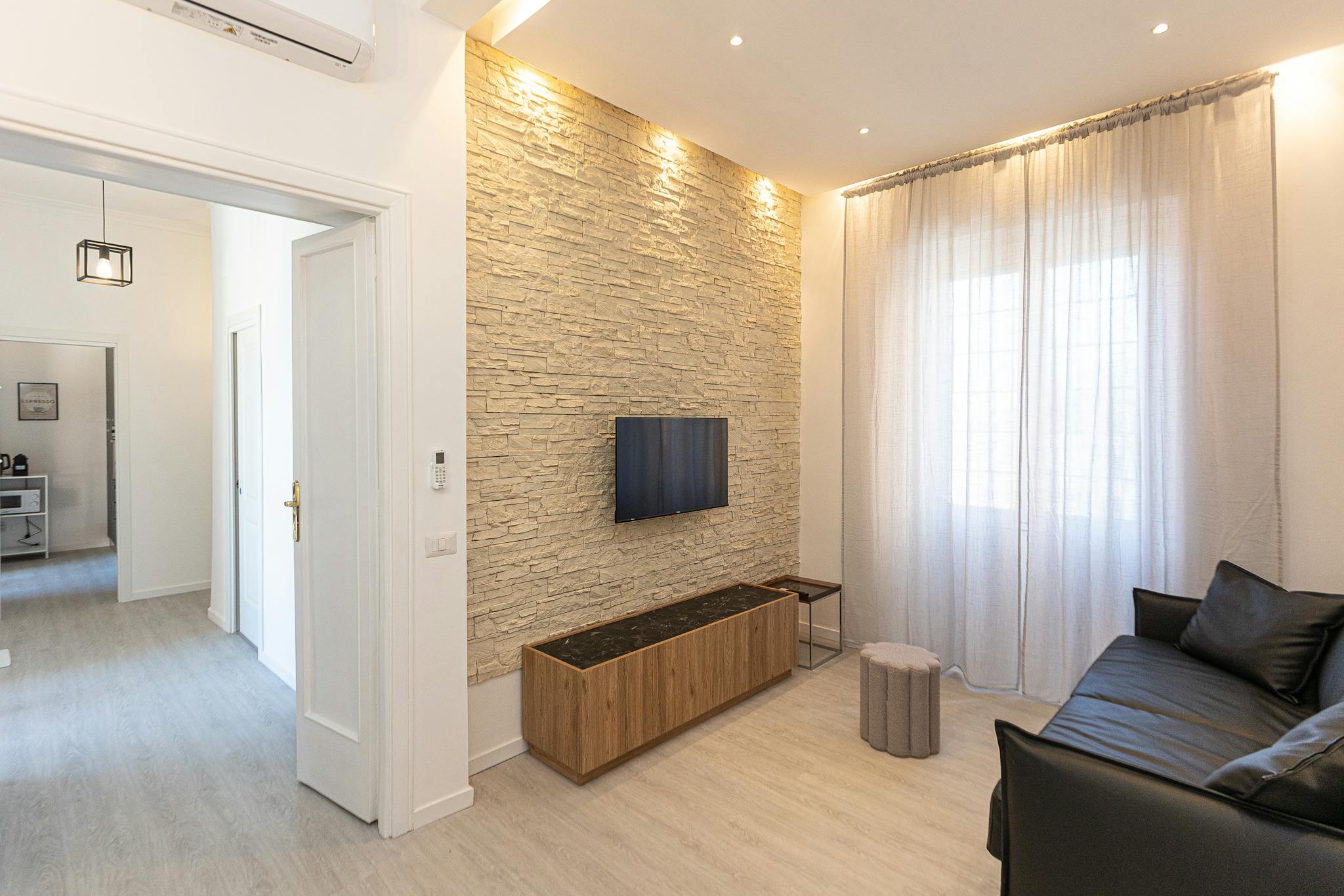 Newly renovated studio apartment in the Medieval village of Nettuno with a panoramic balcony offering a breathtaking sea view. A few meters from the beach, the 30 sqm apartment features a bathroom with shower (Bluetooth speaker and chromotherapy),...