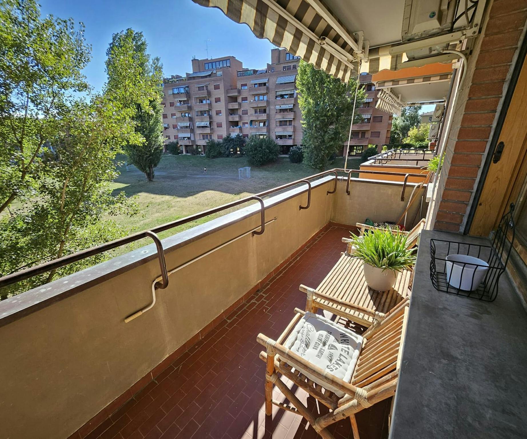 Very spacious and bright apartment of 77 square meters overlooking a green and leafy area of the park in front, located on the first floor (with an elevator) of an elegant residential building near the center of Bologna and the train station. Gues...