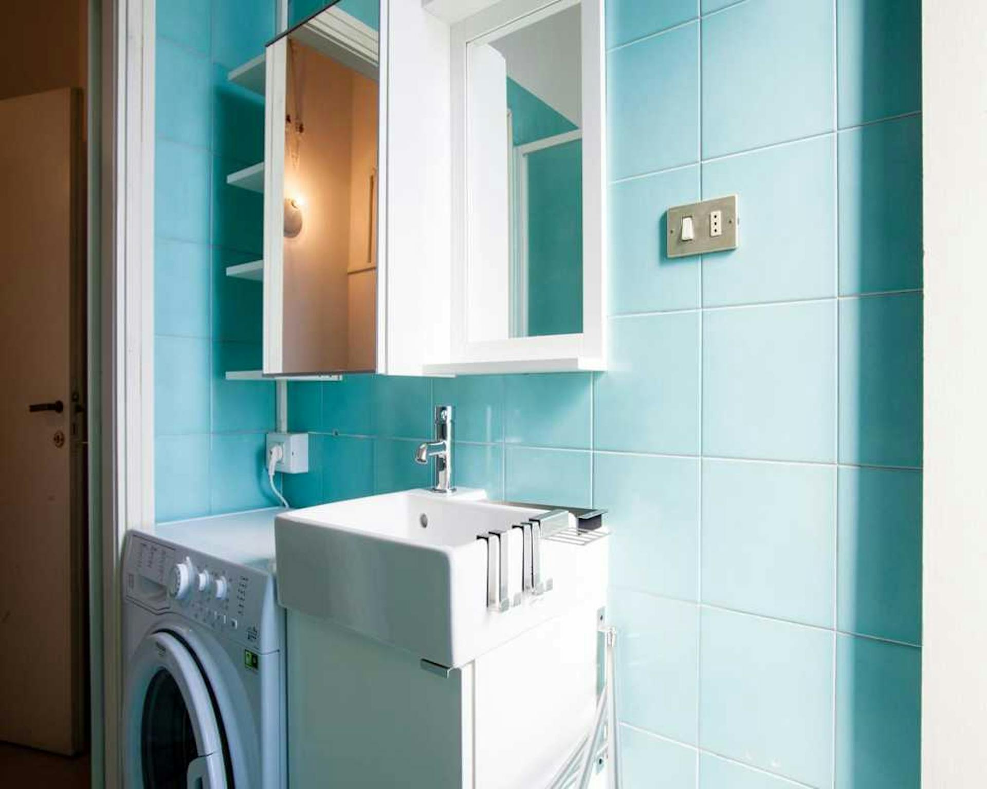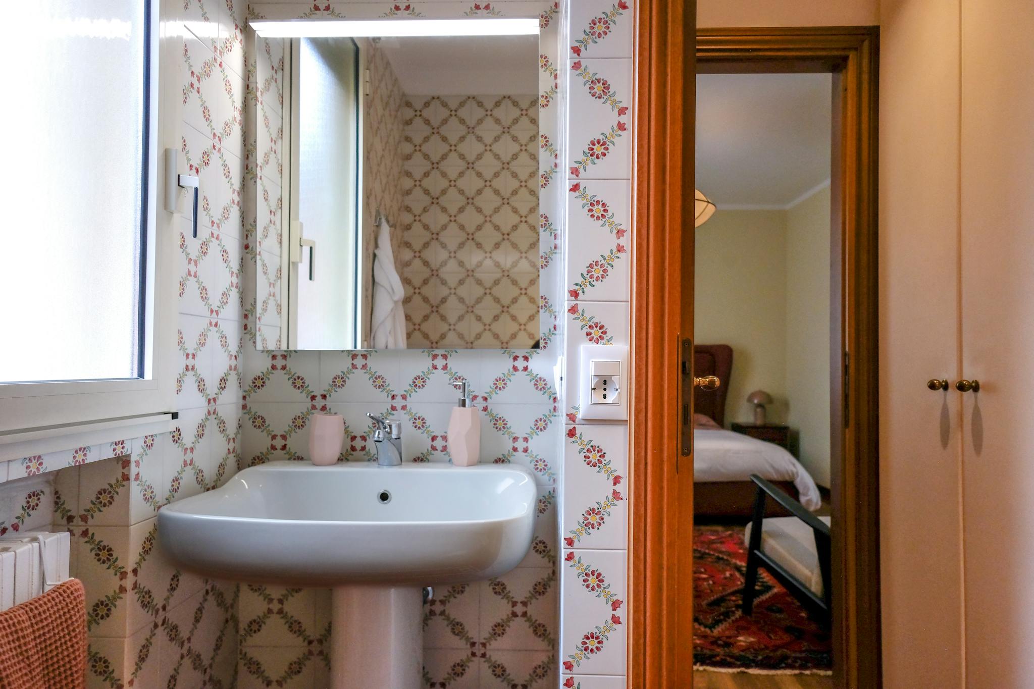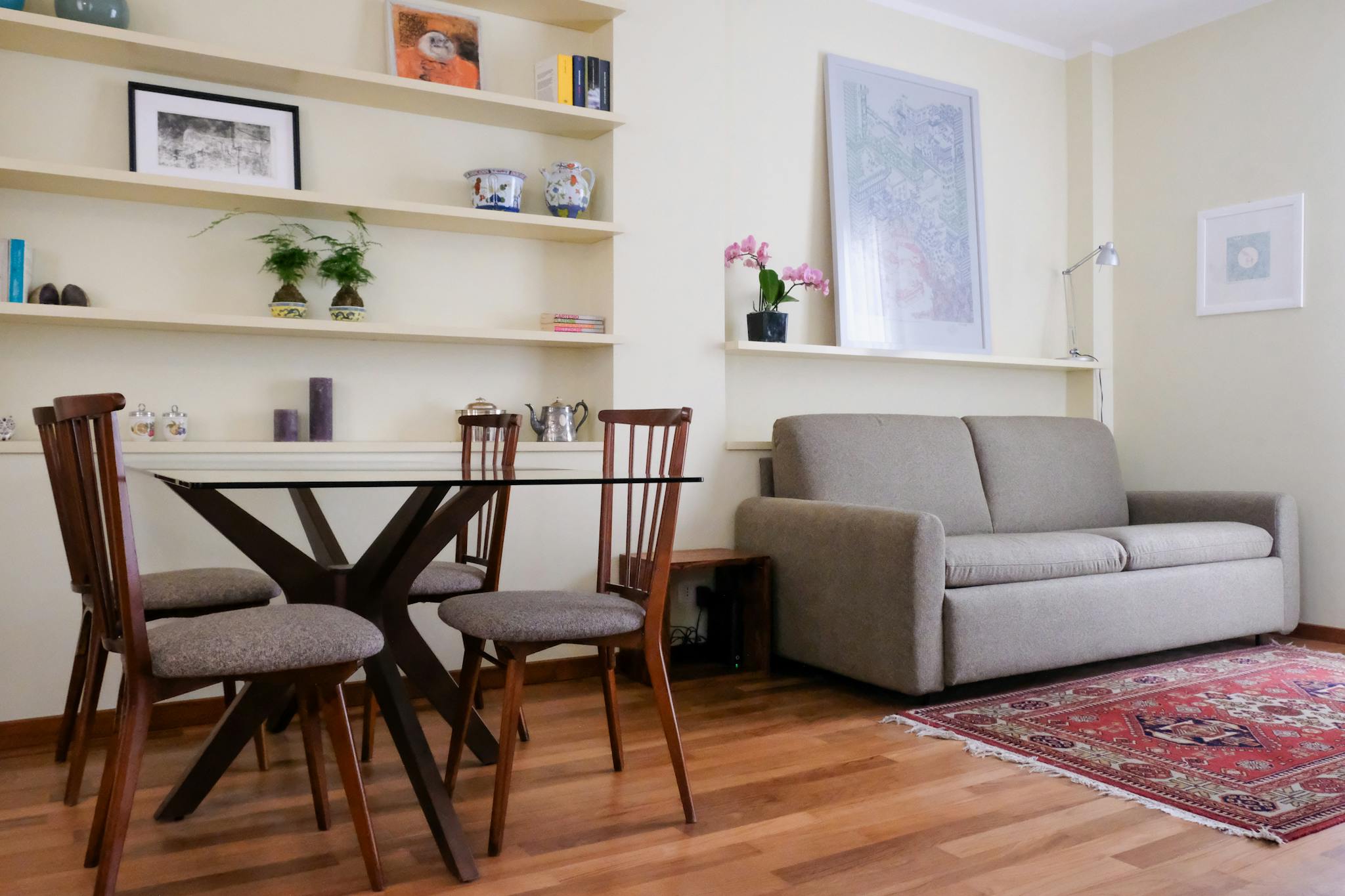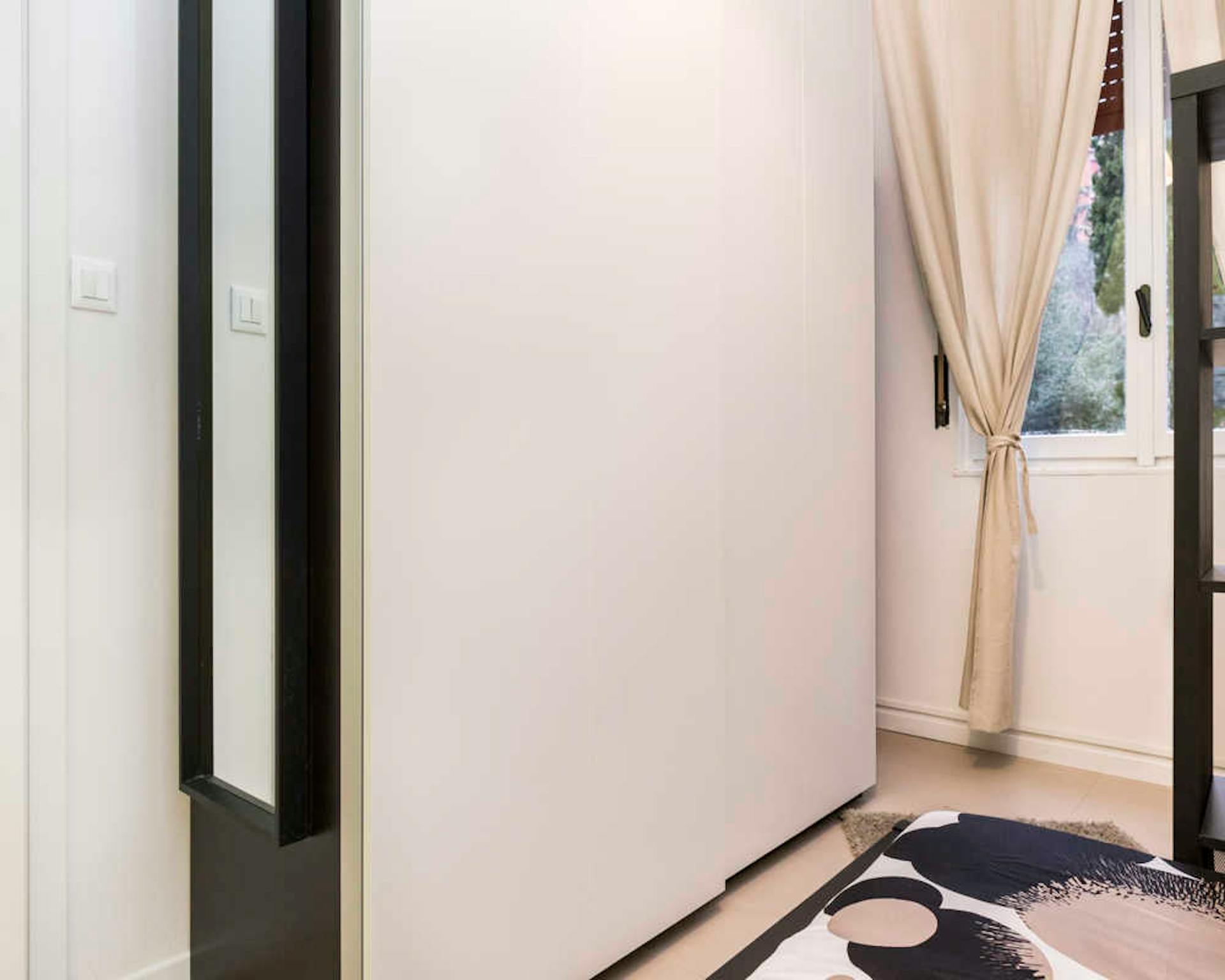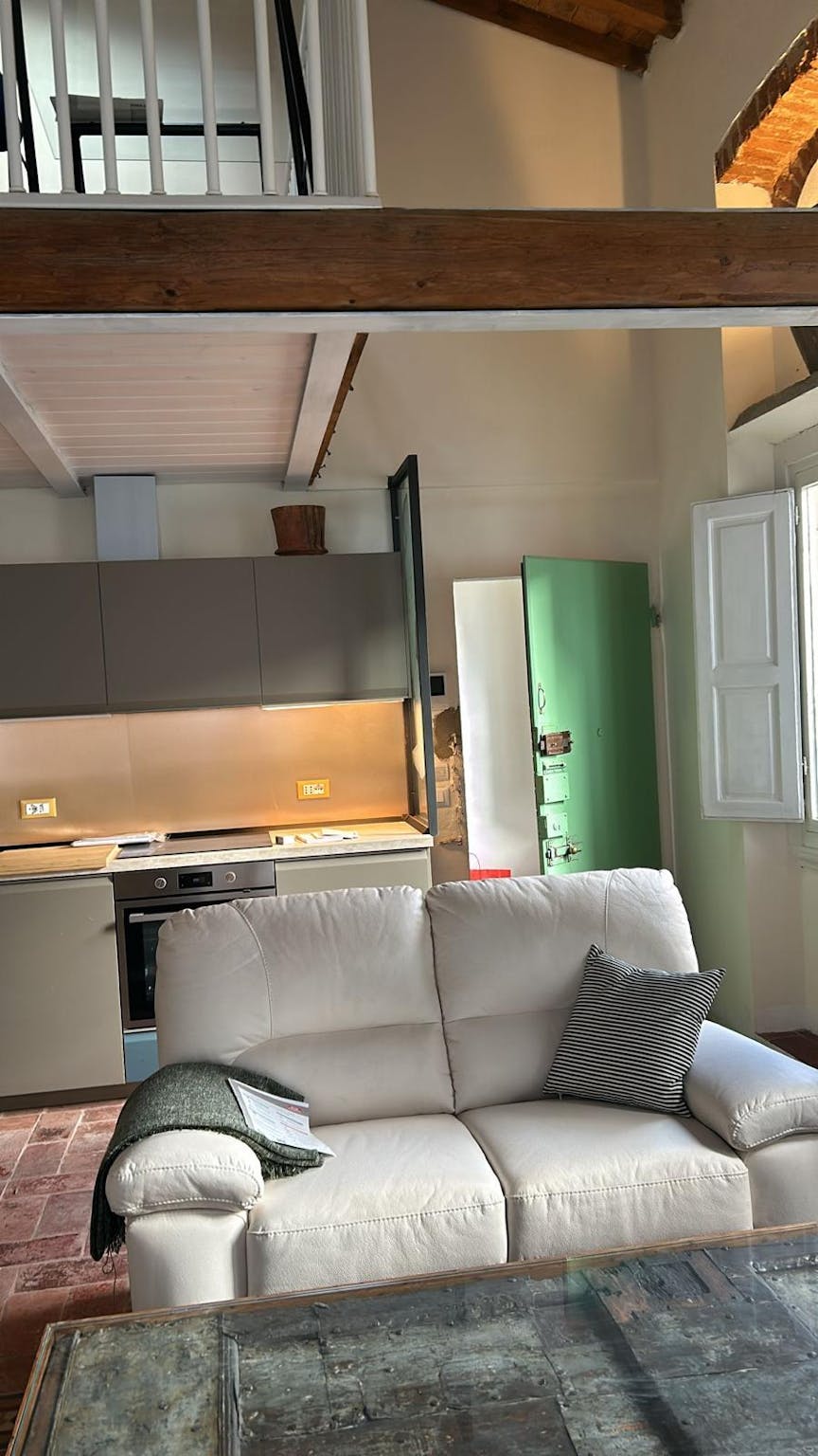 Quiet, bright, and peaceful apartment in the heart of Bologna’s historic center. Tastefully and thoughtfully furnished, with spacious and highly livable interiors. Numerous windows, filling the space with natural light. The bed and sofa were hand...