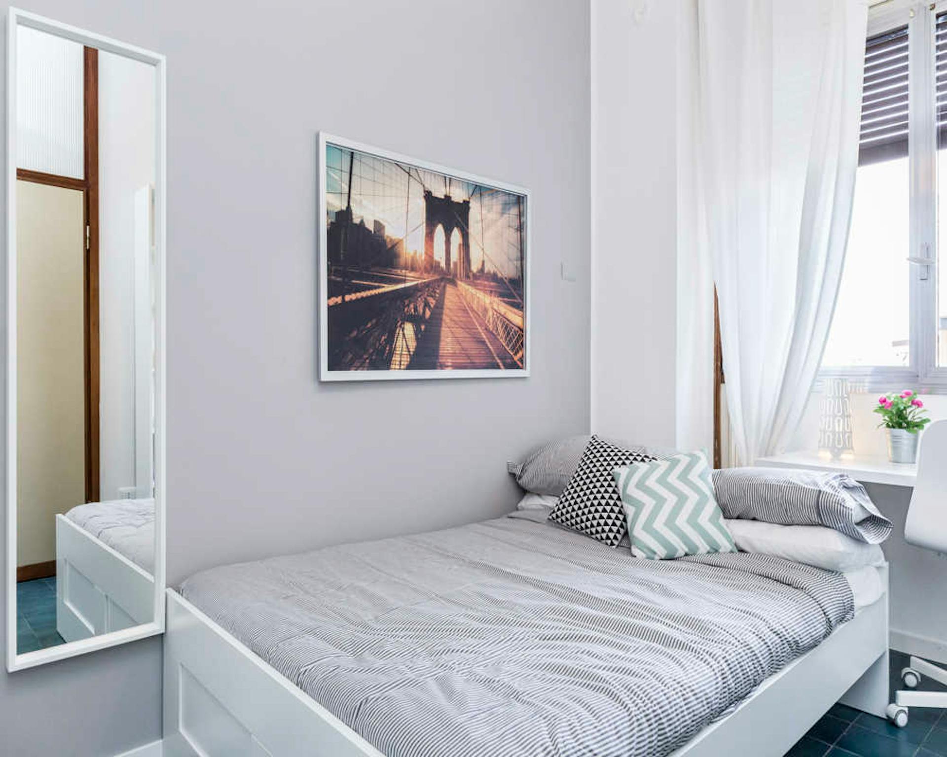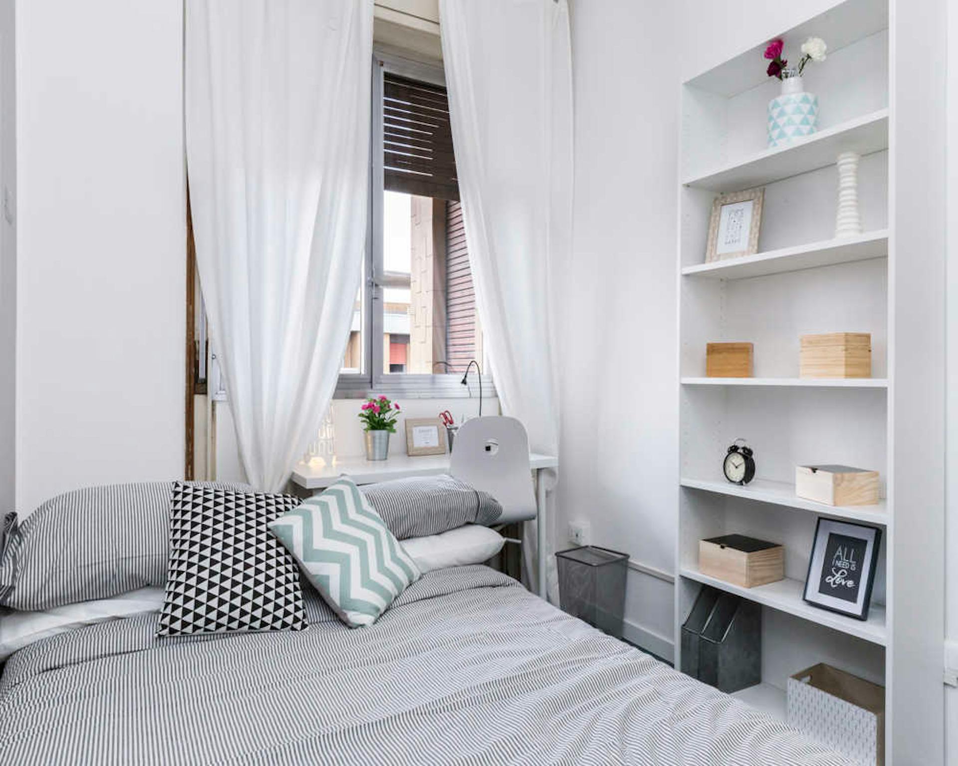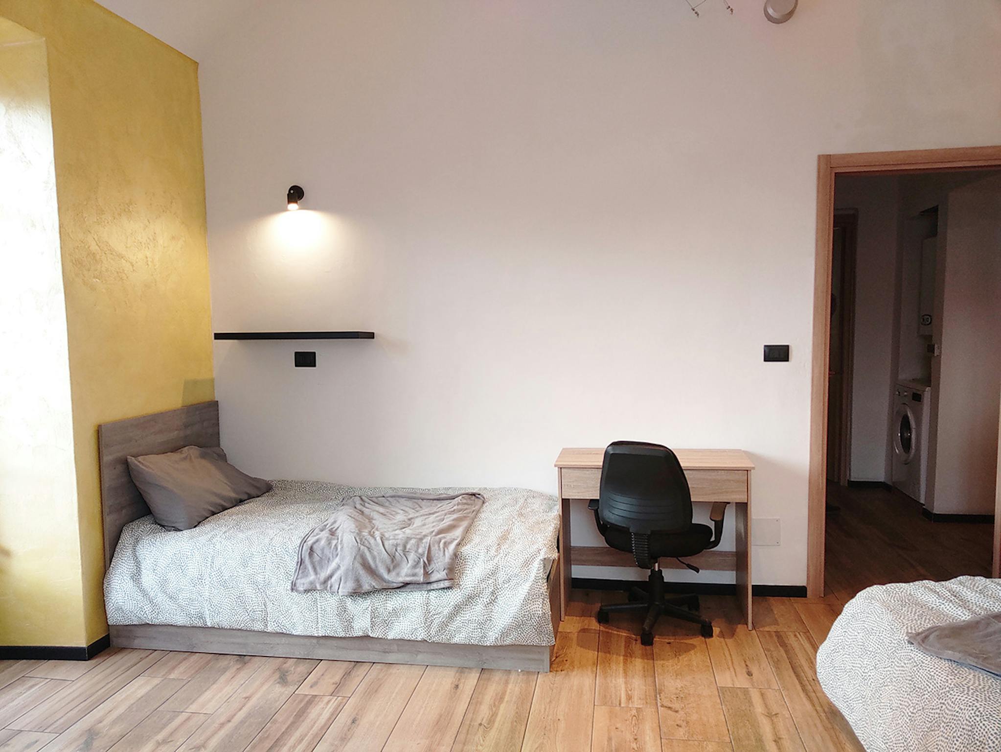 Bed place in a shared room with 2 beds, in a modern, comfortable, colorful and full of design house, with 3 rooms, with a big kitchen, dishwasher, oven, microwave, washing machine, a large living room with sofa bed, smart tv led, 2 bathrooms with ...