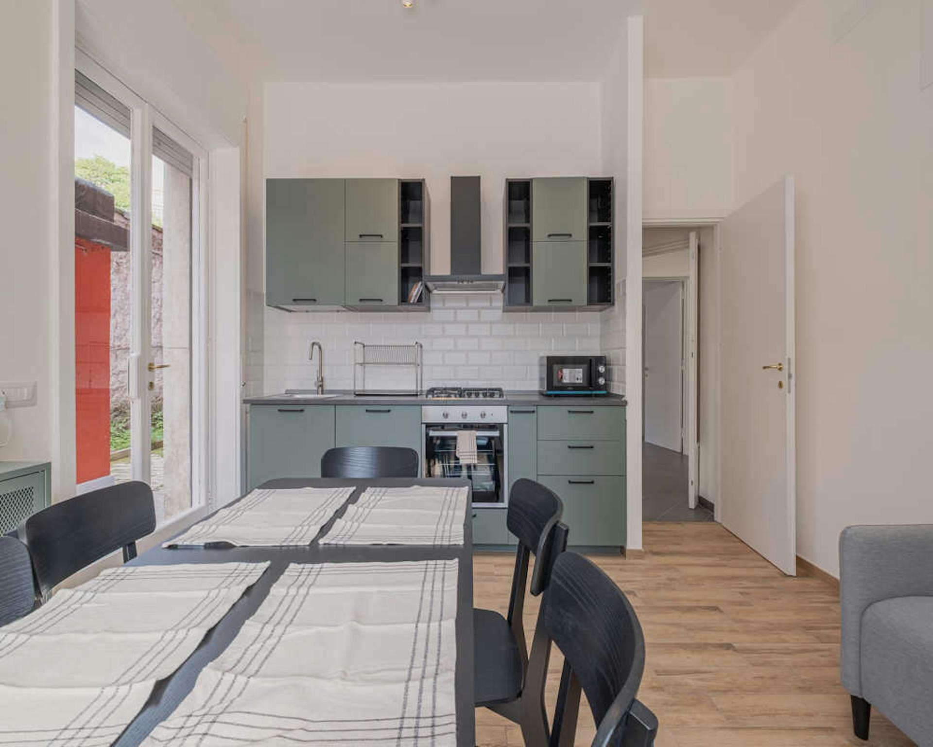 Ampio appartamento moderno ed elegante appena ristrutturato, in zona comoda e ben fornita, a comoda distanza dall'Ospedale Maggiore e dal centro di Bologna. Si compone di ingresso su zona giorno con divano, tavolo da pranzo, smart Tv e cucina comp...