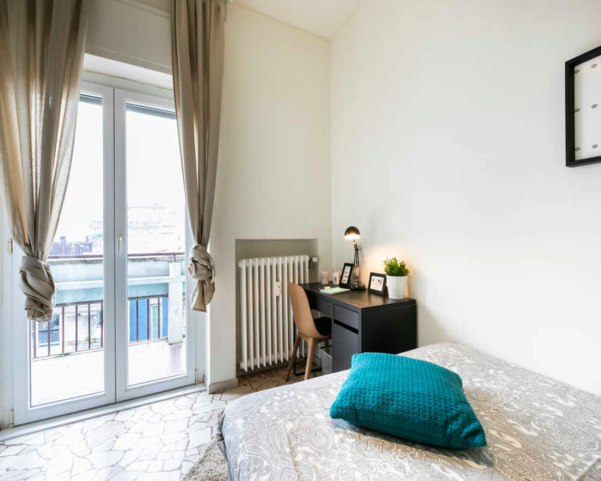Located in the pleasant *Parioli / Flaminio* district, this bright room offers comfortable living close to Rome’s green areas and city life. The room is a queen-size option with approximately 17.76 m2 and sits within a 120 m2 apartment that includ...