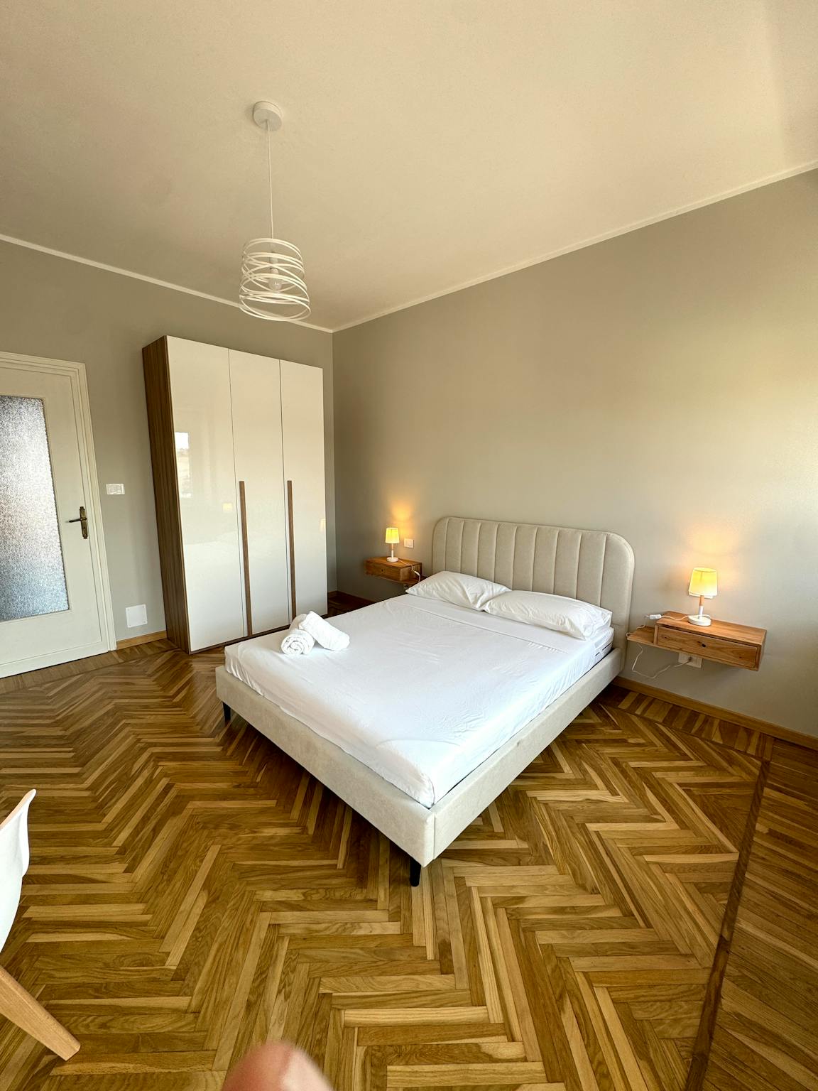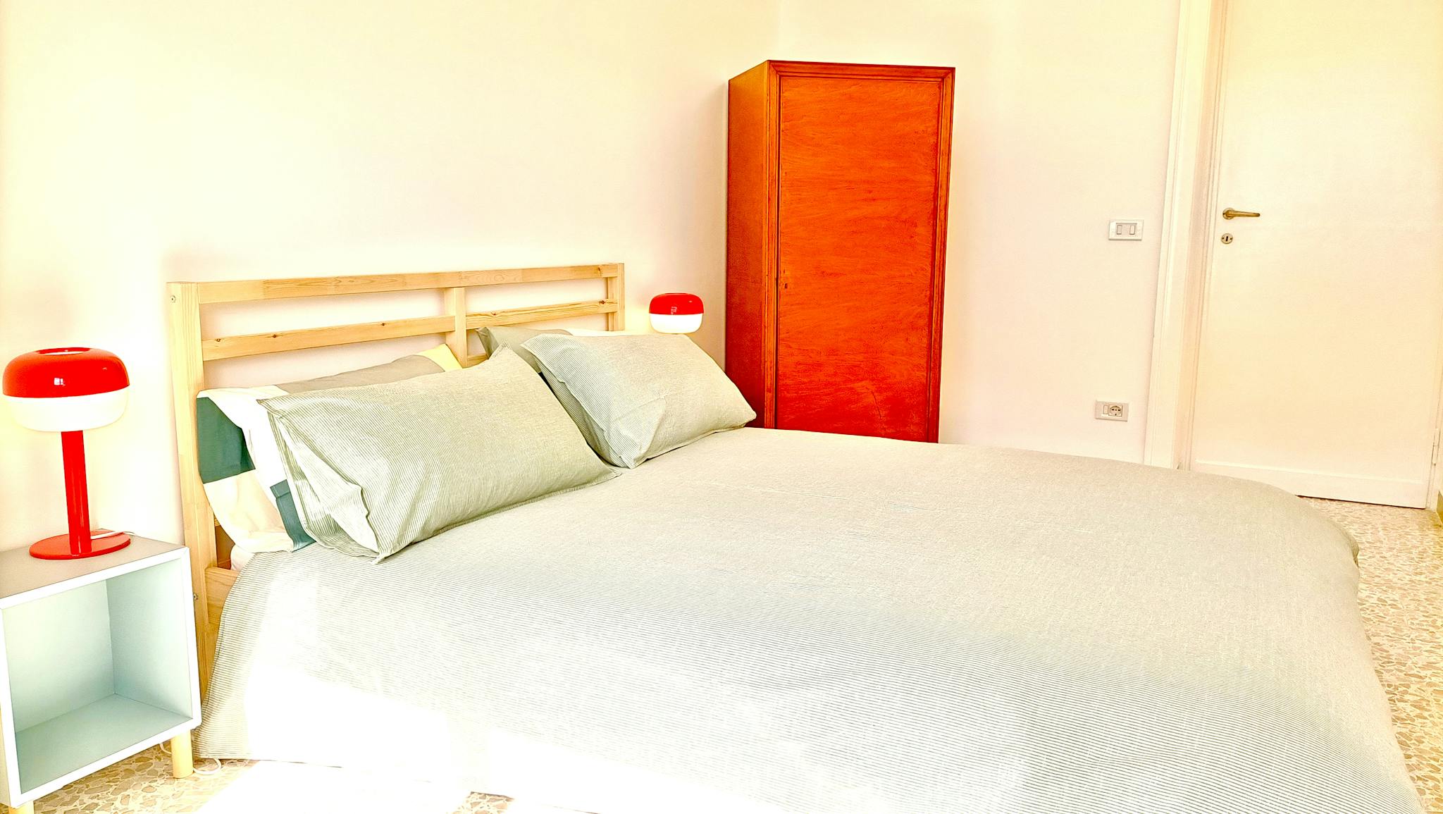 Camera doppia (volendo con due letti singoli; guardaroba con 3 ante, comodino, mobile con smart tv. Il costo si riferisce alla singola persona.