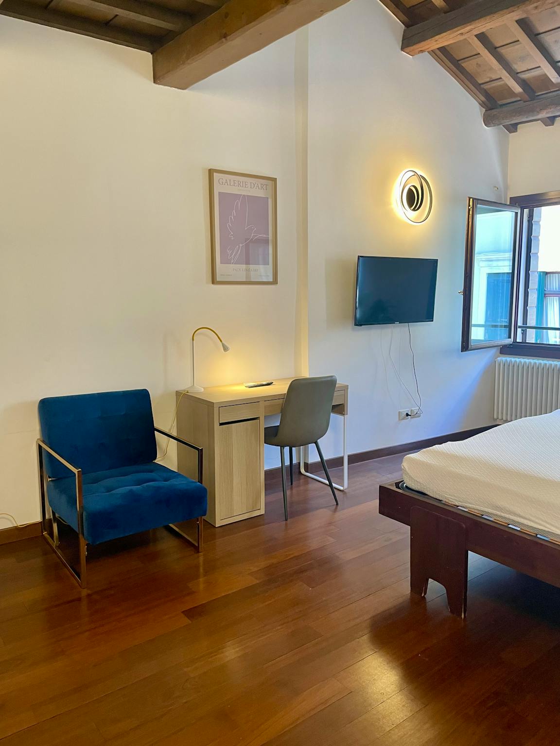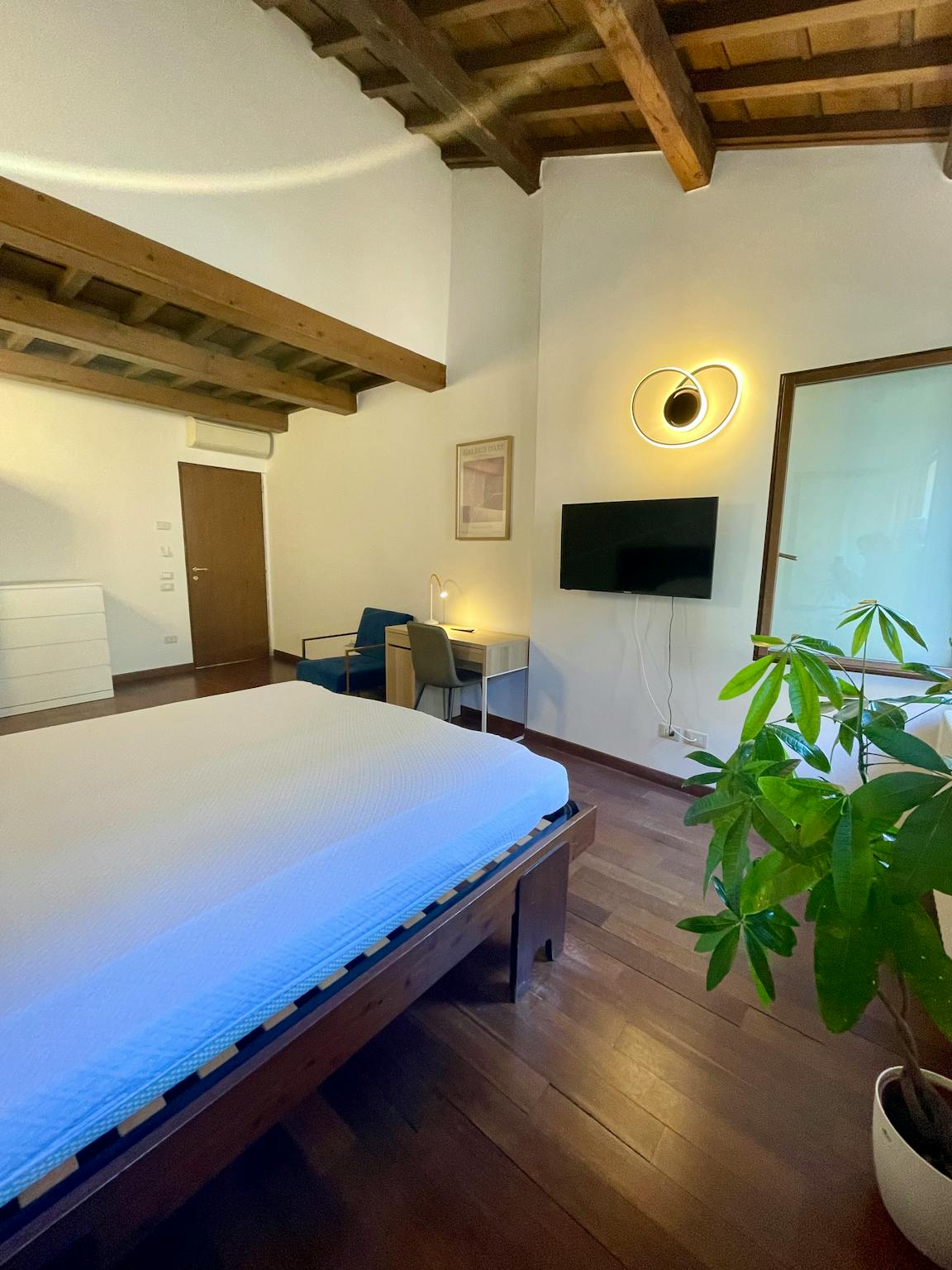 Residenza SubitoSanto 125 is a big house on three floor that has: - at ground floor: a storage for bikes; - at first floor: a large kitchen full equipped, big living room, a small bathroom and a beautiful terrace; - at second floor: this room, a ...
