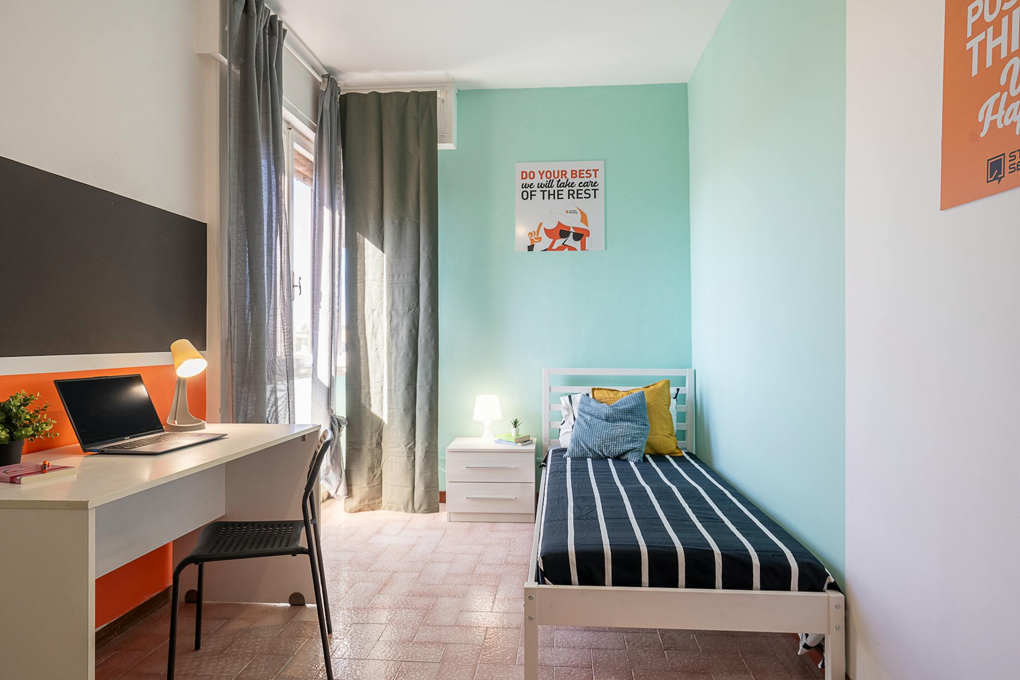 Single room in a shared apartment, composed by 3 bedrooms and 1 bathroom. Of about 14 sqm with a one and a half bed and a work station. With wifi, air conditioning, dishwasher, washing machine. Energy class: D, IPE 88.63 Kwh/Sqm year. Current te...