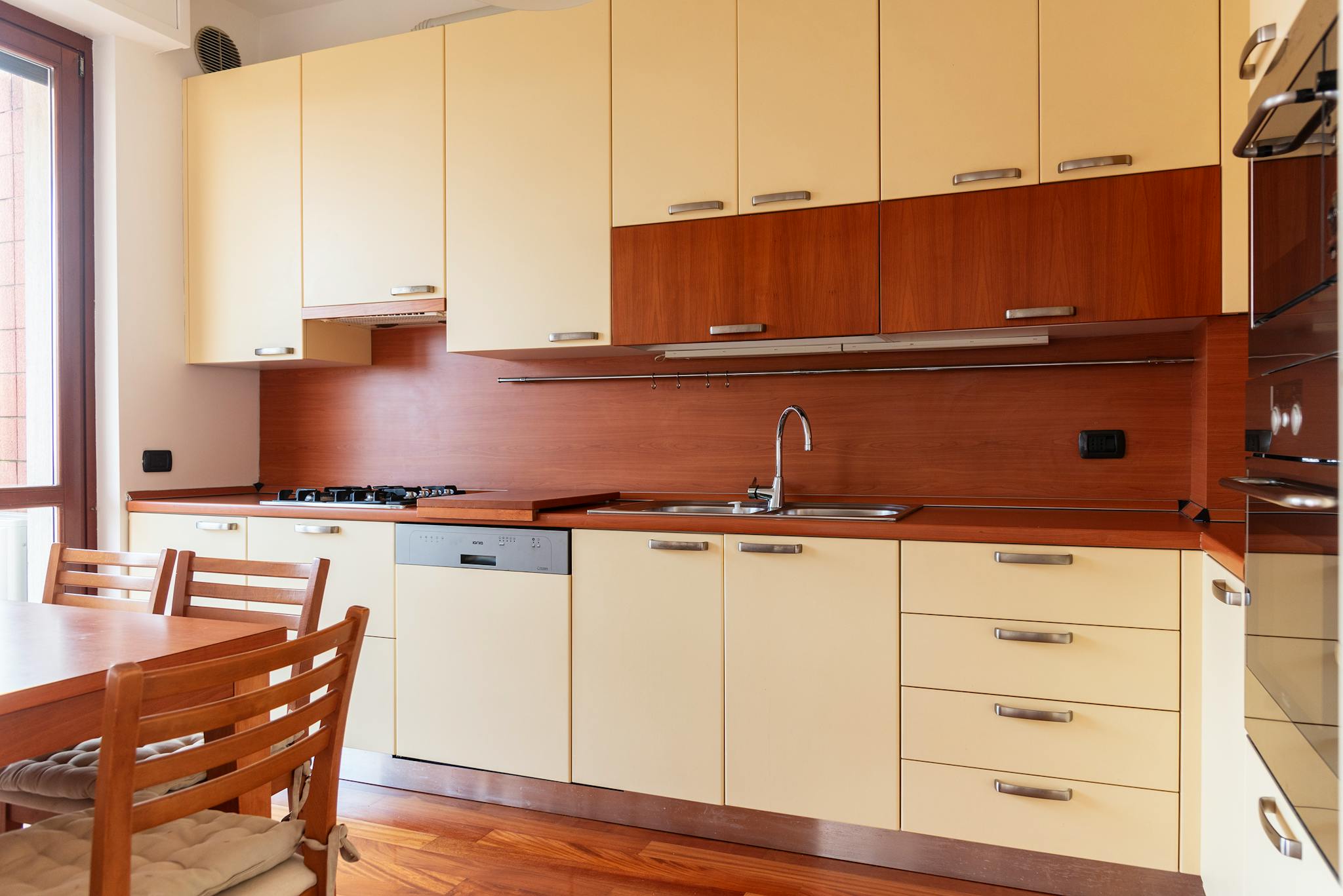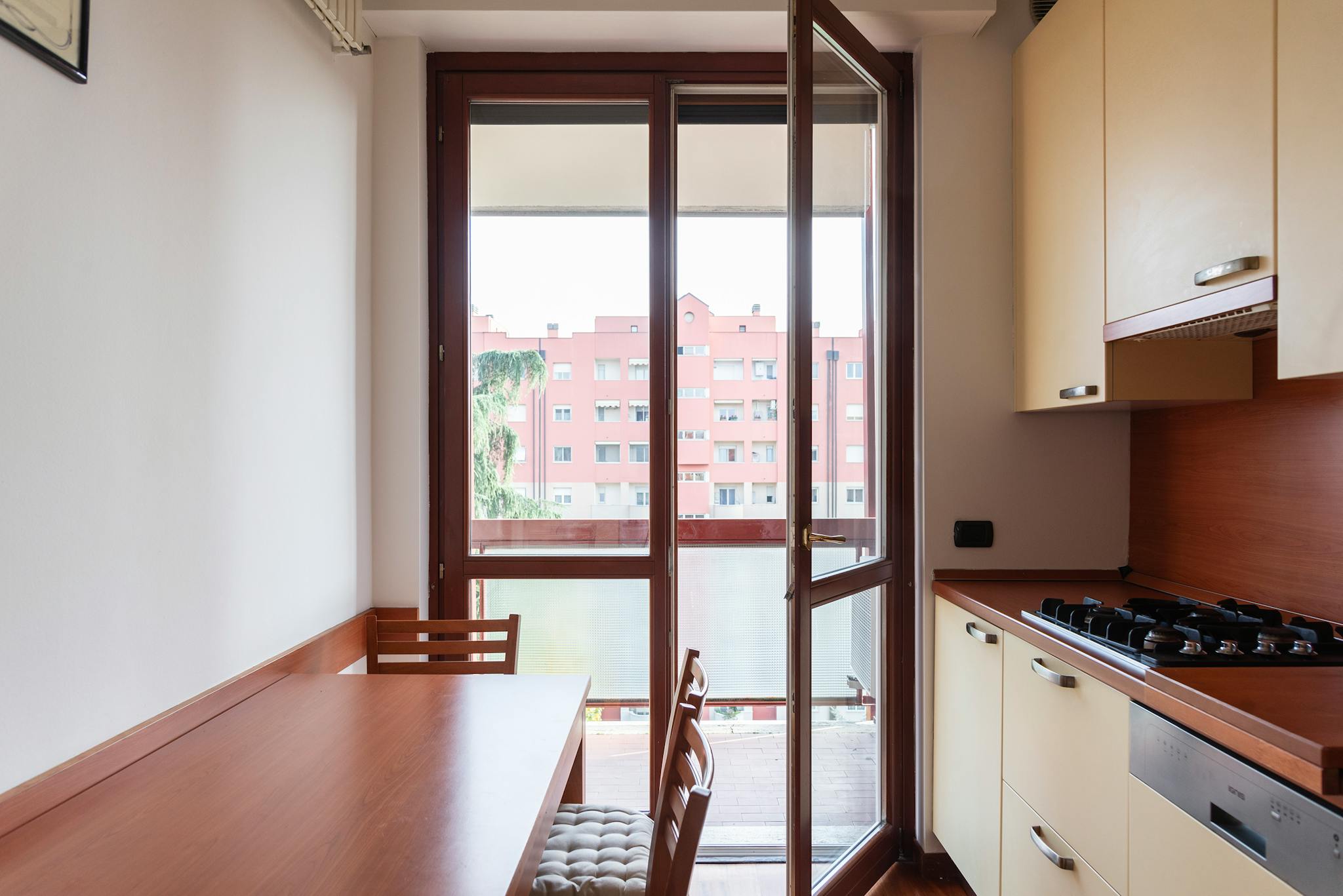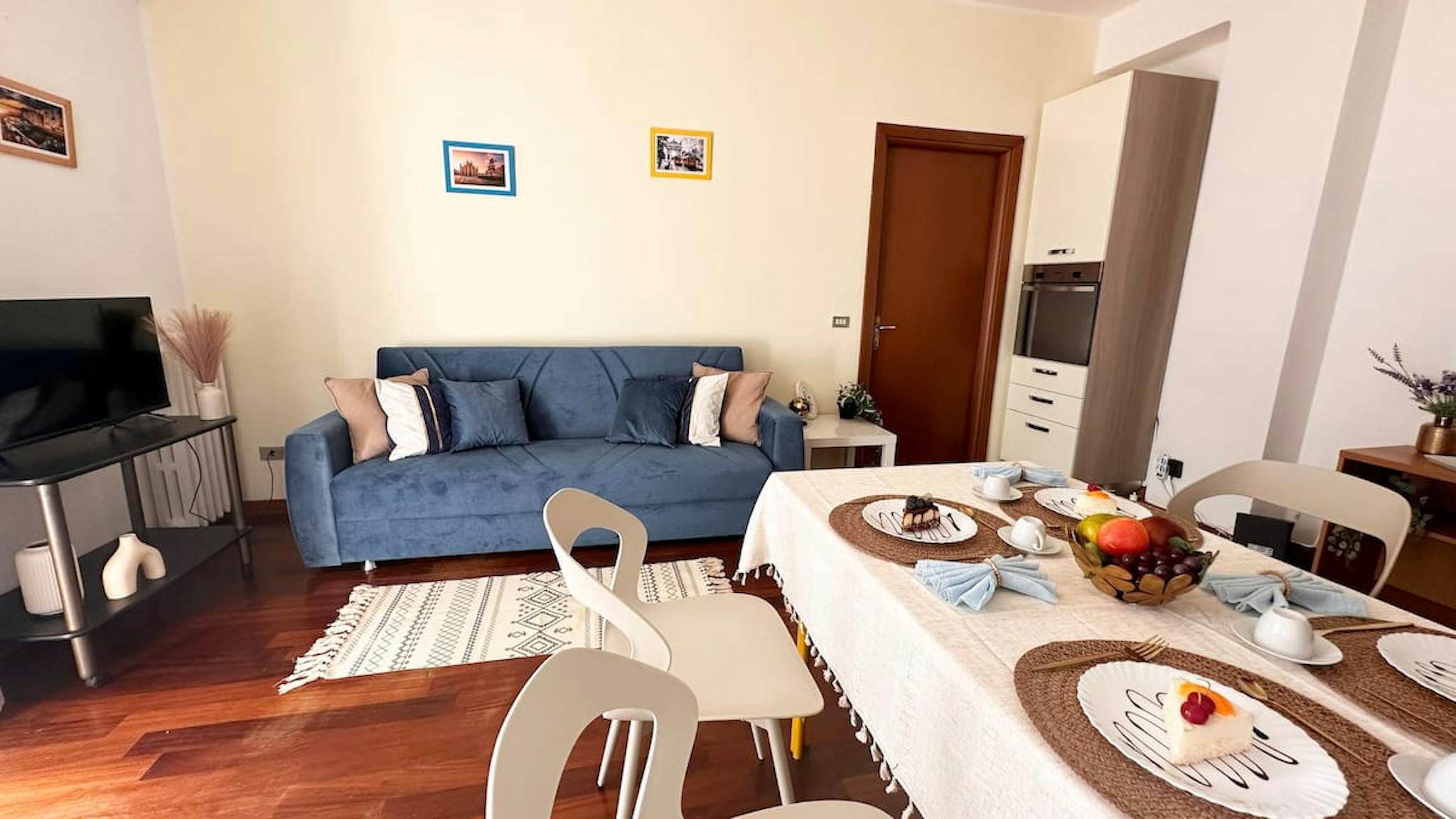 Bright three-room apartment in Via Cechov 21, perfect for exploring Milan thanks to its proximity to the red metro. The apartment offers a cozy living room with parquet, elegant sofa and access to the balcony. The fully equipped kitchen with dinin...