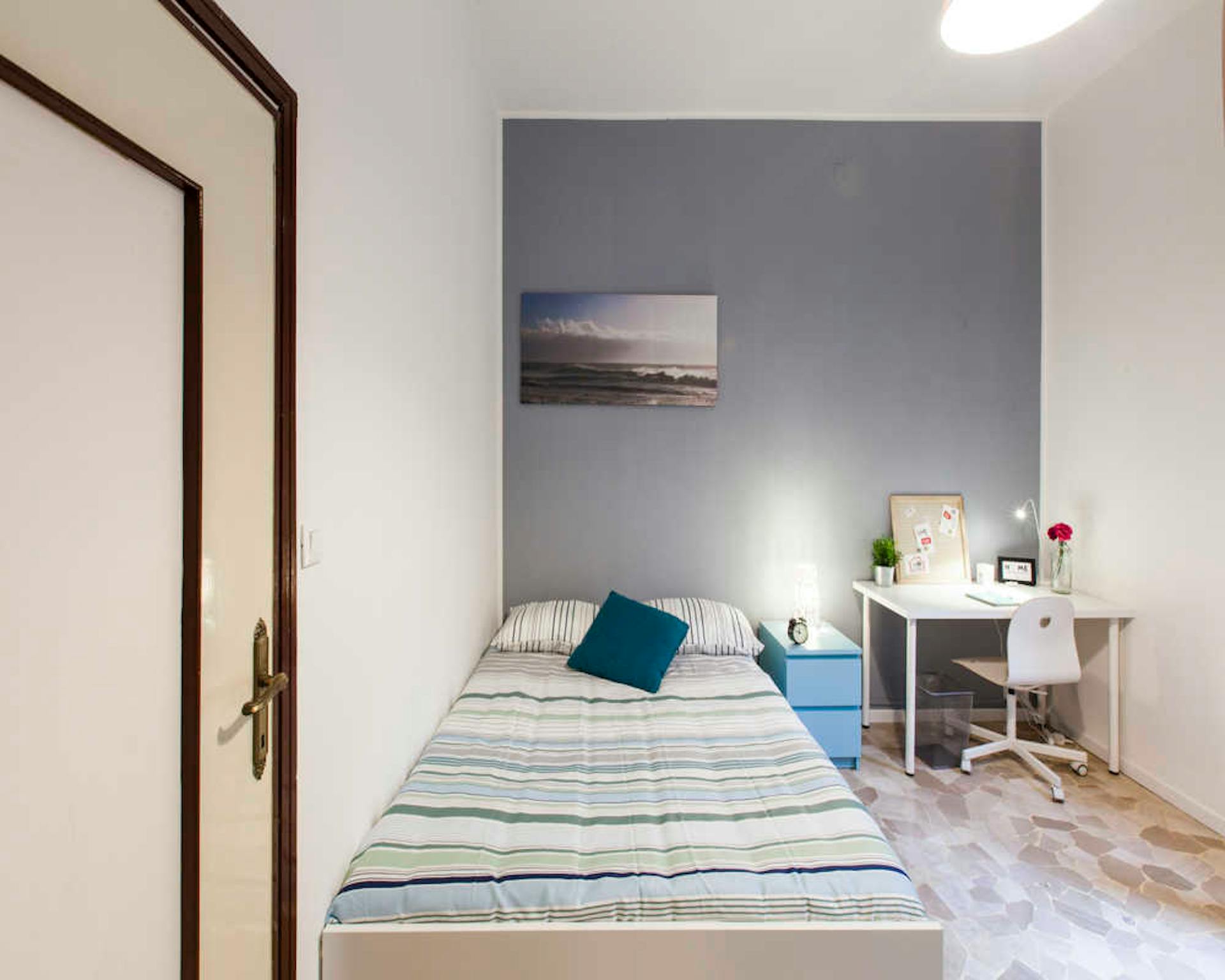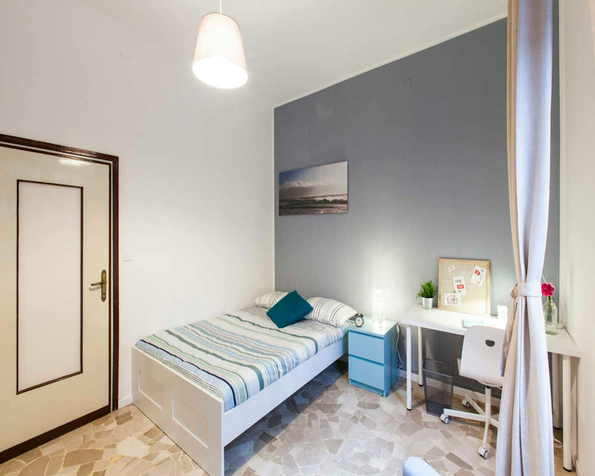 Located in *Lorenteggio / Bande Nere / Primaticcio / Bisceglie* , this bright room offers a comfortable base close to Milan's essentials and local services. The room is a single-room layout with a 17 m2 private space and access to a shared apartme...