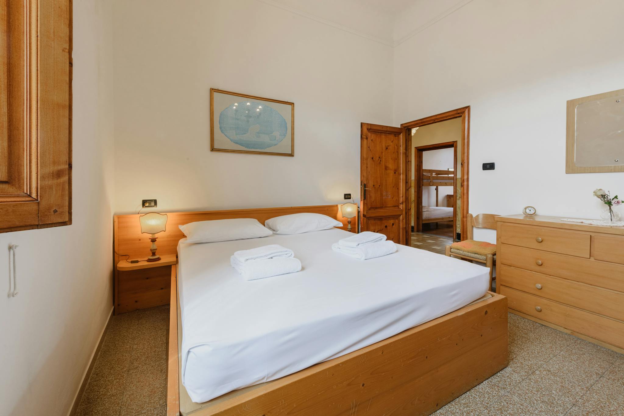 Appartamento nella campagna vicino Firenze zona Vicchio del Mugello , si compone di 2 camere matrimoniali, 1 camera doppia con due letti singoli 2 bagni e cucina attrezzata . Giardino condiviso con altri 4 appartamenti. Garage gratuito all'intern...
