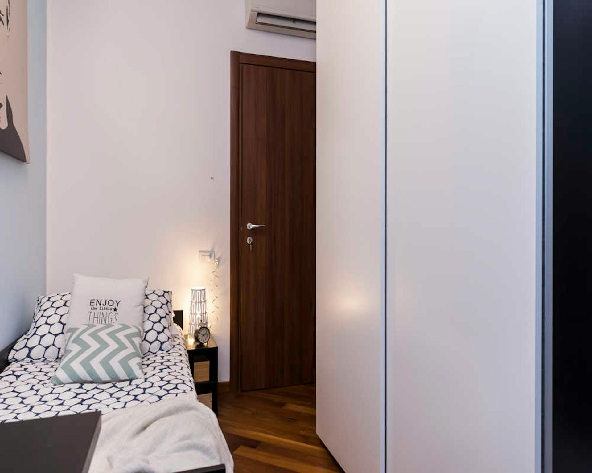 Single room in a shared apartment, composed by 3 bedrooms and 1 bathroom. Of about 18 sqm with a one and a half bed and a work station. With wifi, dishwasher, washing machine. Energy class: B, IPE 45.57 Kwh/Sqm year. Current tenants: 1: 24, Fema...