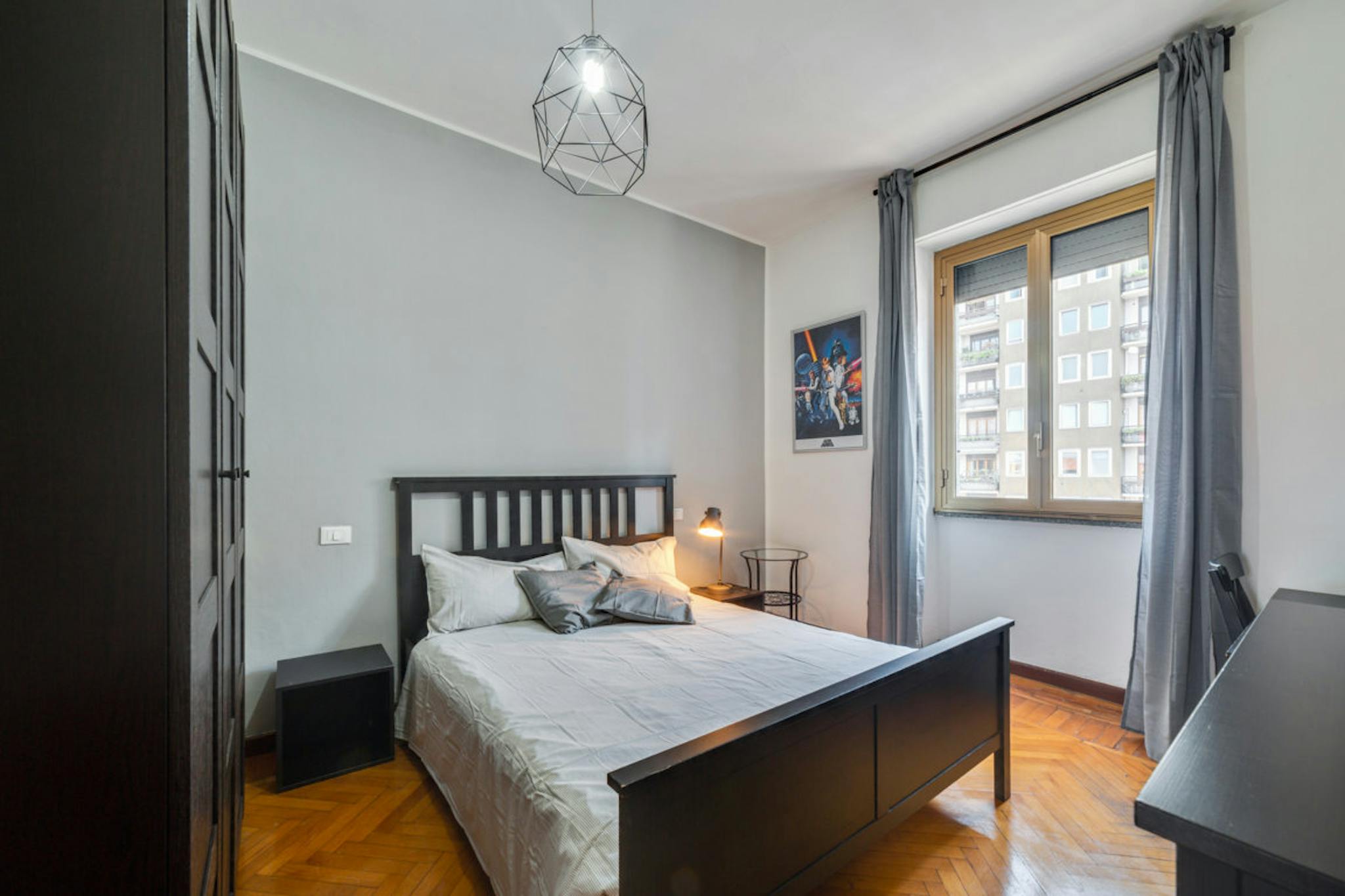 Located in the lively *Centrale / Garibaldi / Isola* area, this bright room offers easy access to transport and city life. This queen size bed room measures 14 m2 and features balcony access and access to shared bathrooms. The apartment includes W...