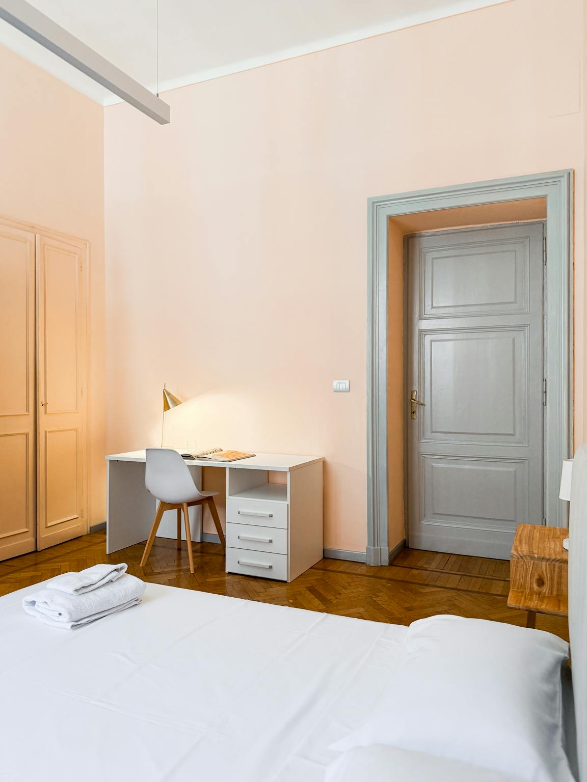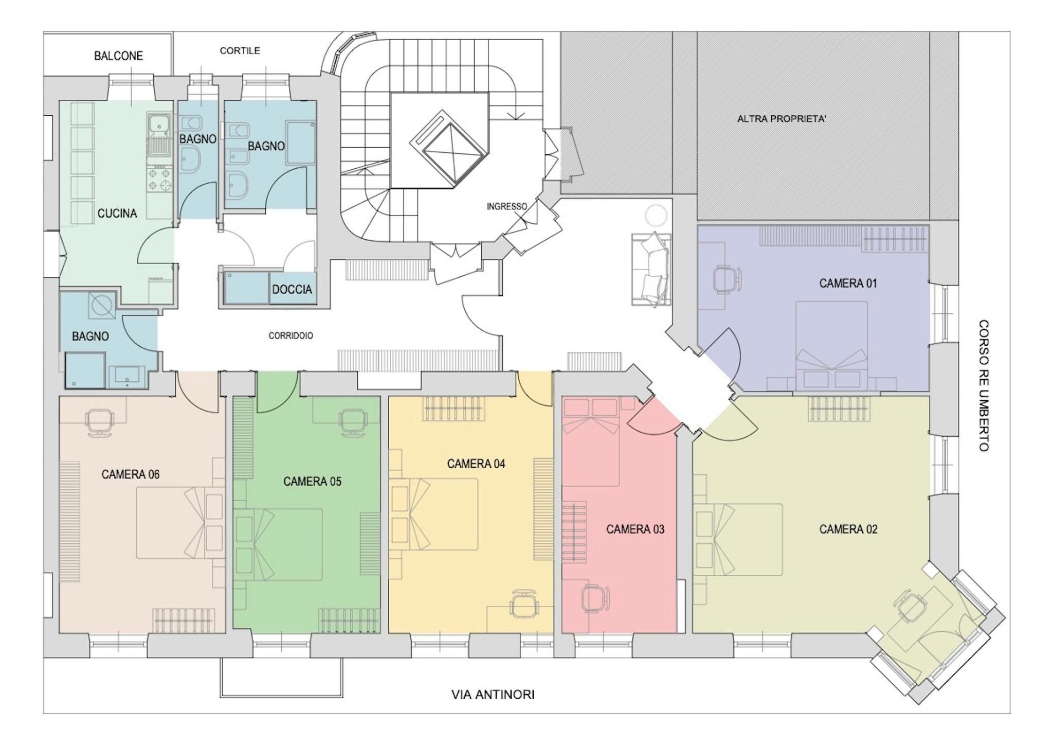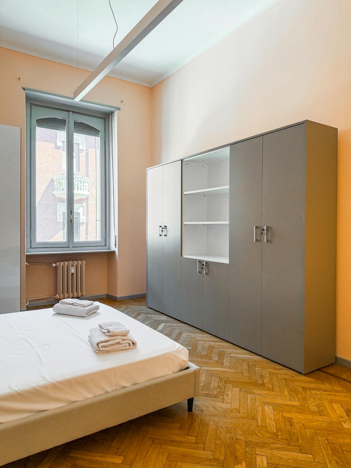 ITA Appartamento ristrutturato situato a 5 minuti a piedi da Piazza Castello, completo di letti, scrivania, sedie, luci e armadio. Cucina in comune attrezzata con pentole, piatti, bicchieri, posate, forno, piano cottura a induzione. Bagno con doc...
