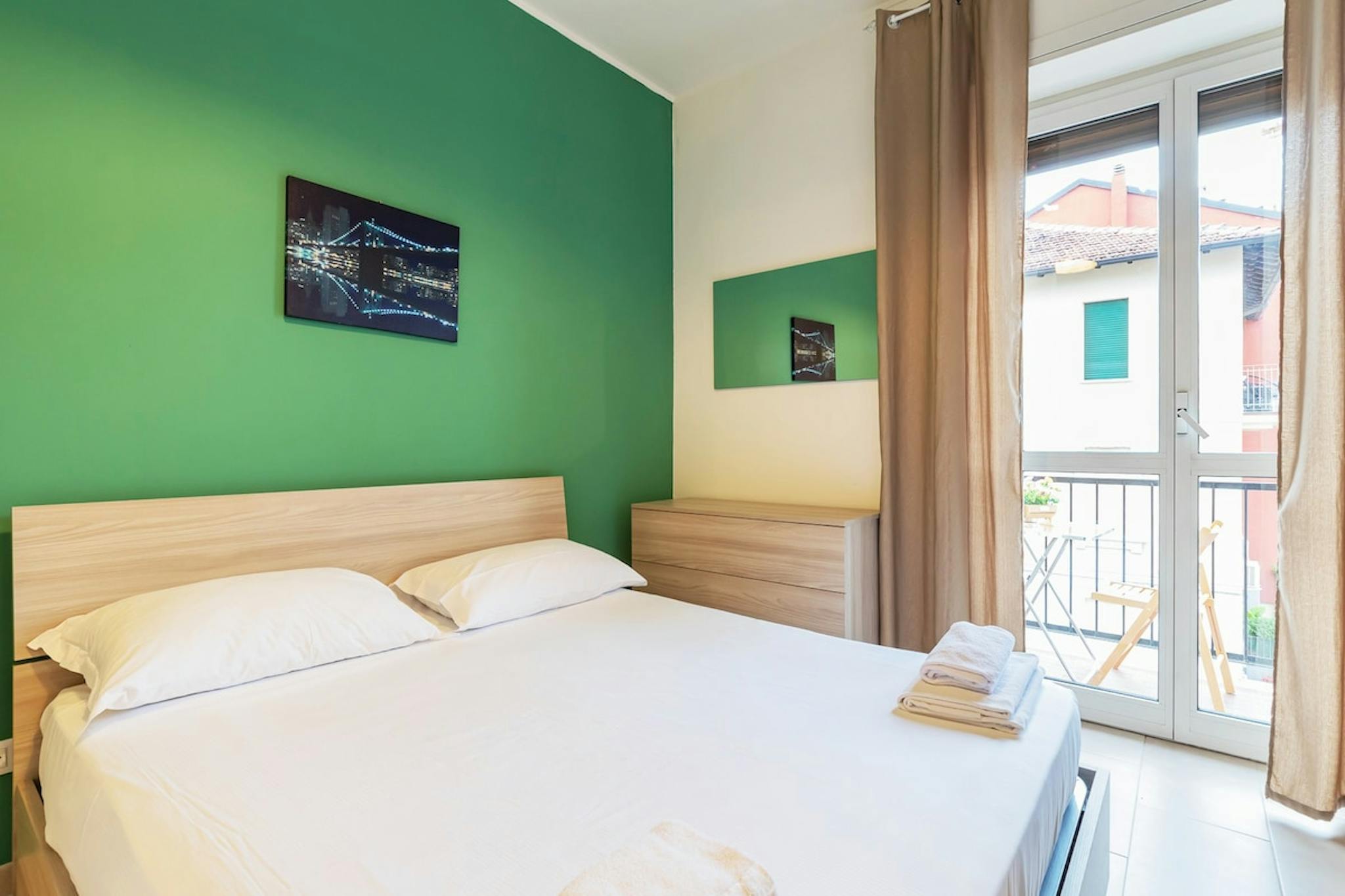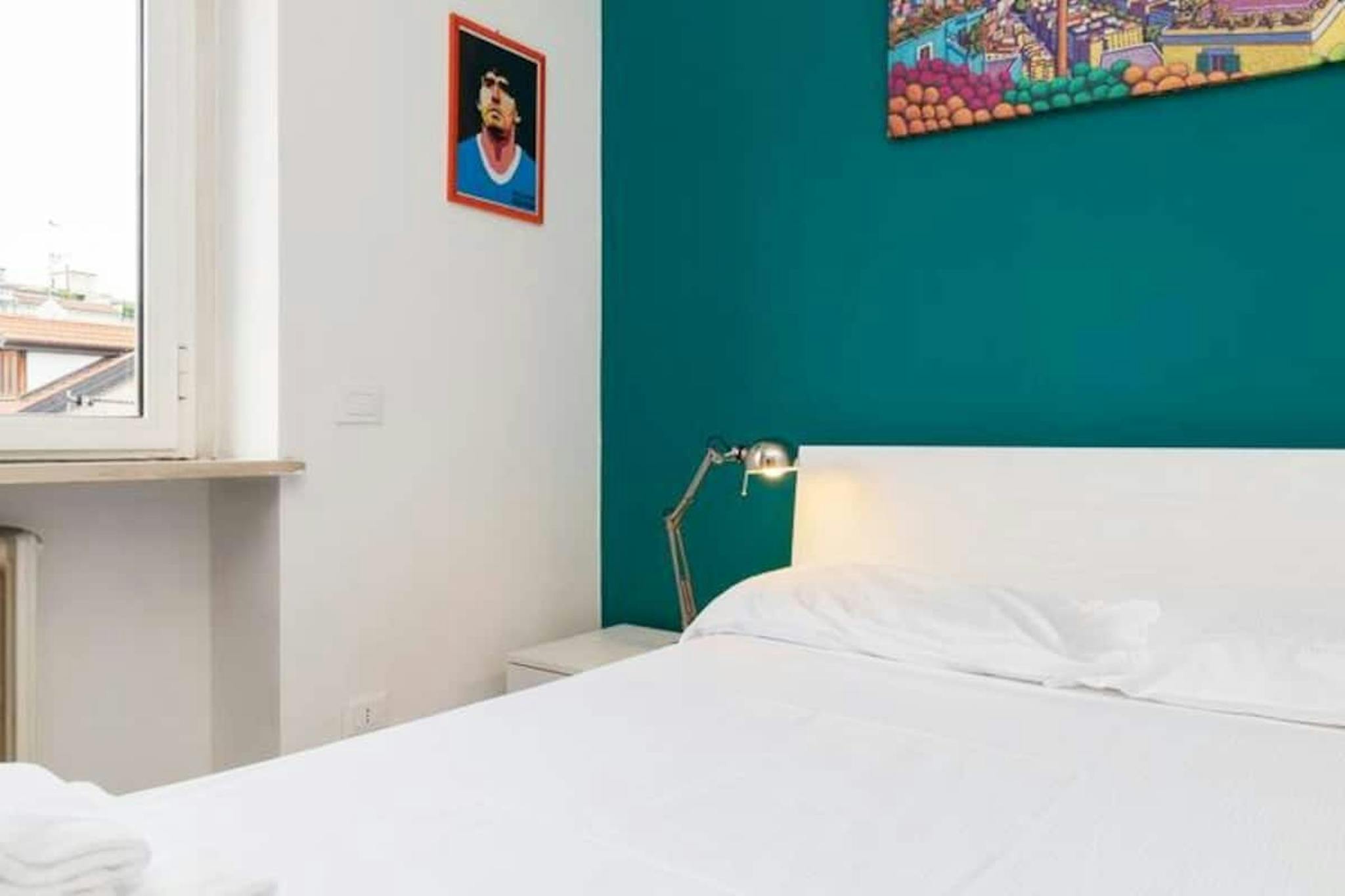 Luminosa camera singola totalmente arredata e con letto singolo. L'appartamento si trova in zona San Siro, vicino alla metro M5 ed è composto da altre quattro stanze, cucina abitabile e due bagni. È dotato di TV LED, WI-FI, Lavastoviglie, Lavatrice.