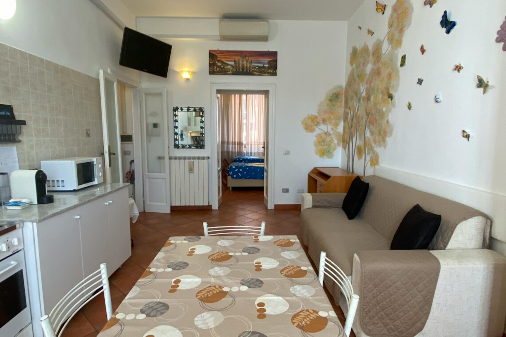 Luxurious apartment in the northwest area of Milan. Furnished with all comforts, it is perfect for hosting 3 people thanks to the bedroom with double bed and the sofa bed in the living room. The spaces are organized and furnished to offer a plea...
