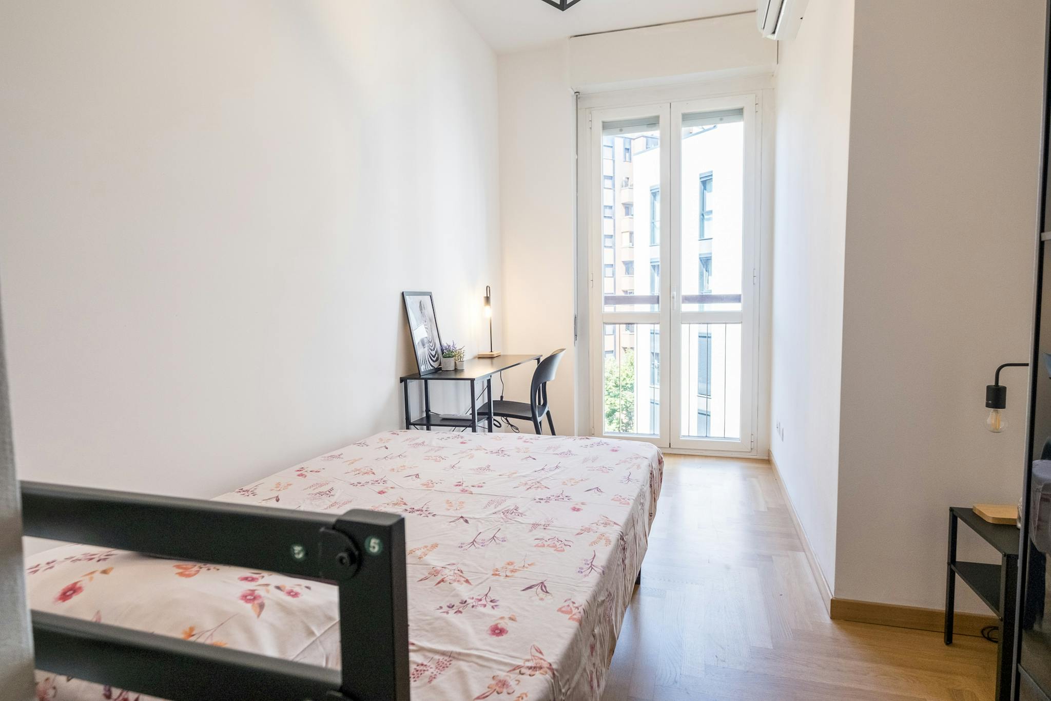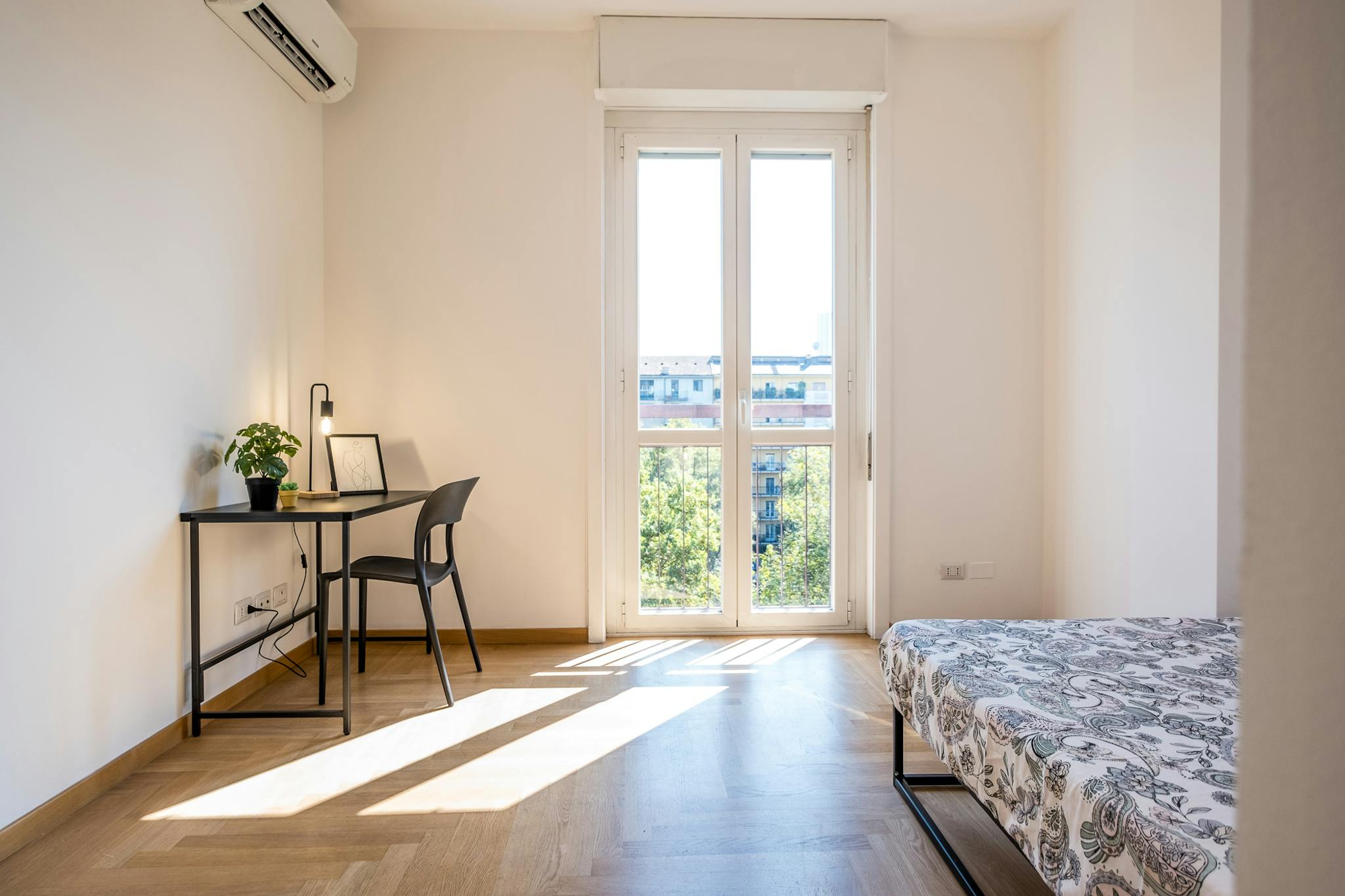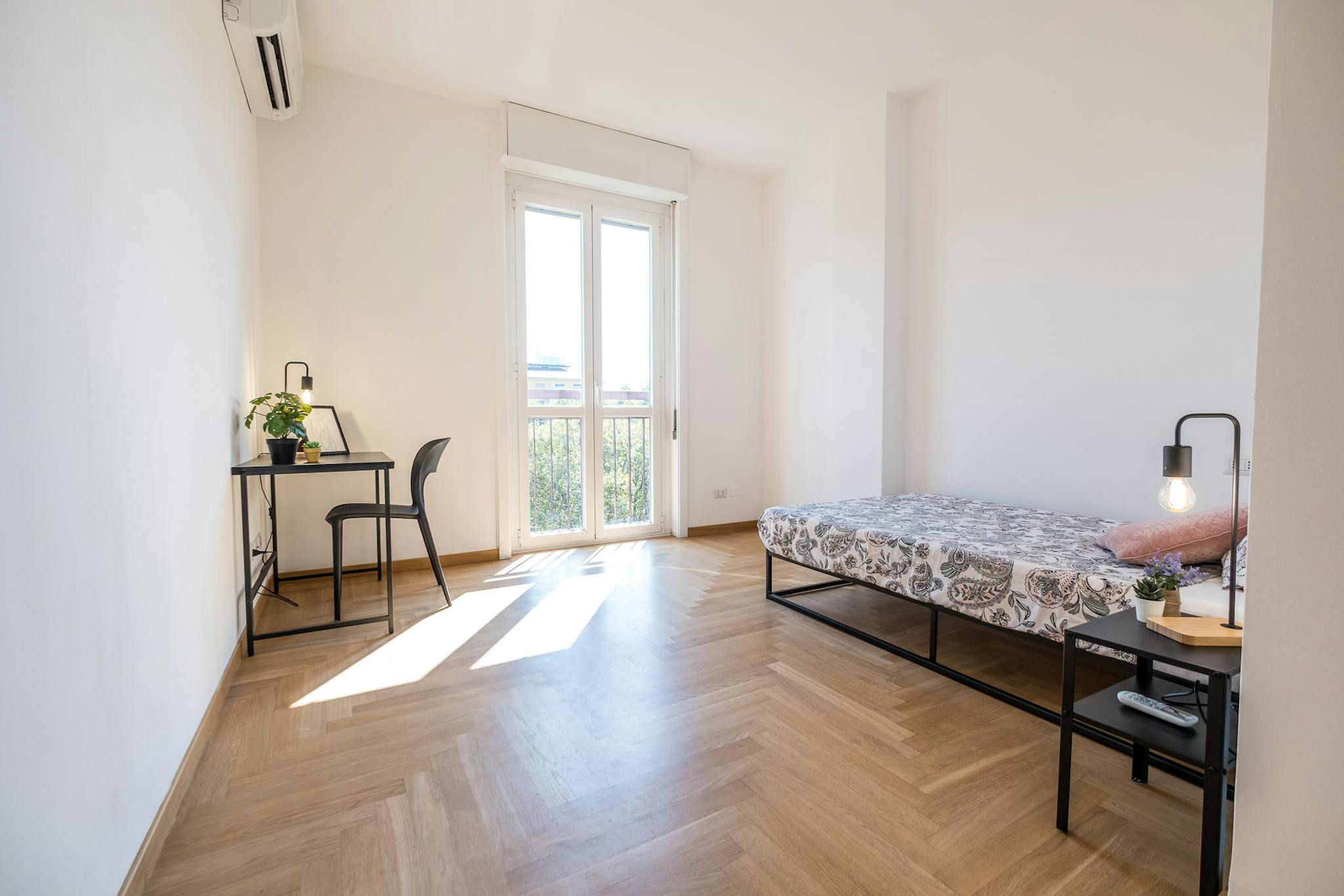 Single room in a shared apartment, composed by 9 bedrooms and 5 bathrooms. Of about 15 sqm with a one and a half bed and a work station. With wifi, air conditioning, dishwasher, washing machine. Energy class: B, IPE 47.32 Kwh/Sqm year. Current t...