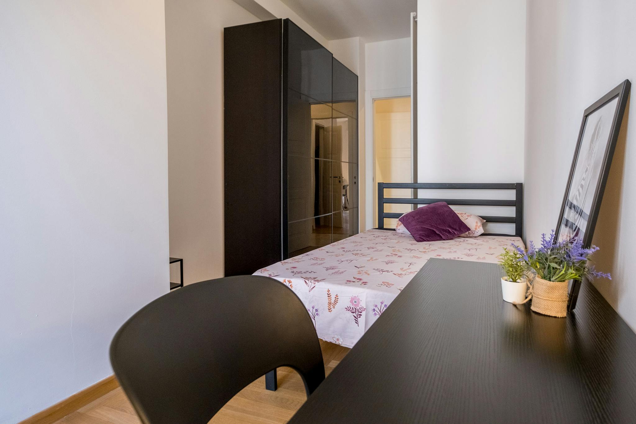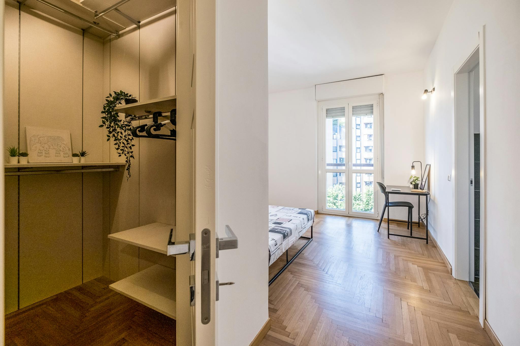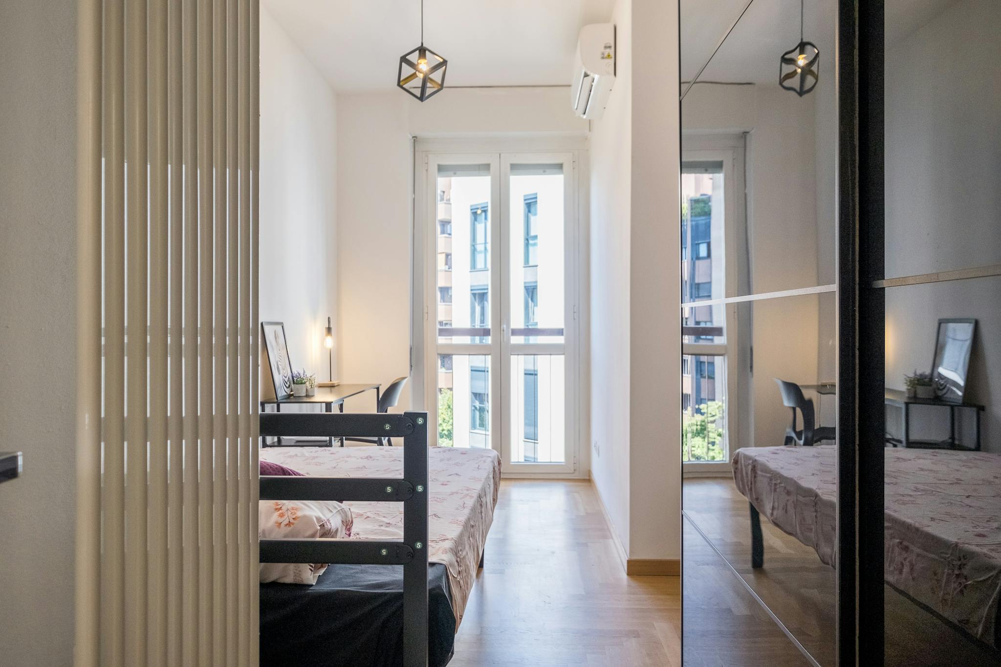 Single room in a shared apartment, composed by 9 bedrooms and 5 bathrooms. Of about 15 sqm with a one and a half bed and a work station. With wifi, air conditioning, dishwasher, washing machine. Energy class: B, IPE 47.32 Kwh/Sqm year. Current t...