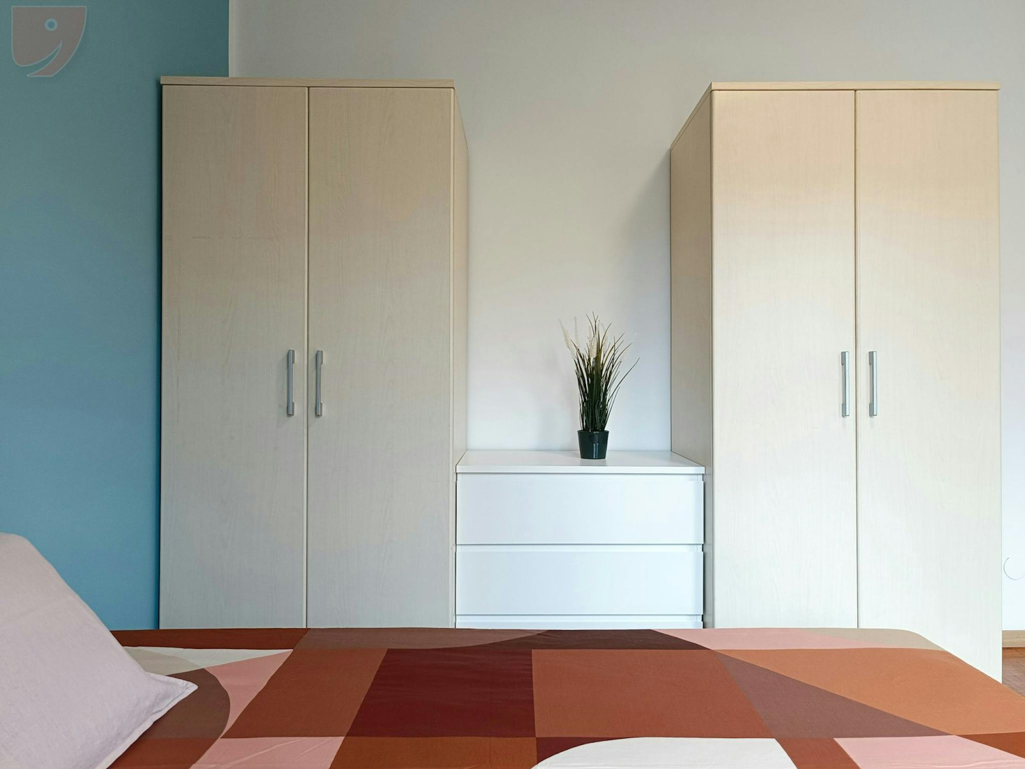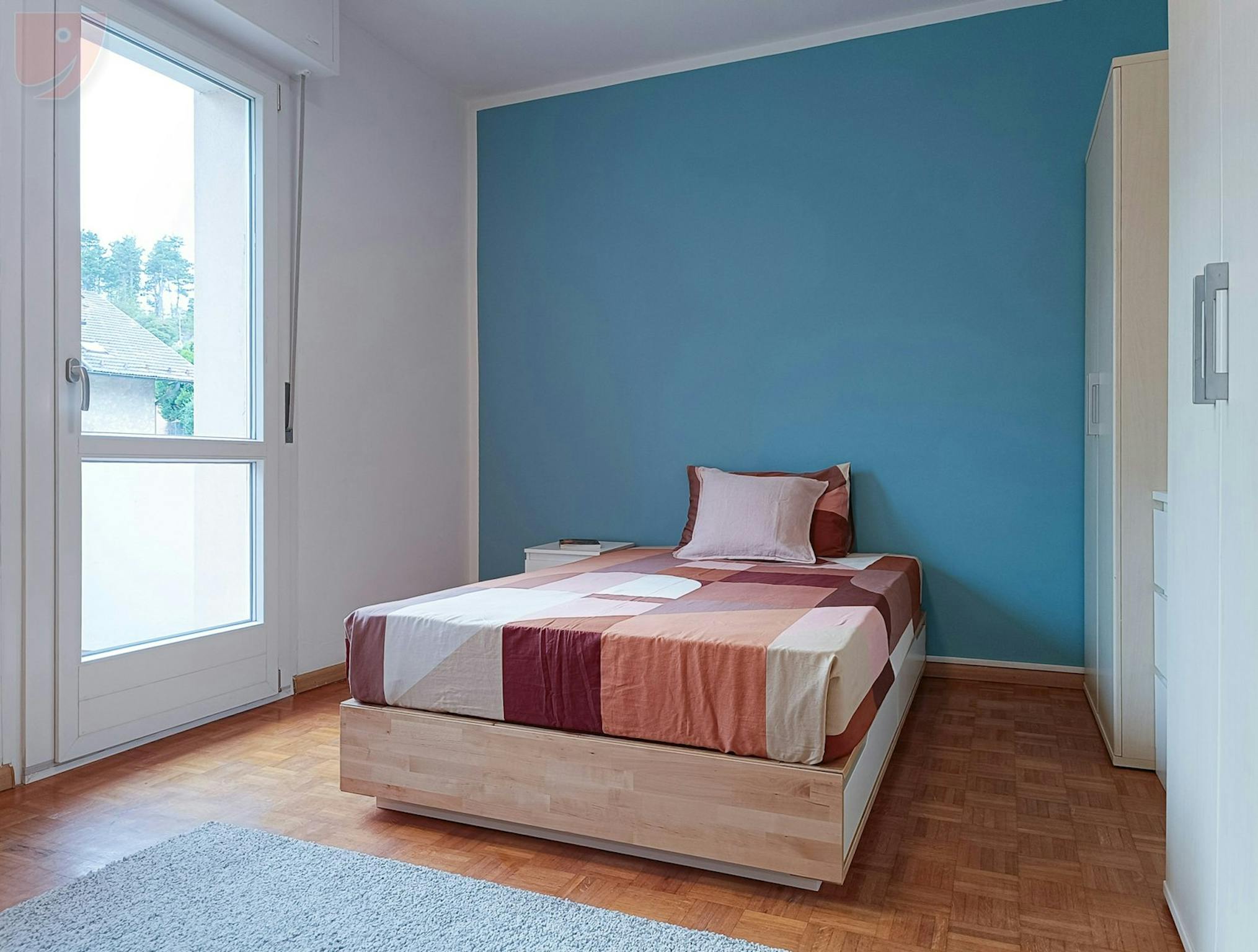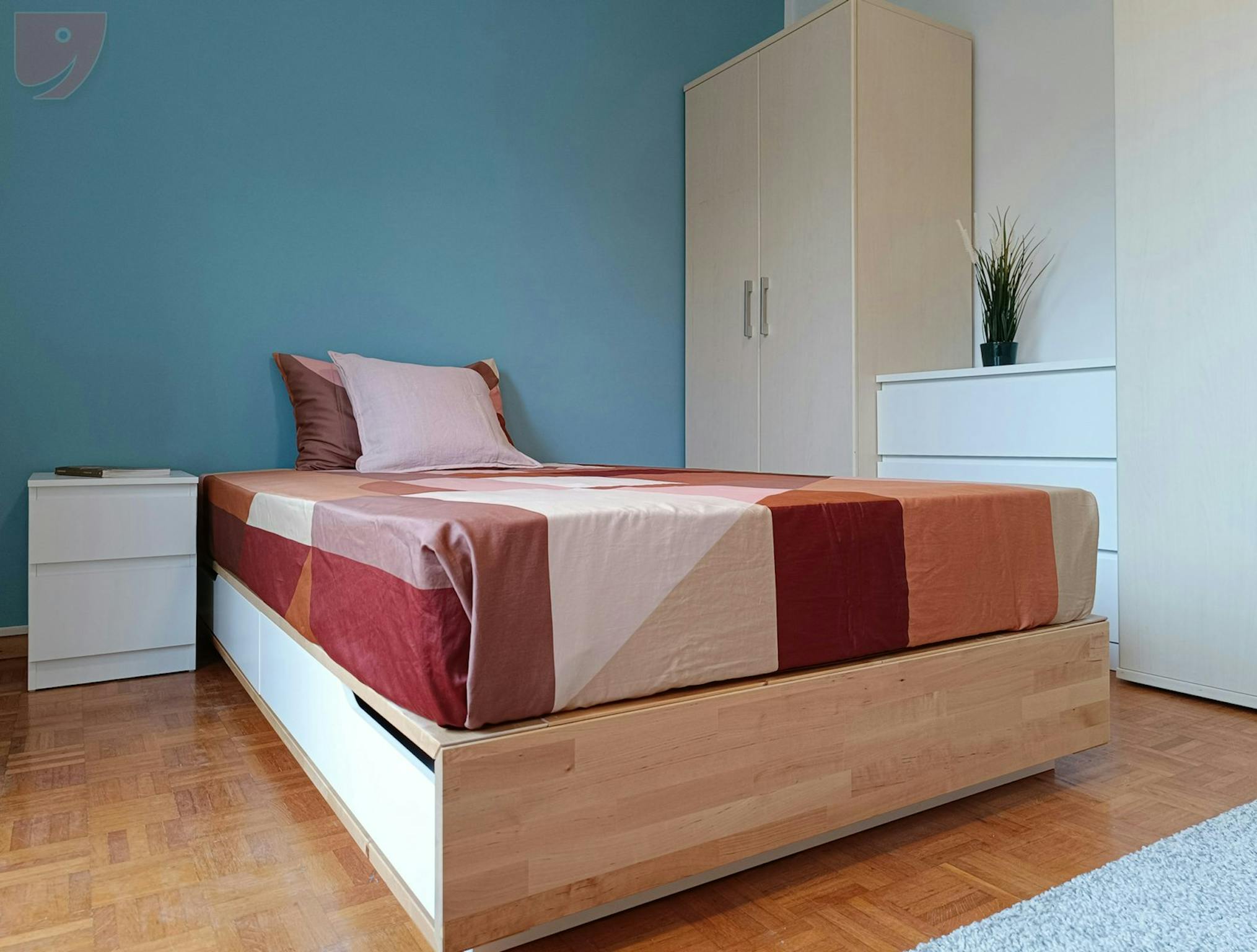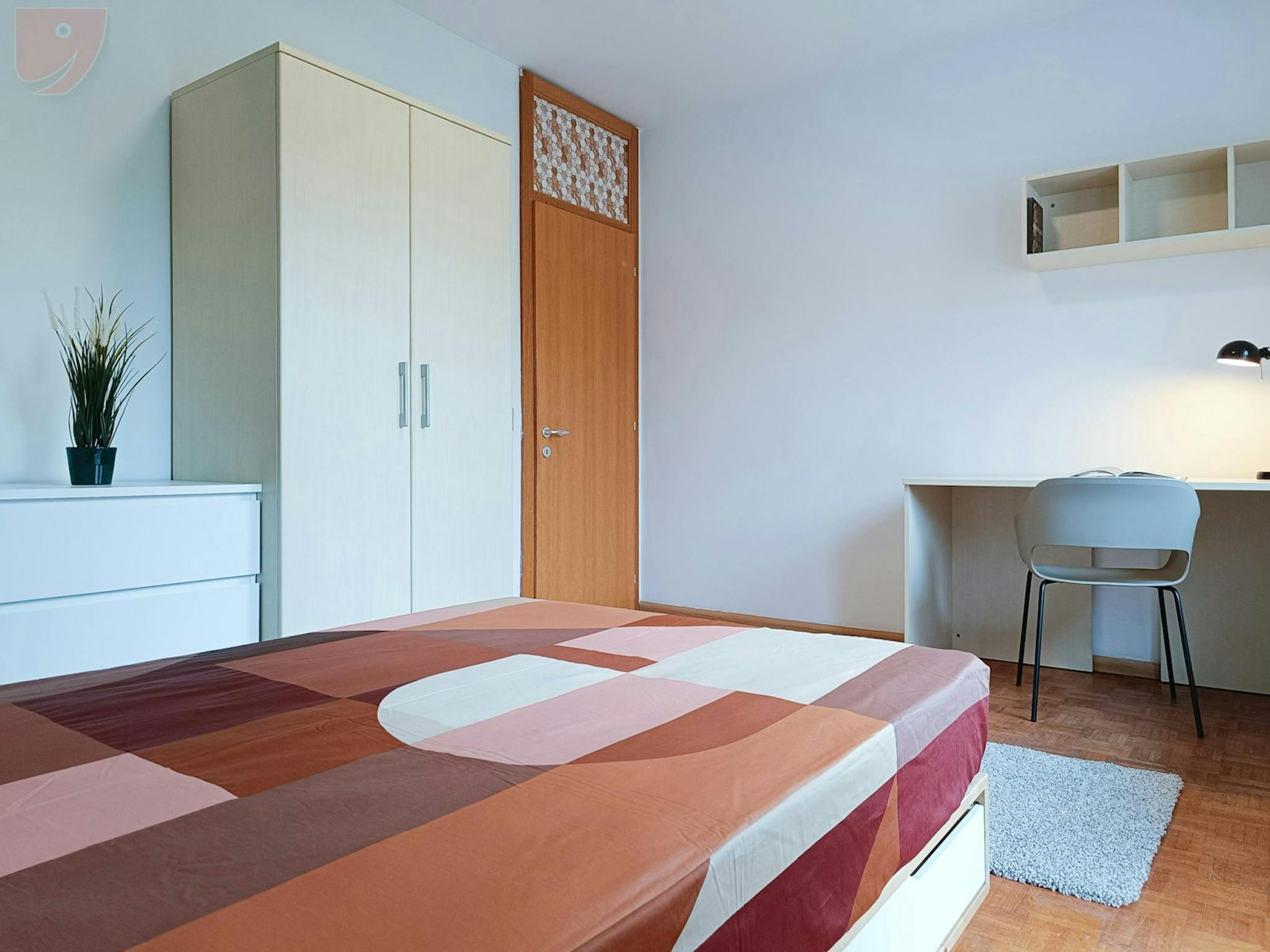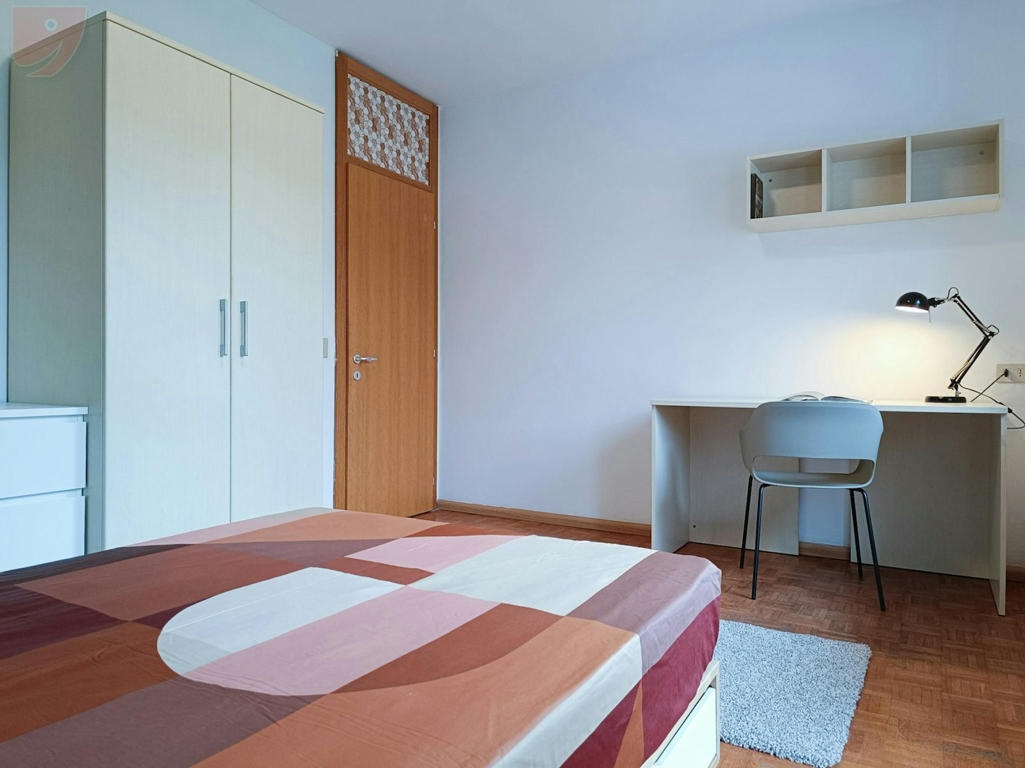 Affordable Single Room in Apartment for Engineers Room: Large single room with balcony furnished with a queen-size bed with slatted base, a bedside table, two large wardrobes and a chest of drawers. The desk is spacious, ideal for having a large ...