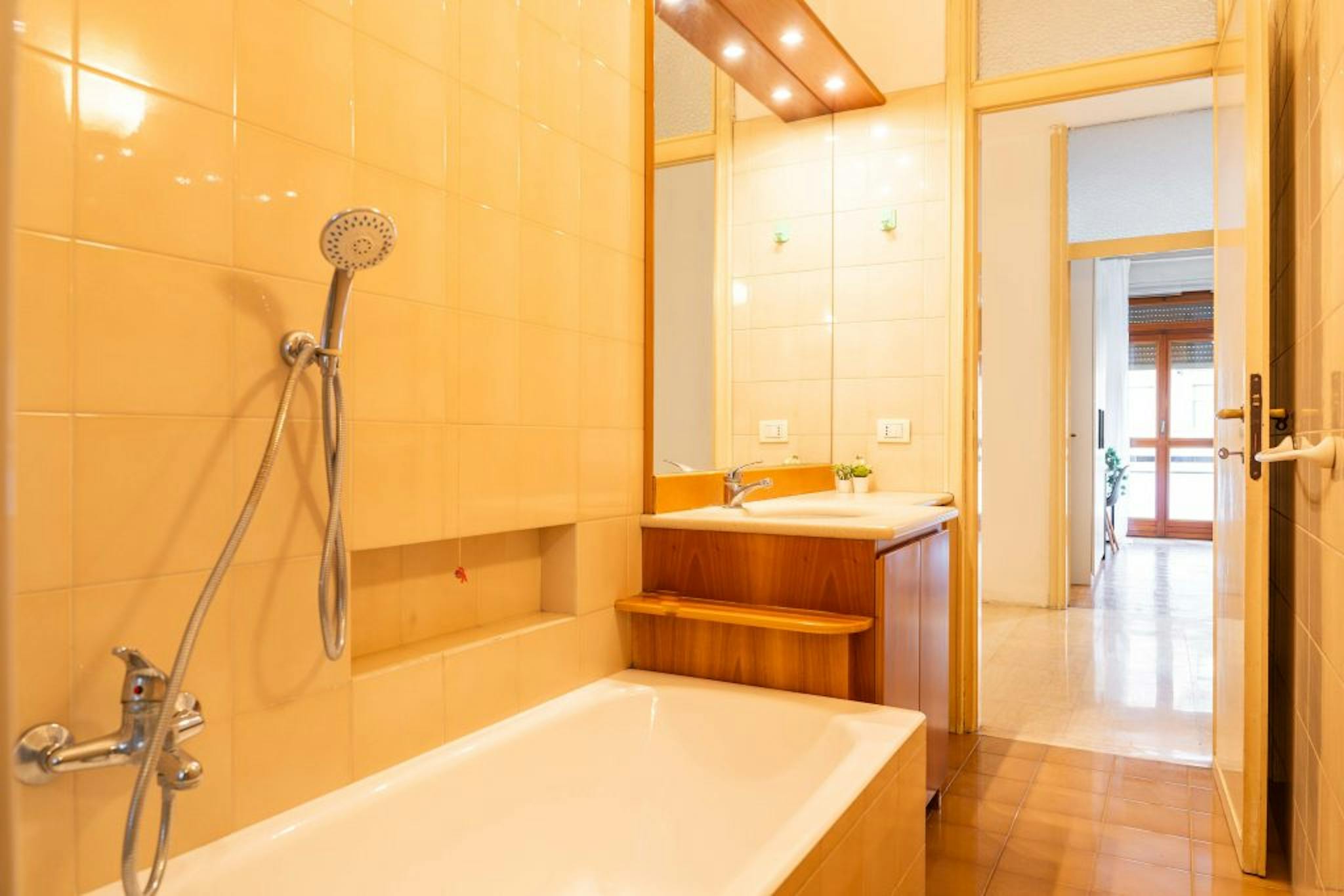 THE FLAT Conveniently located on the first floor in Via Imperatore Tito 8. Plenty of cafes, restaurants, bars, shops and bookstores keep the area always lively. INTERNAL CONDITIONS The flat consists of: - 4 rooms - a bathroom - an eat-in kitch...