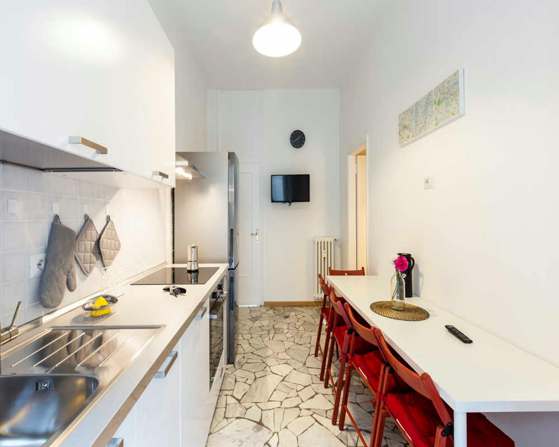 Like an oasis in the middle of Bologna’s historic center, you enter this spacious, 6-bedroom, 2.5 bathroom apartment through its own private garden! Equipped with a full kitchen, dining/lounge area, washing machine, laundry machine, cleaning supp...