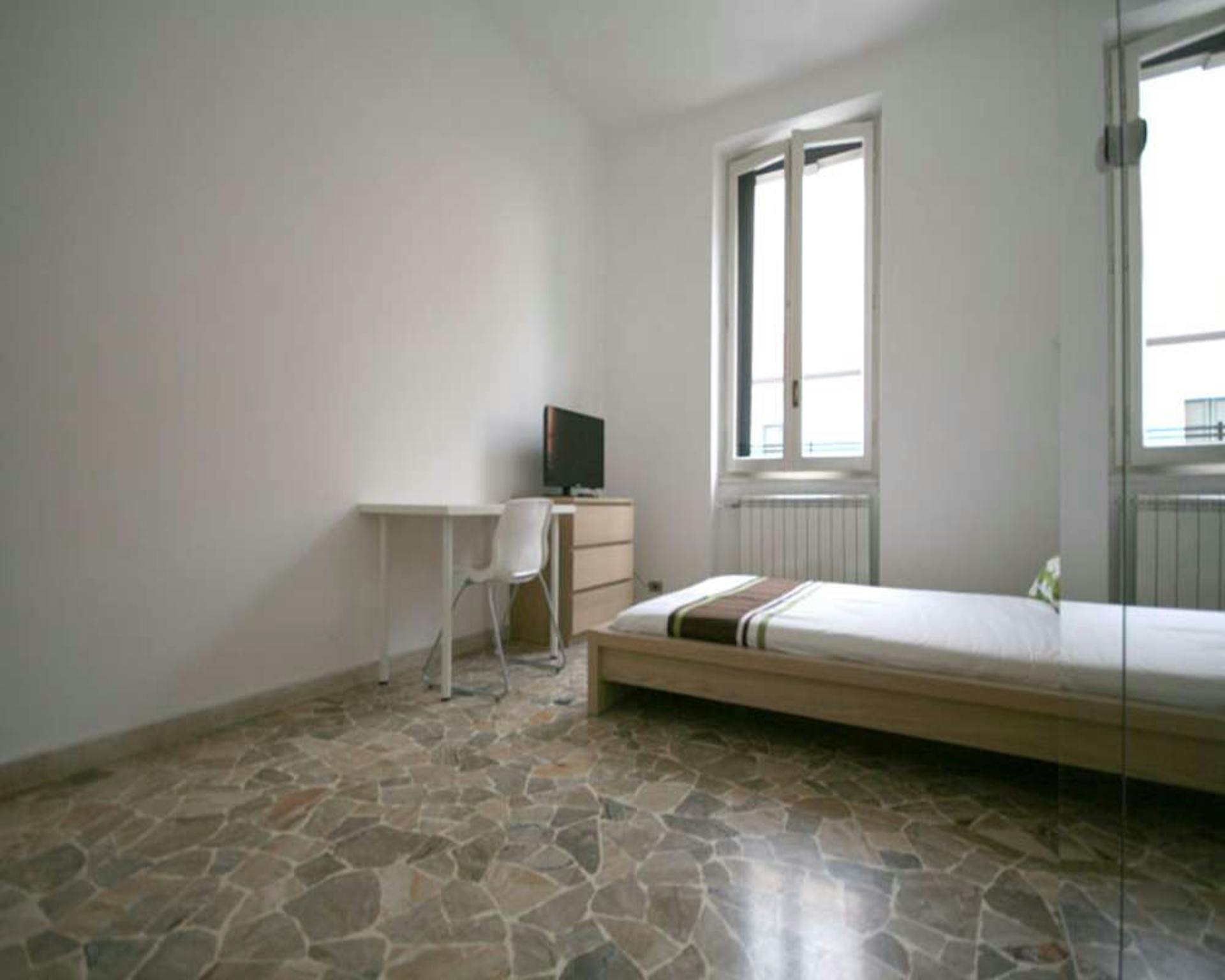 Single room in a shared apartment, composed by 6 bedrooms and 3 bathrooms. Of about 14 sqm with a one and a half bed and a work station. With wifi, concierge services, dishwasher, washing machine. Energy class: F, IPE 286.87 Kwh/Sqm year. Curren...